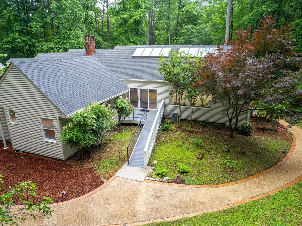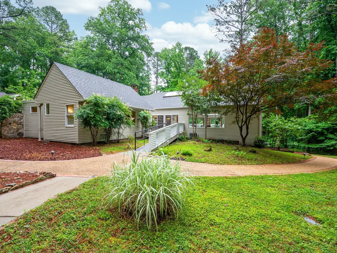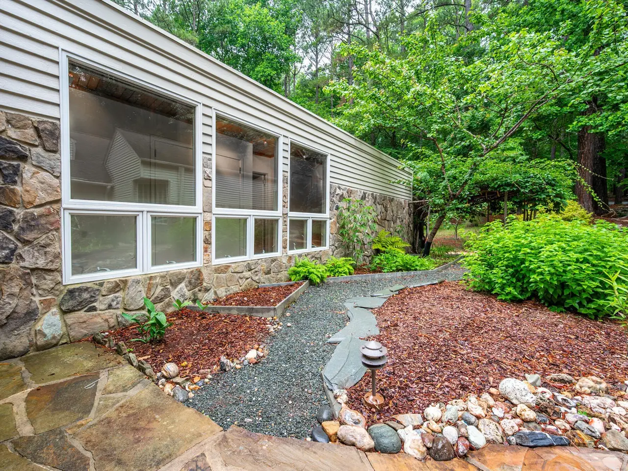 DISCOVER the RARE & UNIQUE blend of your new stone-accented CONTEMPORARY RETREAT tucked in the woods on approx 4 ACRES *An extraordinary home that welcomes all & was designed w/ an acute awareness of its relationship to the environment & surrounding elements! *Nestled among a multitude of exquisite trees and greenery with a path to a winding creek at the rear of the property - listen to the gentle melodies of flowing water by your own peaceful sanctuary *Mostly 1-LEVEL, this home is a showcase for convenient, relaxed living, all while enjoying nature & nourishing family or friends *Drive down the meandering tree lined driveway to arrive at your private oasis, just 10 minutes from downtown Chapel Hill/Carrboro *Spacious inside & out with WALLS of WINDOWS allowing ample natural light, while creating panoramic views of Mother Nature's best! *Artfully designed with a soothing flow of sweeping curves and fluid lines *The former indoor swimming pool has been thoughtfully reimagined into a spacious, flexible area perfect for a solarium / studio / art / dance / yoga / office or recreation room - basically it can be a flex space for you to create what is best for you! *With existing infrastructure still in place, it can even be returned to an indoor swimming pool OR beneath the floor lies a hidden stairway leading to what could be a one-of-a-kind wine cellar in what once was the deep end :) *Any dancers or ballet in the house? Another versatile room offers an inspiring space for growing minds and moving feet *Music and/or movie fanatics? Enjoy this dedicated and thoughtfully crafted space acoustically designed to enhance sound quality where performance and relaxation meet in style *A creatively designed bonus room with private balcony above the garage awaits *Separate ''kiln'' house for all your arts & crafts can also make for a great workshop or other hobbies + another storage type house could be updated into a cool kids play house or additional storage *Whole-house generator *County taxes + Chapel Hill Schools *A truly exceptional home with room to live, create & thrive!