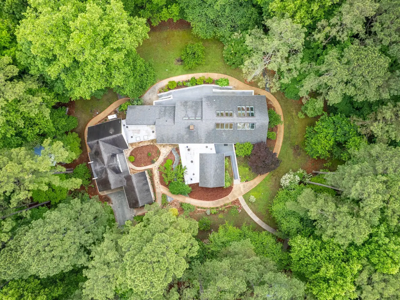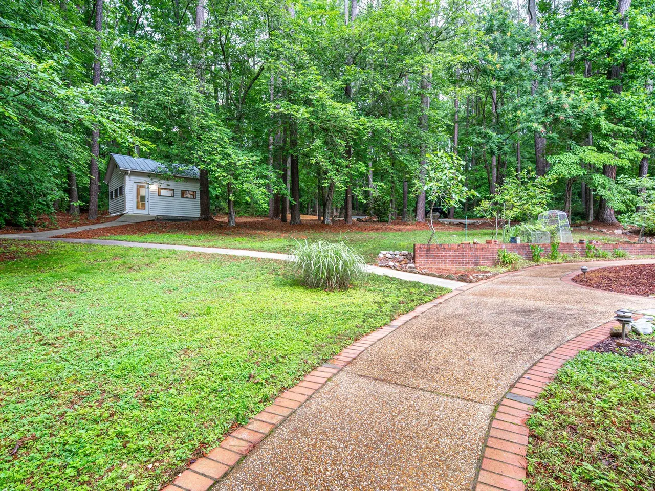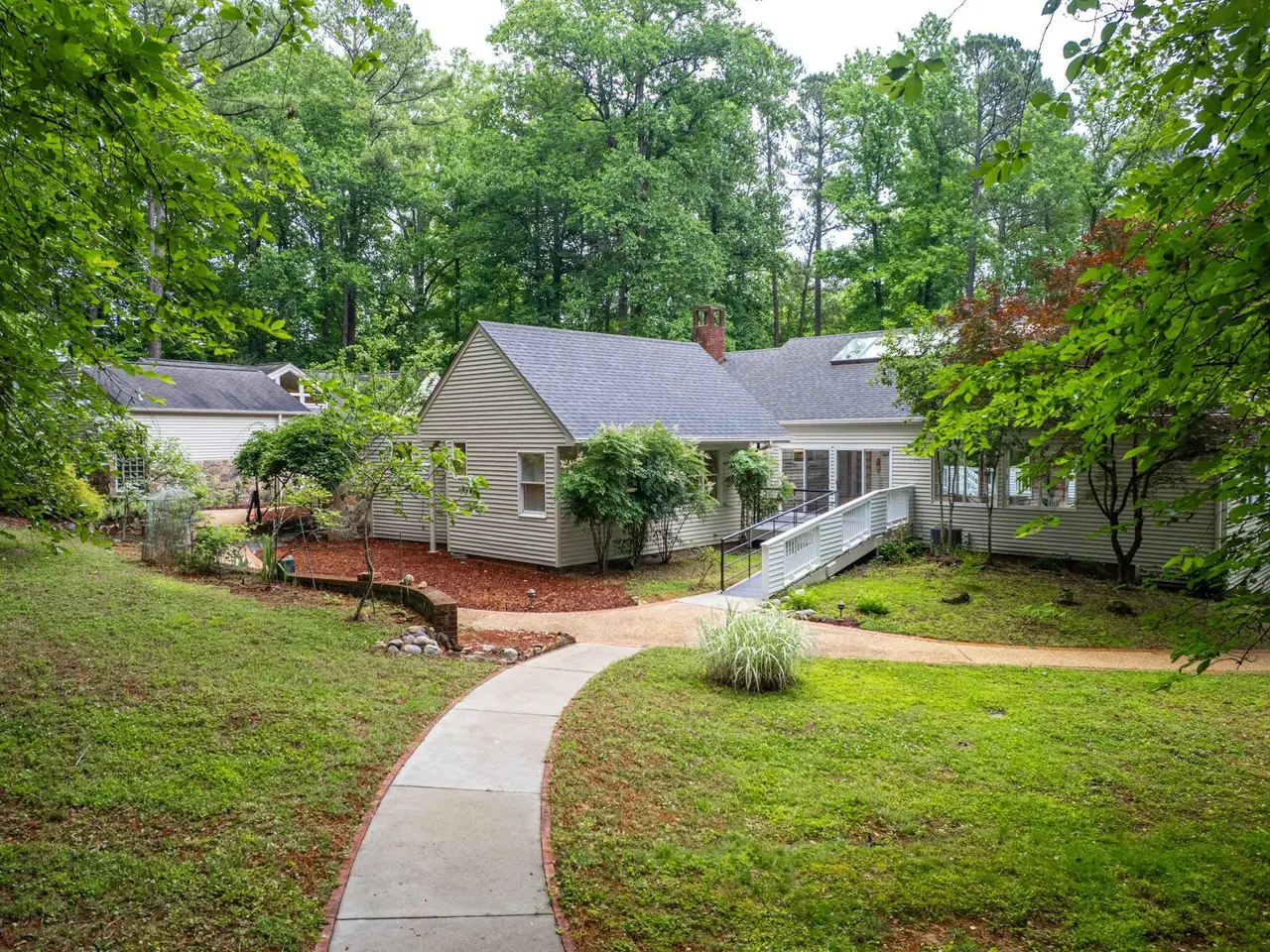 DISCOVER the RARE & UNIQUE blend of your new stone-accented CONTEMPORARY RETREAT tucked in the woods on approx 4 ACRES *An extraordinary home that welcomes all & was designed w/ an acute awareness of its relationship to the environment & surrounding elements! *Nestled among a multitude of exquisite trees and greenery with a path to a winding creek at the rear of the property - listen to the gentle melodies of flowing water by your own peaceful sanctuary *Mostly 1-LEVEL, this home is a showcase for convenient, relaxed living, all while enjoying nature & nourishing family or friends *Drive down the meandering tree lined driveway to arrive at your private oasis, just 10 minutes from downtown Chapel Hill/Carrboro *Spacious inside & out with WALLS of WINDOWS allowing ample natural light, while creating panoramic views of Mother Nature's best! *Artfully designed with a soothing flow of sweeping curves and fluid lines *The former indoor swimming pool has been thoughtfully reimagined into a spacious, flexible area perfect for a solarium / studio / art / dance / yoga / office or recreation room - basically it can be a flex space for you to create what is best for you! *With existing infrastructure still in place, it can even be returned to an indoor swimming pool OR beneath the floor lies a hidden stairway leading to what could be a one-of-a-kind wine cellar in what once was the deep end :) *Any dancers or ballet in the house? Another versatile room offers an inspiring space for growing minds and moving feet *Music and/or movie fanatics? Enjoy this dedicated and thoughtfully crafted space acoustically designed to enhance sound quality where performance and relaxation meet in style *A creatively designed bonus room with private balcony above the garage awaits *Separate ''kiln'' house for all your arts & crafts can also make for a great workshop or other hobbies + another storage type house could be updated into a cool kids play house or additional storage *Whole-house generator *County taxes + Chapel Hill Schools *A truly exceptional home with room to live, create & thrive!