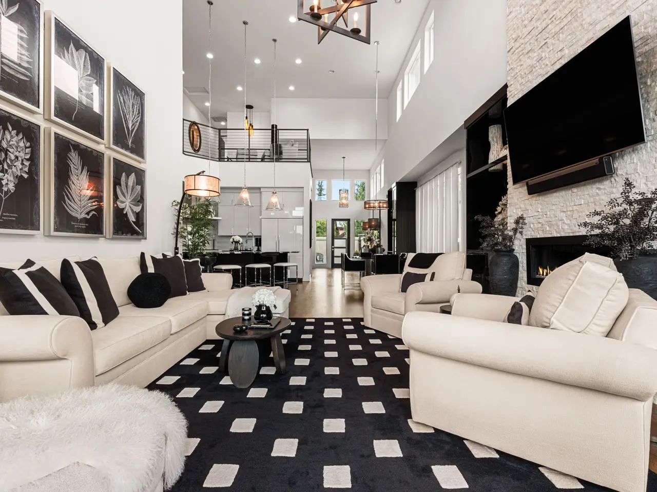 Experience refined living in this one-of-a-kind custom-built residence, set on a private waterfront lot within the prestigious gated Lakemoor community. Situated on a quiet, dead-end cul-de-sac with direct Greenbelt access, this prime location is just steps from the renowned Crave restaurant and the Lakemoor District shops. The sleek, modern interior is adorned with soaring double-height ceilings, rich hardwood flooring, and expansive windows that flood the home with natural light. The open-concept living space centers around a dramatic floor-to-ceiling stacked stone fireplace and flows seamlessly onto a covered patio equipped with a full outdoor kitchen. The kitchen features a curved granite island, Thermador and Sub-Zero appliances, a walk-in pantry, and a convenient dumbwaiter. The luxe master is set on the main level while the upper level hosts a large bonus room and full Jr. Suite. Enjoy exceptional amenities including two resort-style pools, sports courts, & walking paths with fabulous walkability!