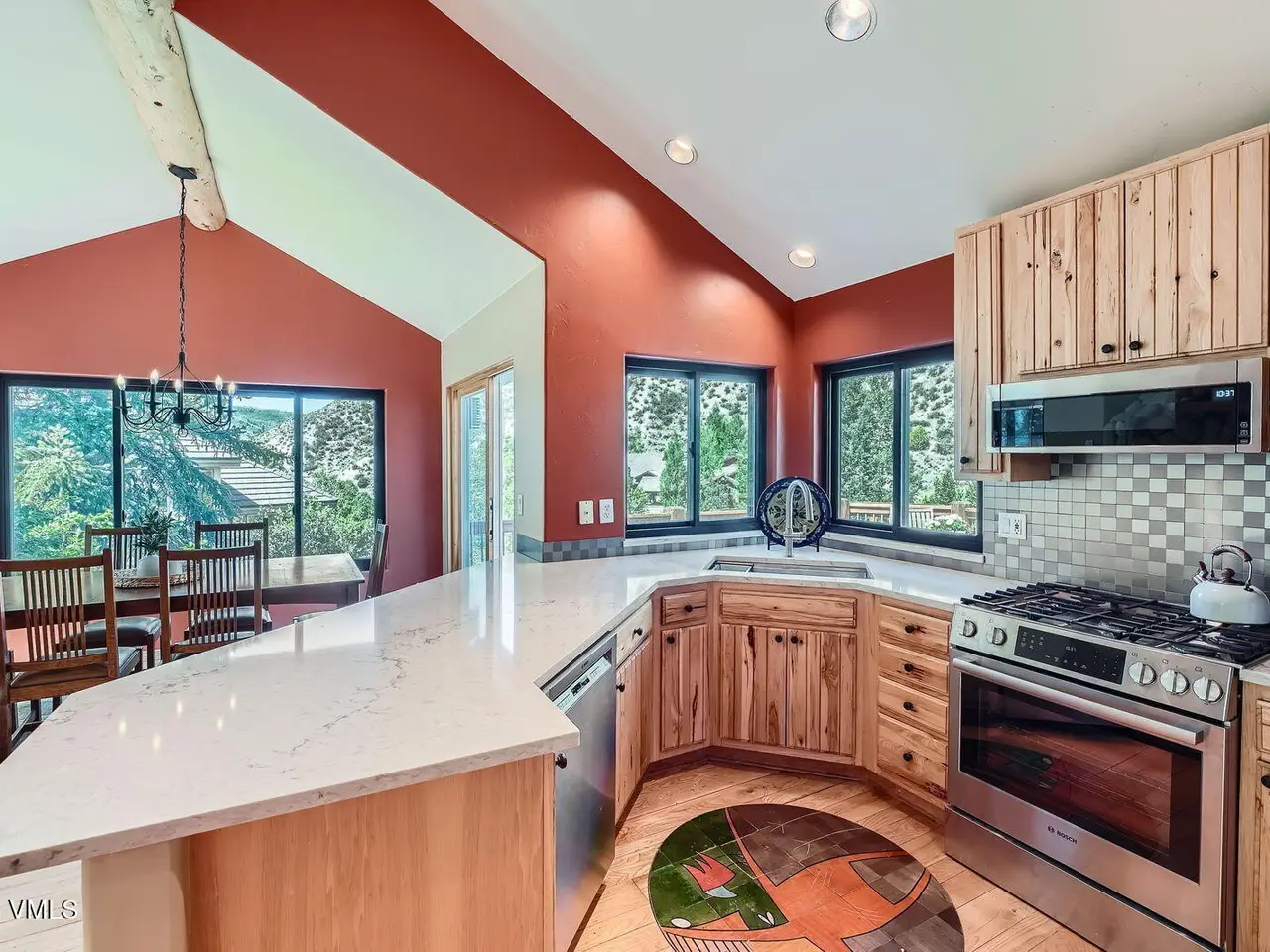 Located at the top of Singletree on a quiet cul-de-sac, this single family home enjoys a peaceful setting adjacent to the June Creek Trailhead. Relax on the deck while taking in expansive views and the soothing sound of the creek below. 2,679 SqFt with three bedrooms, two living areas, and a separate-level primary suite with commanding views. The remodeled kitchen and new roof add value, and there's potential for future expansion. A two-car garage provides practical convenience. Singletree is a sought-after community in Edwards, Colorado-just minutes from Vail and Beaver Creek Resorts. Known as the ''Sunbelt of the Valley,'' Singletree offers a warmer, high-desert climate with huge southern views of ski slopes and mountain peaks. Residents enjoy easy access to skiing, hiking and biking trails, shopping, and dining. Community amenities include parks, trails, and the Singletree Community Fitness Center. The neighborhood is also home to the Sonnenalp Golf Club, with various membership options available.