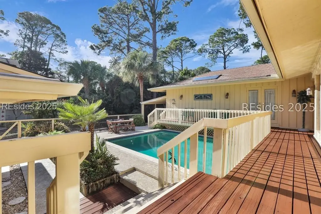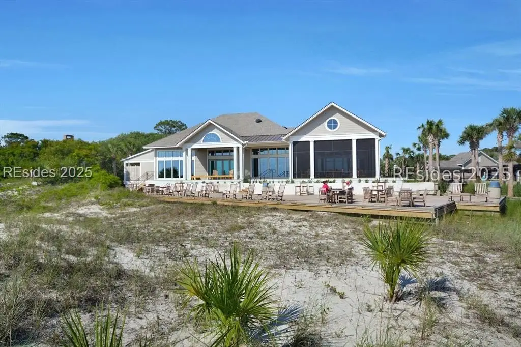 Location is everything! Just 3rd row from the ocean and steps from the private Port Royal beach, this 5-bedroom, 3.5-bath home sits on an extra-large almost half an acre! The property features a private pool, screened porch, and beautiful lagoon views, offering endless potential to create your dream Lowcountry retreat. The kitchen opens to a spacious family room and dining area, with heart pine floors, a wet bar, plantation shutters, and a separate formal dining room. The primary bath has been remodeled, and the home offers an inviting floor plan ideal for both relaxing and entertaining. While the property is being sold as-is and would benefit from some updating, its priced to sell and the location and lot size are unmatched. A rare opportunity to own in the sought-after private beachfront community of Port Royal!