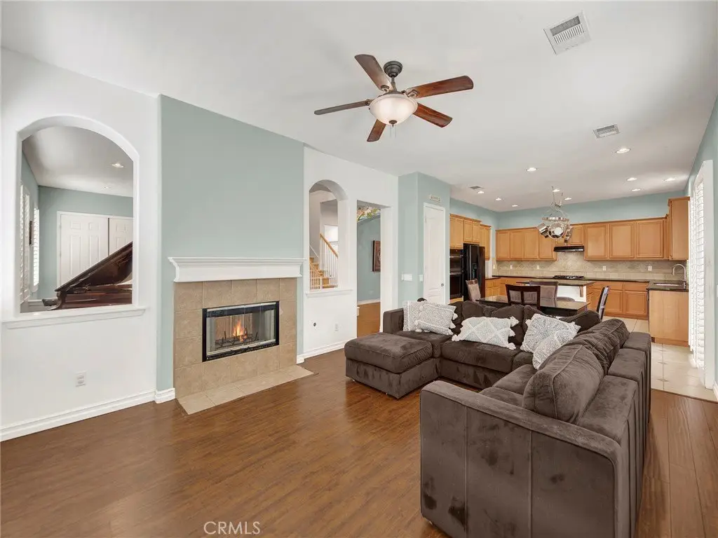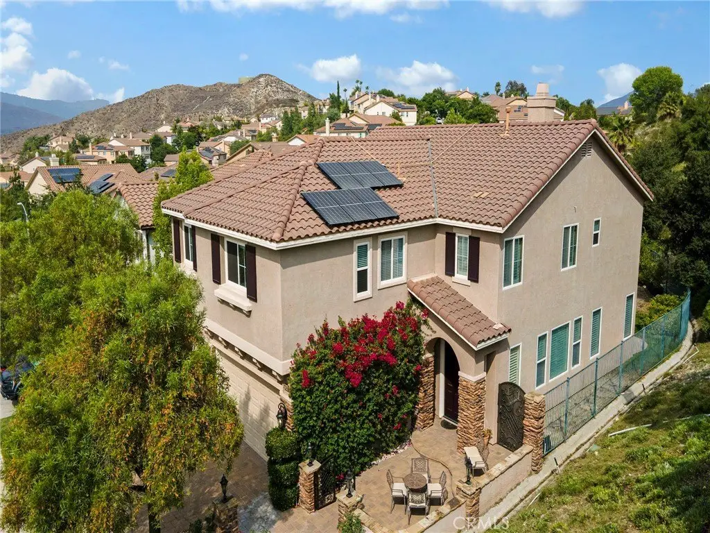 Welcome to this beautifully maintained 5-bedroom, 3-bathroom home located in the highly sought-after Sunset Heights community. From the moment you arrive, you're greeted by a grand double-door entrance that opens into a warm and inviting interior. Enjoy the charm of a double-sided fireplace that adds cozy ambiance to both the living and family rooms—ideal for relaxing or entertaining. The kitchen is a true centerpiece, featuring ample cabinetry, generous storage space, and a large island perfect for gatherings and casual dining. Plantation shutters throughout the home add timeless character, while natural light floods the space. Downstairs offers a versatile bedroom—perfect as a guest suite, home office, gym, or in-law room. Upstairs, the primary suite is a private retreat, complete with two closets, a balcony for morning coffee or sunset views, and a luxurious en-suite bathroom with a soaking tub, dual sinks, and a dedicated vanity. Three additional bedrooms and a spacious bonus room provide flexibility for a home theater, game room, or extra lounging area. Additional features include: Three-car garage Paid-off solar system to help reduce energy costs Low HOA that covers neighborhood security and common area maintenance Expansive backyard ready for your creative touch—add a garden, pool, or outdoor kitchen to make it your own Don't miss this opportunity to own a well-appointed home in one of the area's most beloved communities!