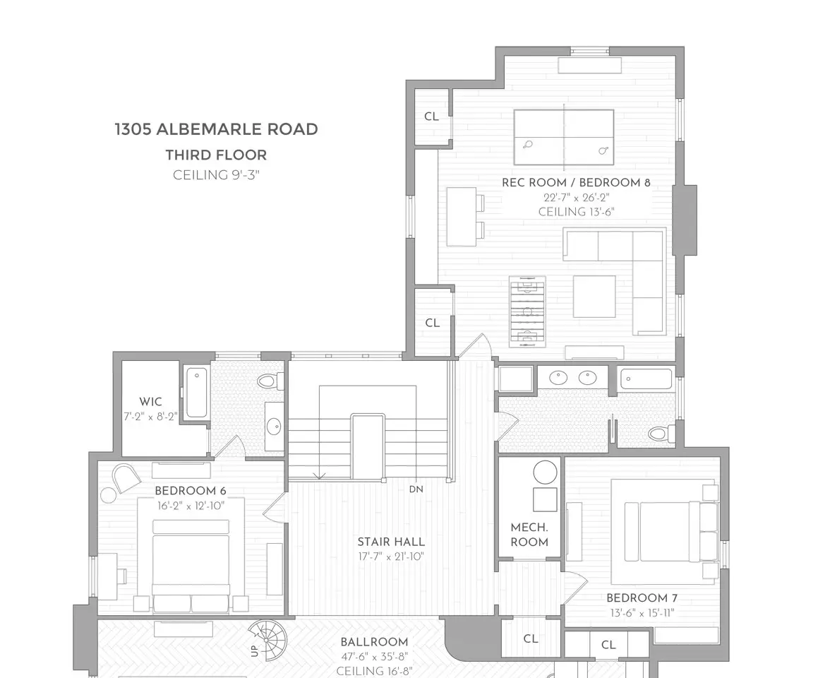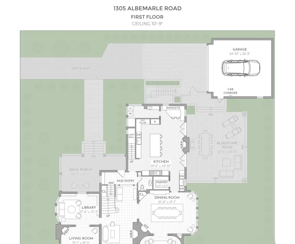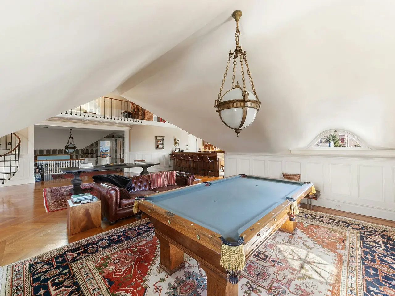 Recognized as one of the most grandly built and meticulously preserved free-standing private homes in Brooklyn, 1305 Albemarle Road in Prospect Park South is distinguished as a jewel within the bucolic environs of the Prospect Park South Historic District, which was designated by the New York City Landmarks Preservation Commission in 1979 and listed on the National Register of Historic Places in 1983. In 1899, developer Dean Alvord purchased approximately 60 acres of farmland in order to create Prospect Park South, a community of substantial homes, a "rural park within the limitations of the conventional city block and city street." The houses in Prospect Park South were required to be grand, freestanding homes with expansive lawns and ample plots to allow for privacy and landscape architecture more commonly found in the finest towns outside the city on the North Shore in Long Island, Westchester, and the Connecticut waterfront. This resplendent home is truly an oasis within the city. Convenience is not sacrificed for its residents-subway transportation is close by, as is gourmet shopping, cafes, and every convenience one might need. The Parade Grounds and Prospect Park itself are less than two blocks away. Built in 1905, designed by architect Henry B. Moore for George and Sarah Gale in grand Colonial Revival style, the residence is defined by its majestic two-story Ionic columns and spacious porch-inviting the eyes to rest longingly upon its handsome facade. Unlike even the grandest of townhouses, the scale, vistas, and multiple sources of natural light create the feeling that one is in a fine manor house in the country-not in the heart of the city. On the public floors-and as one traverses the epically proportioned, fully restored mansion staircase with original newel post-there are no fewer than three sources of light in each domain. According to Christopher Gray of the New York Times the Gale Mansion "is the gem of the street, Albemarle is one of the grandest residential streets in the whole city." The Gale House marries historic grandeur with modern luxury, combining masterfully restored century-old, irreplaceable detail across 11,000+ square feet and 22 rooms, including 9 bedrooms, 7 full and 1 half baths across four distinct levels of living space, replete with multi-zoned air conditioning and radiant floor heat system. The manicured grounds ideally complement the glorious interiors, where you will find a lushly landscaped private yard with bluestone patio, side garden, vast lawn, and a private two-car garage and driveway. Main Floor The grand hall is defined by a coffered ceiling and massive wood-burning fireplace-one of 6 gas and wood-burning fireplaces within the home-which in turn leads to a sun-drenched formal front parlor with fireplace, handsome library with fireplace and bay window, a mahogany-clad dining room facing the garden, and charming reception parlor. Four distinct moods for entertaining and peaceful repose. The kitchen is a chef's dream, with a 10-foot stone island, Viking range/double oven, Sub-Zero French door refrigerator, three Fisher & Paykel dish drawers, Carrara marble farm sink, and a wood-burning fireplace for chilly winter mornings. There is a separate windowed laundry room and a walk-in custom pantry. French doors open to a bluestone patio and expansive backyard with mature plantings-bringing the outside in at all times of year. An elegant and discreet powder room completes the main floor. Second Floor The second floor is the private domain and contains the sumptuous primary suite with a windowed dressing room and a luxurious en-suite bath. Four additional bedrooms, two full baths, and a spacious home office complete the second level. Third Floor Upstairs is the former ballroom with over 16-foot-high ceilings, where in 1908 George E. and Sarah Gale hosted more than 300 guests for live musical performances and grand revelry. For today's lifestyle, the upper level houses generous guest suites, lounges, a media room, home workspace, and the ideal environs for casual family fun with friends. The ballroom has been opened up to the attic to create a soaring ceiling and designed with a vintage bar that stretches along one wall for decadent home entertainment. You're transported to a London speakeasy-a magnificent place to share with friends. A spiral staircase leads up to a mezzanine. This floor is supported by three more bedrooms, a recreation room, mechanical room, and walk-in closet. A charming attic space features a sunlit reading loft overlooking the levels below-ideal for a home office, art studio, or snug. There are two full bathrooms on the third floor for guest use. English Basement With a private exterior entrance and high beamed ceilings, the English basement includes a 44-foot lounge with kitchenette, as well as a large gymnasium, sauna, and a large work/storage room. Notable Features: Over 1,450 SF of outdoor space across porches and terraces 75-ft driveway and 2-car garage with EV charger Gated backyard with south-facing lawn and mature plantings 15-zone AC, 24-zone high-efficiency heating system for maximum comfort and energy savings Original moldings, millwork, and restored woodwork throughout 66 restored original wood-framed windows, with new putty glazing and weather-stripping, stunningly designed and handcrafted with multiple bay windows, bowed, arched, and eyebrow dormers, diamond pane, oval casement, web mullion, Palladian windows, and French doors on multiple levels 6-minute stroll from B and Q subway lines, Prospect Park, the Kensington dog run, and top rated public and private schools- a world away yet a mere heartbeat from every luxury the city offers- a true Home in the city to cherish for generations.