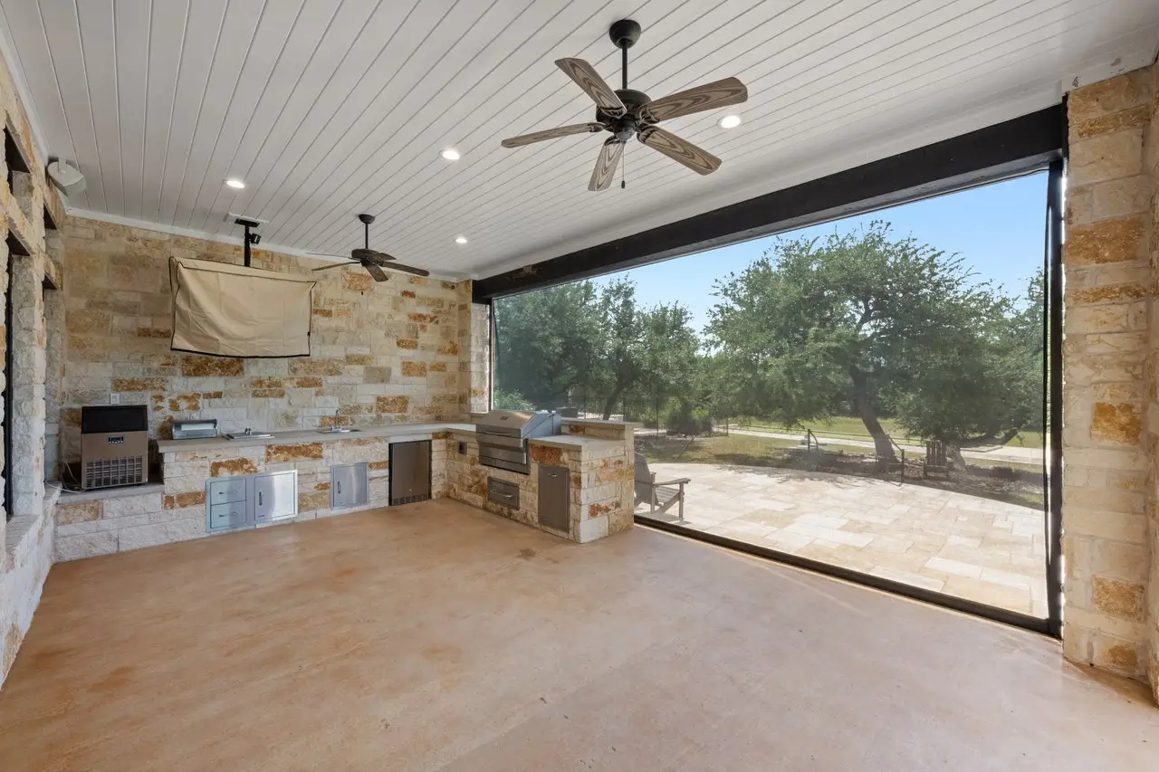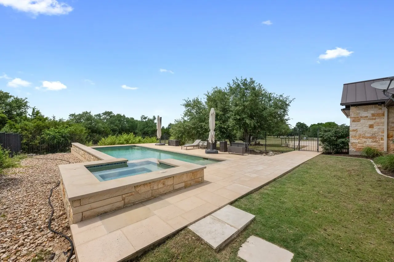 Situated on 2.4 acres in the serene Vineyard neighborhood, this stunning one-story Texas limestone home with a sleek metal roof exudes curb appeal on a corner lot. An oversized driveway leads to a three-car garage, complemented by a practical Generac generator, tankless water heater, well, and water storage tank. The backyard oasis features a sparkling pool and spa, outdoor kitchen, pizza oven, bocci ball pad, basketball court, and playground—perfect for entertaining. Overlooking the picturesque Texas Hill Country and Driftwood Winery, this home offers tranquility with easy access to Austin and San Antonio. Inside, a grand limestone fireplace anchors the open living area with soaring vaulted ceilings and huge windows flooding the space with light. The private master suite boasts a spa-like bath with a soaking tub, sparkling shower, and backlit mirrors. Each bedroom includes an en-suite bath and walk-in closet. The gourmet kitchen shines with a coffee bar and oversized pantry. Automated lighting, both interior and exterior, can be controlled from home or remotely. Located in the acclaimed Dripping Springs ISD, this home sits between the quaint towns of Dripping Springs and Wimberley, known for their charming downtowns, boutique shops, and vibrant community events. Enjoy the best of Hill Country living with urban amenities just a short drive away. www.3400tuscany.com