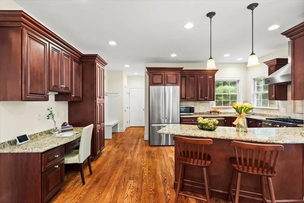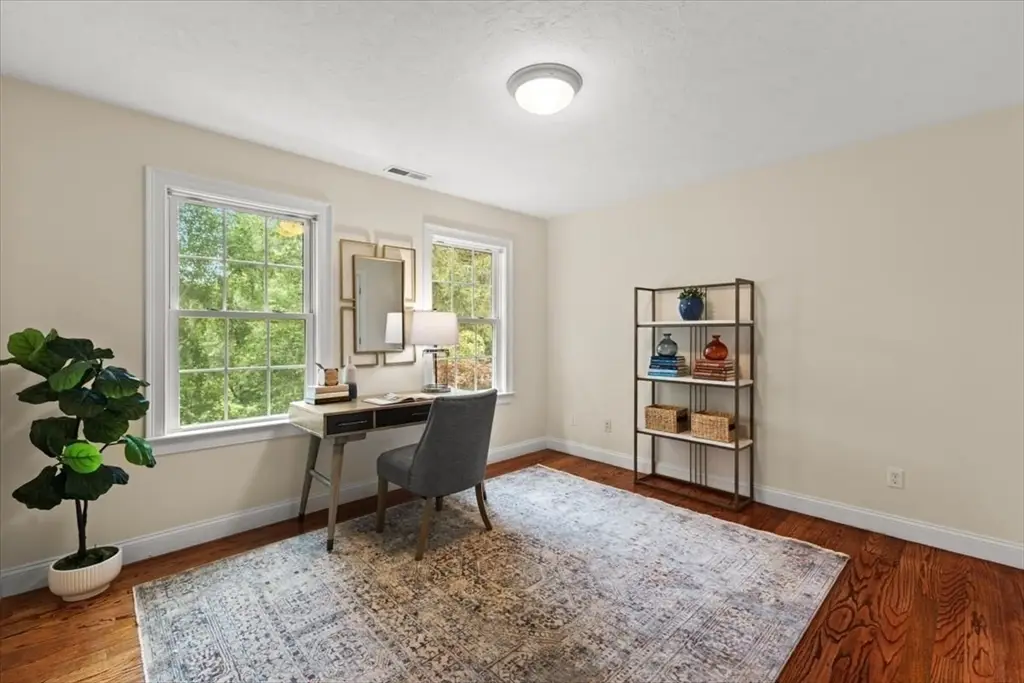 Nestled in one of Wayland's most desirable neighborhoods at the end of a quiet cul-de-sac, this beautifully maintained Colonial offers timeless design and practical functionality. The sun-filled main level features a spacious living room, a family room with a gas fireplace opening to a large deck and wooded backyard, plus a classic kitchen, formal dining room, and half bath. Upstairs are four bedrooms and two full baths, including a generous primary suite, along with a dedicated home office ideal for remote work or study. Set on over an acre, the property includes an attached two-car garage, abundant off-street parking, and a high-ceiling unfinished basement with excellent potential. Just minutes from Wayland Center, shopping, conservation trails, and commuter routes to Boston and Cambridge, this home also offers access to Wayland's top-rated public schools, renowned for academic excellence and a strong sense of community.