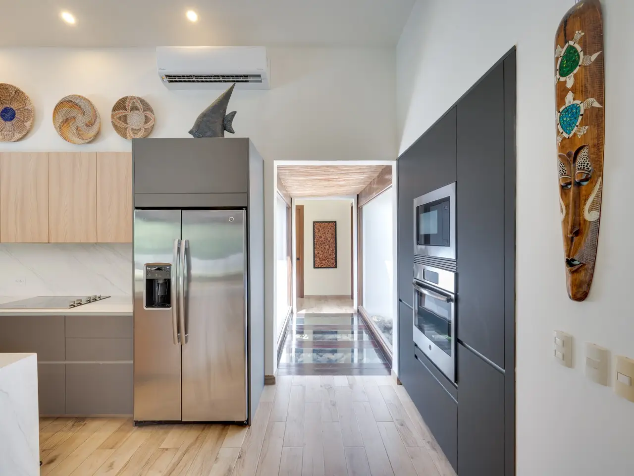• Glass walkway connecting master suite wings