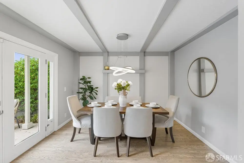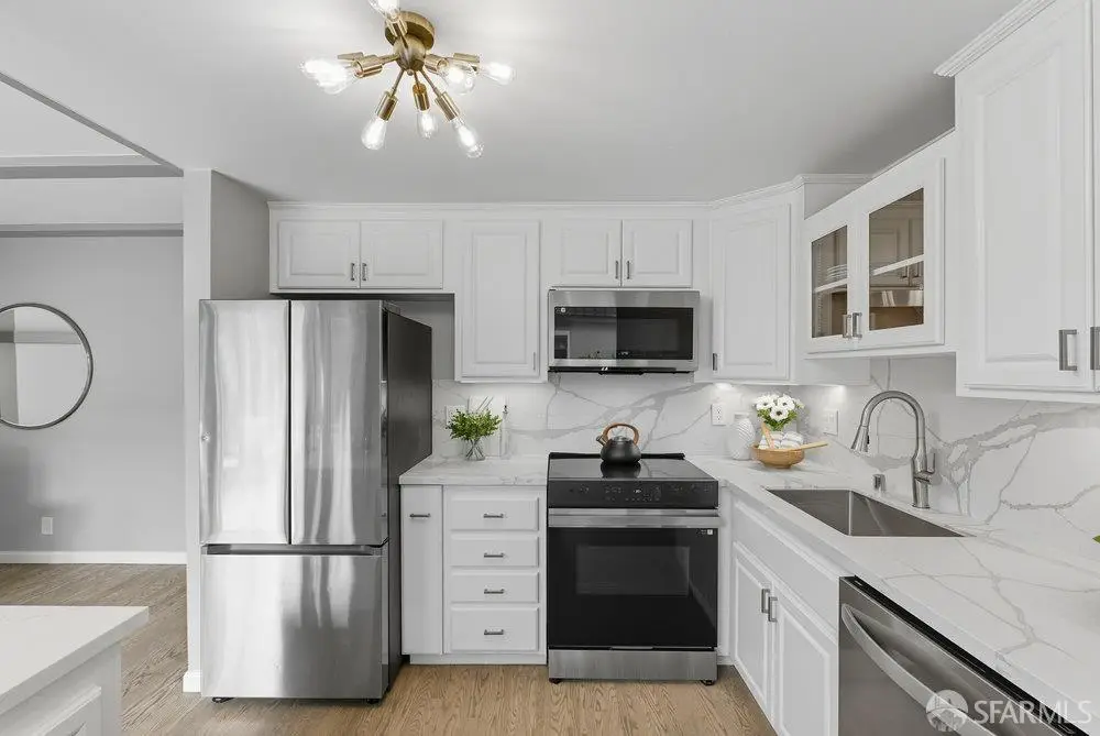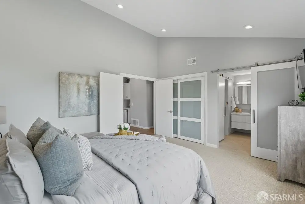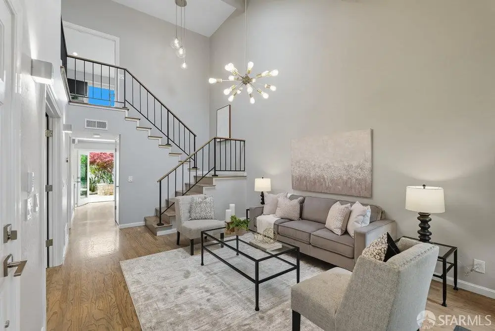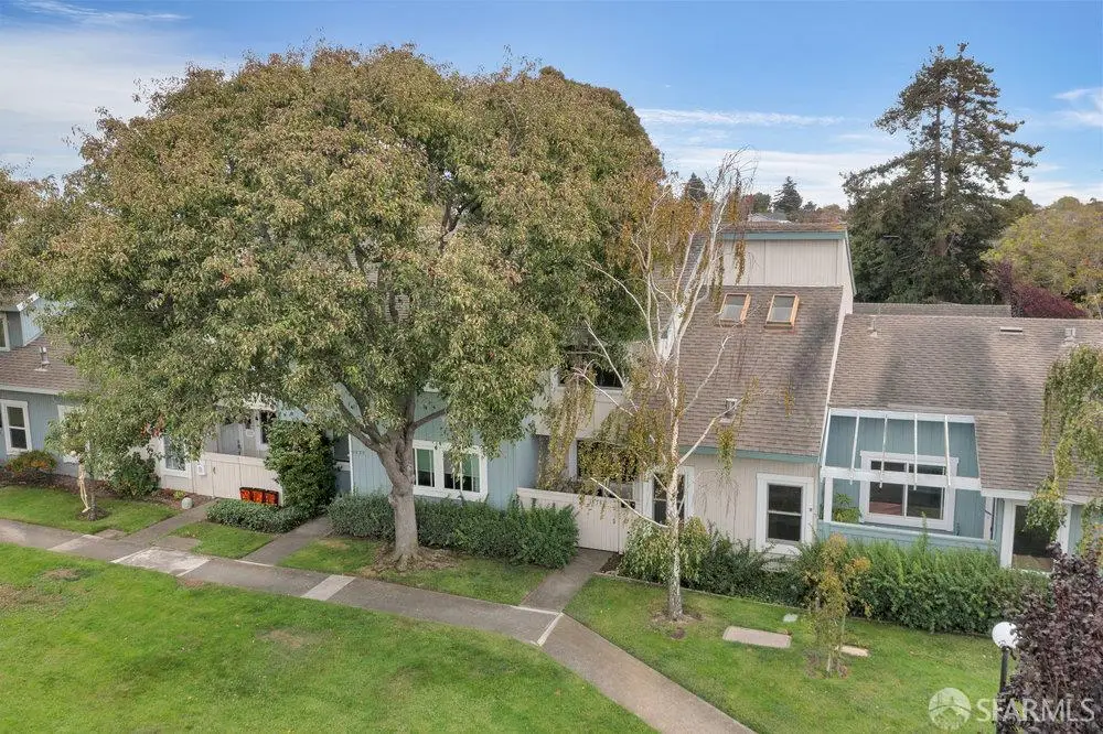 Tastefully remodeled, this residence blends modern upgrades with everyday comfort. Offering 3 bedrooms, 2.5 bathrooms, and a private side-by-side 2-car garage, it sits within one of Foster City's most desirable communities. The bright living room features dramatic double-height ceilings, skylights, and windows overlooking the serene greenbelt. A versatile main-level bedroom doubles as a home office or guest room. Luxury wood flooring flows through the open layout to a private landscaped patio with pergolaideal for morning coffee, entertaining, or evening relaxationwith direct access to the garage for added convenience. The remodeled chef's kitchen boasts marble-style quartz counters, sleek cabinetry, and new stainless-steel appliances, complemented by a spacious dining area. A half bath and side-by-side washer/dryer complete the main level. Upstairs, the primary suite and guest room are enhanced by upgraded bathrooms, plush carpeting, and custom closet shelving. Tucked at the quiet end of the community near the pool and guest parking, this home offers exceptional privacy and easy access to scenic trails, open greenbelts, community parks, and Highways 101 & 92, perfectly nestled between SF & Silicon Valley tech hubs.