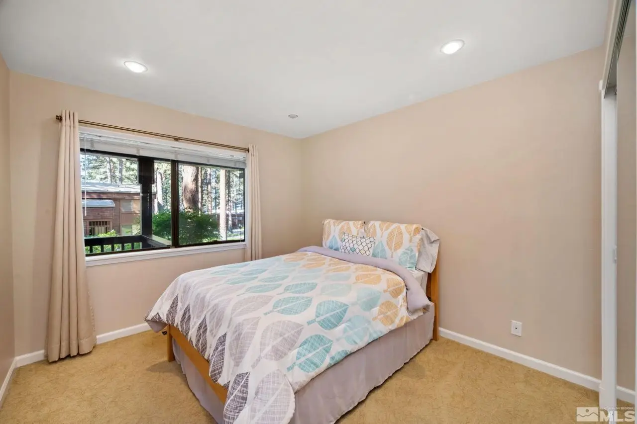 Just steps to the beach! This super clean Pinewild unit has very nice lake views & located just a short stroll to the lake! The two bedrooms, two bath unit has travertine floors throughout, granite counters w/ stainless steel appliances, gas stove, pantry, & hickory cabinetry in kitchen, overlooking the living room w/ vaulted open wood beam ceilings, wood burning fireplace, & a spacious lakeview deck w/ two storage closets. The primary bedroom has a jetted tub, travertine tile tub/shower, separate deck w/ some lake views. The unit is newly painted with new carpet in the bedrooms & ready to move in. Conveniently located just to the right of the gated entry, the HOA dues include water, sewer, trash, exterior maintenance, landscaping, tennis courts, clubhouse, new gated entry, security, and a beautiful long sandy beach with pier. You can keep your kayaks/paddle boards right on the beach! This unit is just a short stroll to the water's edge, with a long sandy beach & pier to enjoy all the beautiful Tahoe sunsets. It is also only a couple minutes to Round Hill Shopping Center with 24-hour Safeway, post office, shopping, and only 5 minutes to all the casinos. Only 10 minutes to world Class Skiing too! Miles of bike trails are super close too!