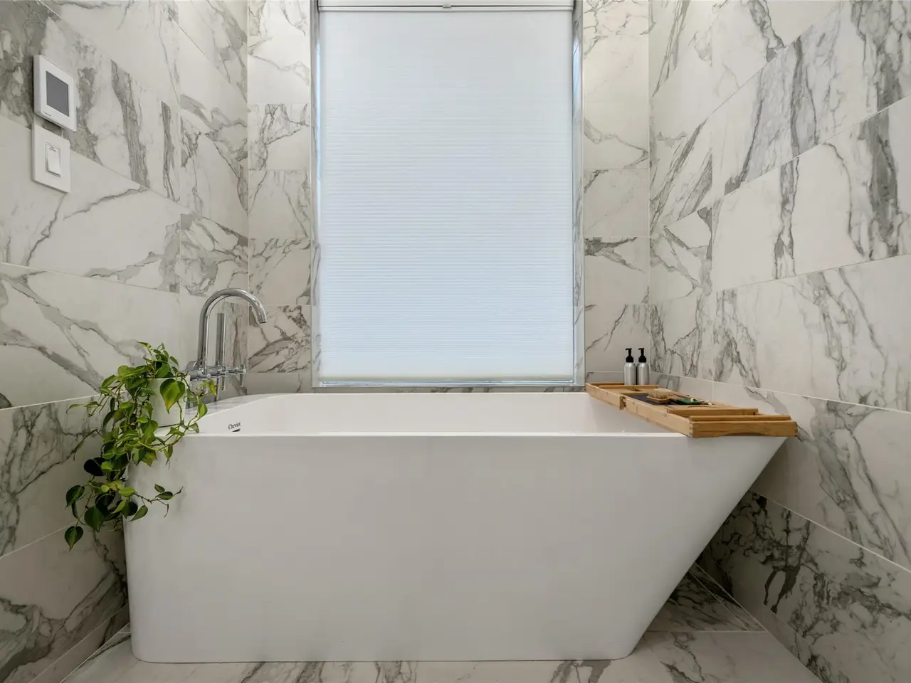 Fireplace in the living room Spa-inspired primary bathroom with indoor therapy pool