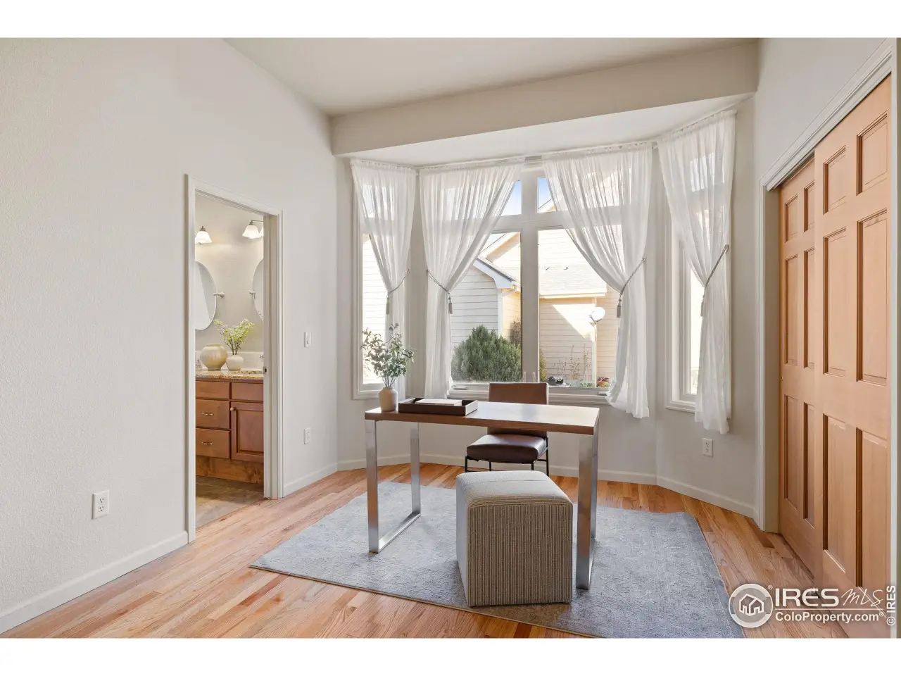 POUDRE SCHOOLS! Welcome home to this 5-bedroom, 4-bath Hartford-built ranch retreat, where timeless craftsmanship meets modern luxury. Perched on a spacious lot with mountain views from the front porch, this residence offers the perfect balance of elegance, comfort, and functionality. Step inside to soaring ceilings, rich oak wood floors, and sunlit living spaces enhanced by expansive windows and plantation shutters. The open great room with a cozy gas fireplace flows seamlessly into the gourmet kitchen, complete with abundant cabinetry, granite countertops, a bar for seating and prep island, and high-end appliances including an induction cooktop and refrigerator. The thoughtful floorplan features three bedrooms on the main level, including a jack-and-jill suite and a serene primary retreat with spa-like bath-featuring a soaking tub, separate shower, fresh paint, new carpet, a spacious walk-in closet, and its own access to the back patio. The finished basement is designed for both relaxation and entertainment, offering a large recreation room with wet bar, two additional bedrooms, one bathroom, and abundant storage with flexible potential for future finishing. Additional highlights include an oversized, 1064 sq ft climate-controlled three-car garage with epoxy floor that can double as a WORKSHOP, new washer, radon mitigation system, newer furnace, AC and two hot water heaters. Outdoor living shines with a private backyard oasis-mature trees, lush landscaping, fenced yard, and an oversized covered patio with ceiling fans and skylights, creating a park-like setting for gatherings or quiet evenings.