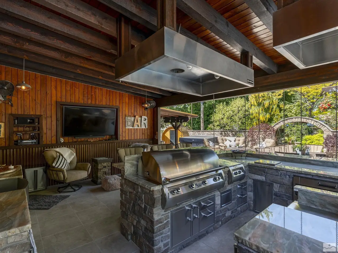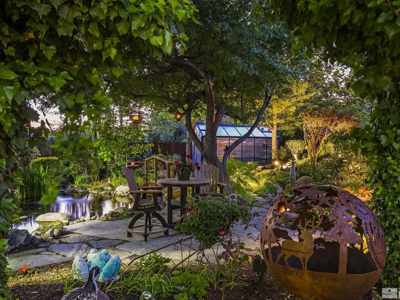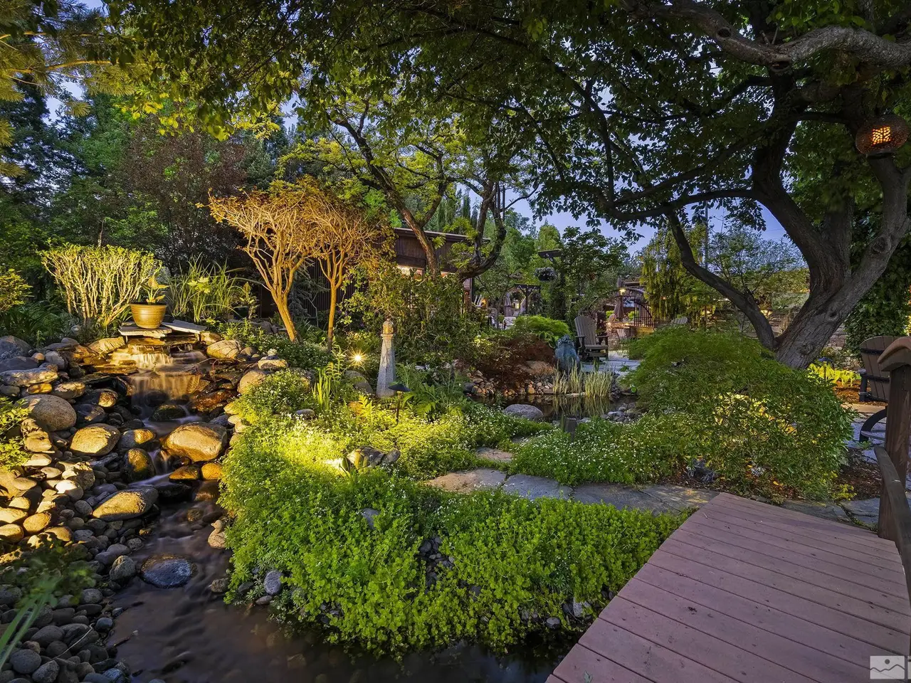 Welcome to your private resort-style estate—a truly rare offering that blends luxury, function, and natural beauty. Set on a fully fenced, gated property with lush mature landscaping, waterfalls, koi ponds, and expansive pavered driveways (with heated entry pad), this home is designed for both grand entertaining and serene everyday living., Don’t miss this rare opportunity to own a luxury compound on three parcels that features a 3-bed, 2-bath main residence (1,652 sq ft), a 2-bed, 2-bath guest house (1,336 sq ft), and a studio in-law suite —ideal for multigenerational living. Enjoy a saltwater pool (heated year-round), spa, sauna, firepit, and fully covered outdoor chef’s kitchen featuring premium Firemagic and Gaggenau appliances, bar seating with swings, heated floors, and surround sound. The grounds also include a lighted horseshoe pit, Zen garden, greenhouse, and multiple outdoor bathrooms. The main residence offers keyless entry, surround sound, backup heat, and new zoned HVAC. A separate guest house (2 bed / 2 bath) includes a chef’s kitchen with Wolf appliances, heated bathroom floors, and new insulation and electrical. A fully appointed in-law suite offers independent living with a kitchenette and full bathroom. Additional highlights: gym with new mini-split, upgraded garage doors, 2-car garage with HVAC zone, 2-car carport, full RV hookups, security systems, whole-property WiFi with boosters, and instant hot water throughout. Storage abounds with a waterproof, animal-proof unit plus two outbuildings. Fully wired for a generator and ready for year-round luxury living.