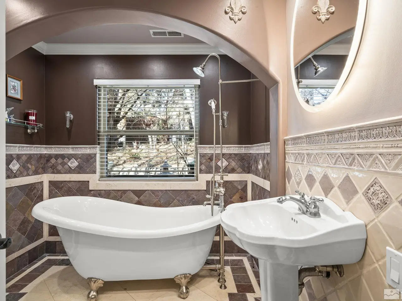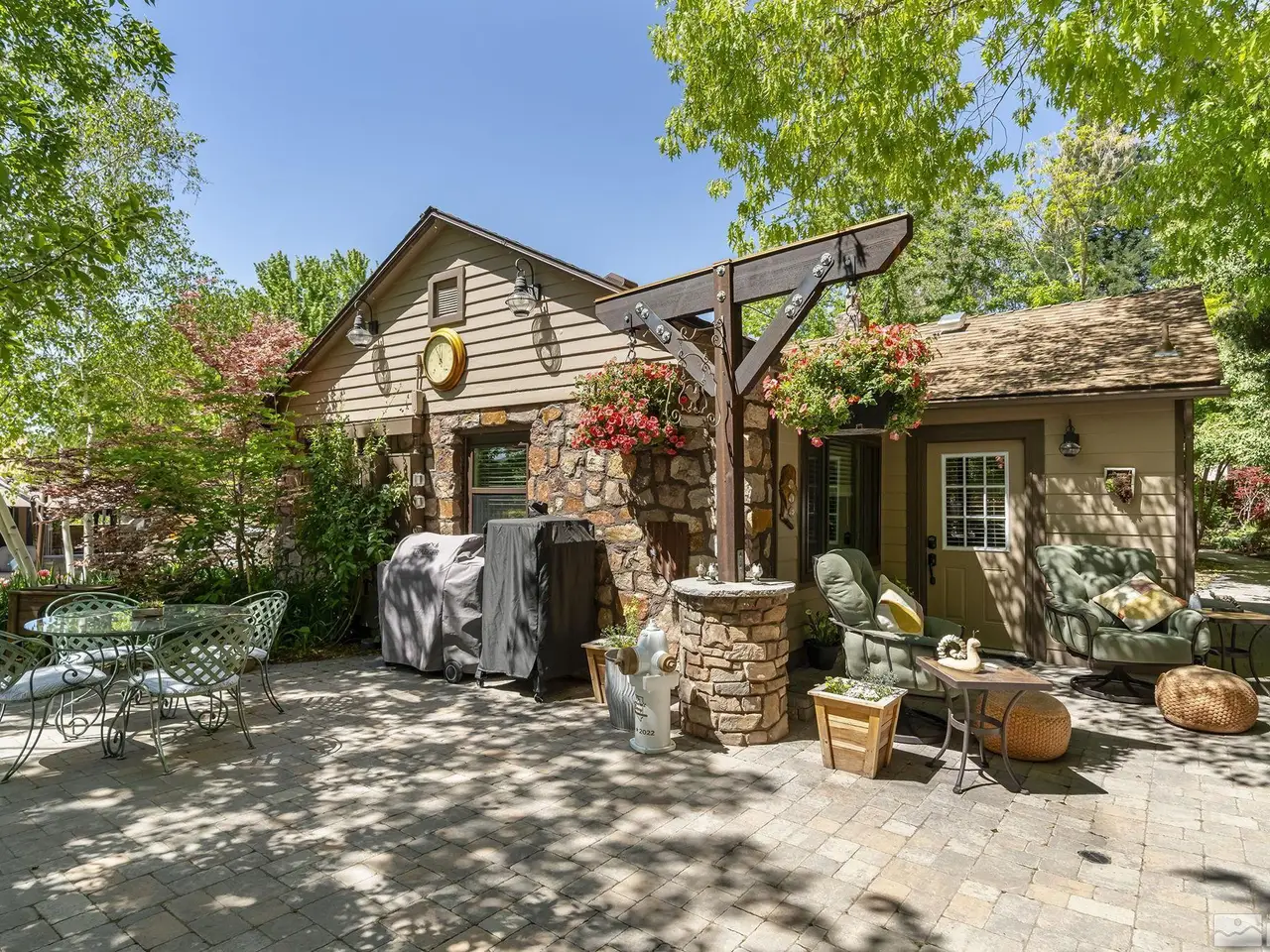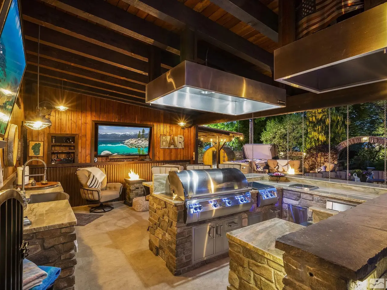 Welcome to your private resort-style estate—a truly rare offering that blends luxury, function, and natural beauty. Set on a fully fenced, gated property with lush mature landscaping, waterfalls, koi ponds, and expansive pavered driveways (with heated entry pad), this home is designed for both grand entertaining and serene everyday living., Don’t miss this rare opportunity to own a luxury compound on three parcels that features a 3-bed, 2-bath main residence (1,652 sq ft), a 2-bed, 2-bath guest house (1,336 sq ft), and a studio in-law suite —ideal for multigenerational living. Enjoy a saltwater pool (heated year-round), spa, sauna, firepit, and fully covered outdoor chef’s kitchen featuring premium Firemagic and Gaggenau appliances, bar seating with swings, heated floors, and surround sound. The grounds also include a lighted horseshoe pit, Zen garden, greenhouse, and multiple outdoor bathrooms. The main residence offers keyless entry, surround sound, backup heat, and new zoned HVAC. A separate guest house (2 bed / 2 bath) includes a chef’s kitchen with Wolf appliances, heated bathroom floors, and new insulation and electrical. A fully appointed in-law suite offers independent living with a kitchenette and full bathroom. Additional highlights: gym with new mini-split, upgraded garage doors, 2-car garage with HVAC zone, 2-car carport, full RV hookups, security systems, whole-property WiFi with boosters, and instant hot water throughout. Storage abounds with a waterproof, animal-proof unit plus two outbuildings. Fully wired for a generator and ready for year-round luxury living.