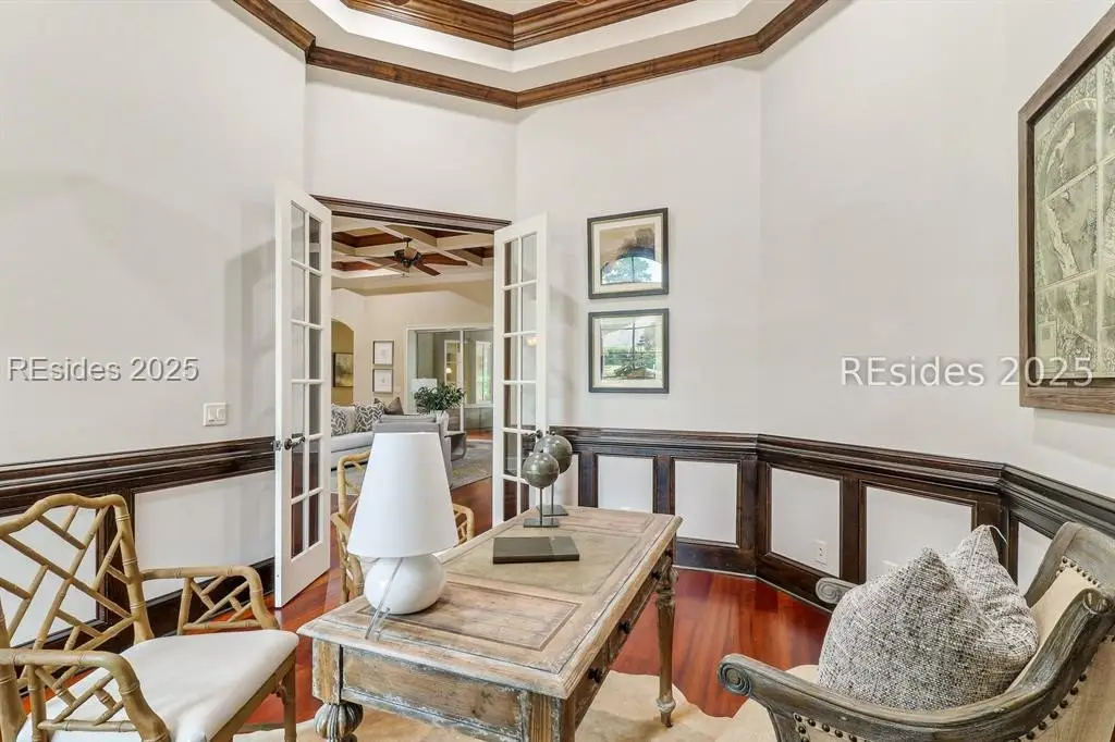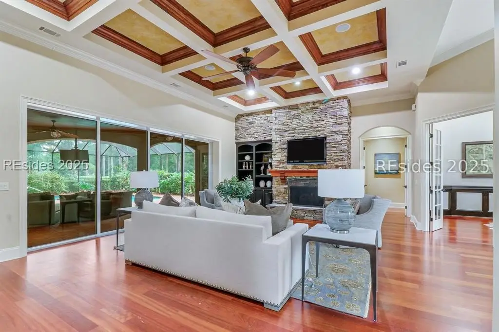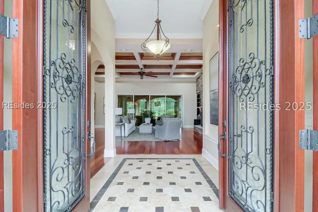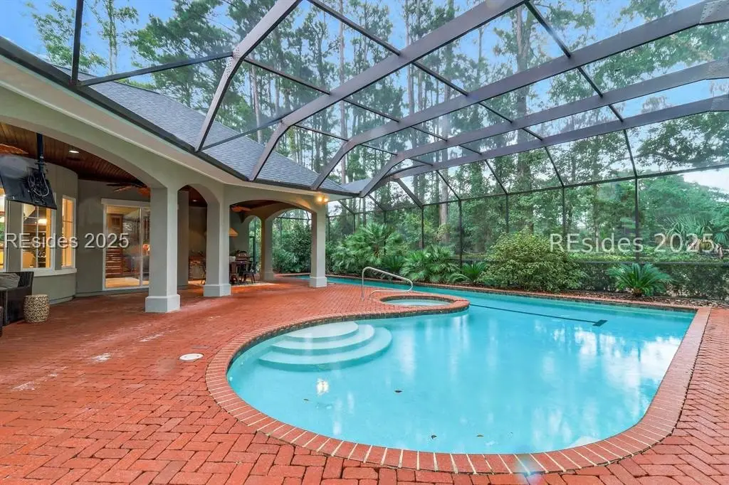 Tucked inside the gates of Berkeley Hall, this Richard Best creation is equal parts craftsmanship and comfort, a true Lowcountry retreat. The heart of the home, a chef's kitchen, comes outfitted with a 66-inch Sub-Zero, a GE Monogram six-burner range, dual Bosch dishwashers, and a granite island designed for gathering. Step beyond the doors to a 2,200 square foot lanai where life spills easily outdoors. A heated lap pool, bubbling spa, and a fully appointed summer kitchen with a brand-new grill promise endless evenings under the Carolina sky. Inside, the main level delivers a serene Primary suite with a spa-worthy bath, a private study, and a flexible mother-in-law suite fit for guests PLUS another flex space, perfect for fitness/studio/playroom. Upstairs, a media room and four additional suites ensure room for family and friends alike. For the car enthusiast, a 3.5 car oversized garage with an epoxy-coated floor provides the ultimate space for prized vehicles, storage, or a workshop. Recent enhancements include fresh paint, new double washers and dryers, a 2021 roof, and newer HVACs provide peace of mind to match the property's timeless appeal. Here, luxury doesn't shout, it lingers in the details, making this Berkeley Hall residence as enduring as it is inviting.