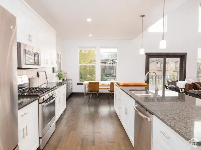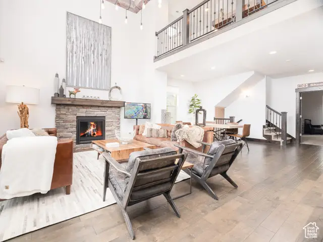 Step into mountain elegance in this expansive 5-bedroom furnished townhome at The Retreat at Jordanelle. The spacious square footage offers vaulted ceilings, a beautiful fireplace, and large windows that frame sweeping views. The chef's kitchen encompasses a social environment and high-end appliances. Three en suite bedrooms and two additional guest rooms make this ideal for private retreats or hosting family and friends. Enjoy outdoor living with a private hot tub, a fire pit and covered patio and serene views over open space. Community amenities include a clubhouse with fitness center, year-round hot tub & heated pool and trails. Just 5-10 minutes to Deer Valley's Jordanelle Gondola & historic Main Street Park City. This a great opportunity for a primary residence or a nightly rental opportunity. schedule your private tour today.