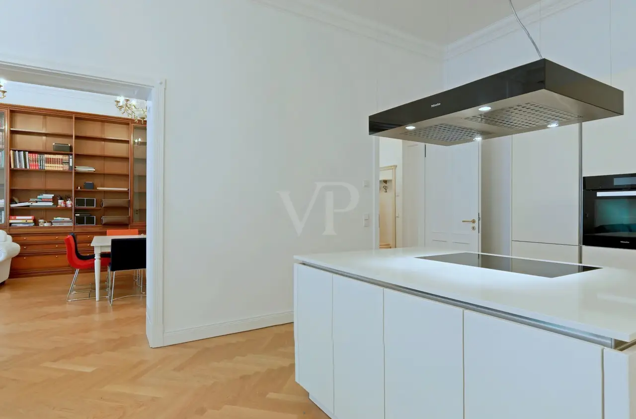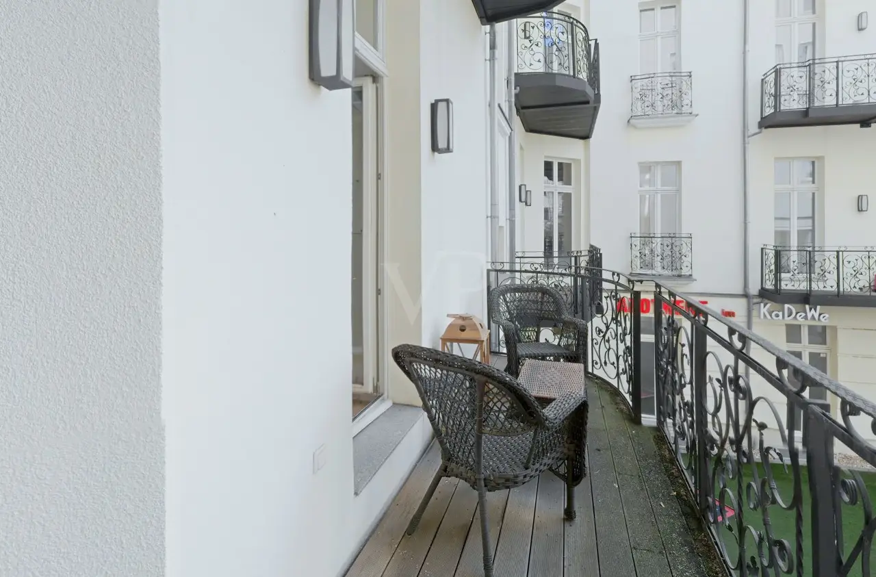 "Breakfast at Tiffany's" at KaDeWe - Property with unique flair This exclusive apartment impresses with its modern furnishings and the unique combination of historical charm and contemporary living comfort. With a generous living area of approx. 144 m², this apartment offers plenty of space and impresses with its well thought-out room layout. The building, an imposing old building dating back to 1892, was extensively modernized in 2015. The stately entrance welcomes residents with impressive murals that underline the classic character of the building. A modern elevator provides additional comfort and facilitates access. The apartment itself is characterized by exclusive furnishings and a pleasant atmosphere. High-quality parquet flooring and underfloor heating pervade the rooms and create a dignified ambience. The heart of the apartment is the exclusive living room with floor-to-ceiling windows, which create a bright and airy living atmosphere. Here you can spend cozy evenings or receive guests in style. The adjoining kitchen is another highlight. It is equipped with modern appliances and offers enough space for culinary creations. The bedroom is a feel-good retreat and offers plenty of space for individual design ideas. The walk-in wardrobe provides additional storage space. Lovingly designed details create an inviting atmosphere. Another highlight of the apartment is the spacious bathroom with a free-standing bathtub. From here you can enjoy a view of the quiet courtyard garden. In the morning, you can start the day in a relaxed manner. A separate guest WC provides additional comfort. The location of the property is also remarkable. You can easily reach the courtyard by elevator and can go straight to the famous KaDeWe department store for a hearty breakfast. Thanks to the central surroundings, numerous other shopping facilities, restaurants and cultural institutions are within easy reach. This unique apartment is a jewel that combines comfort and elegance in perfect harmony. It is waiting for a new owner who appreciates the charm of the old building with its modern amenities. Come and view the quality and character for yourself and find your new home in a lively yet comfortable environment. We look forward to showing you this exceptional property in person.