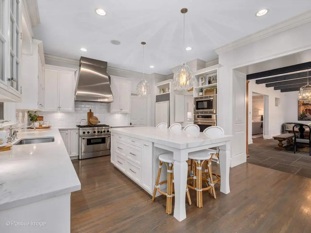 Welcome to 401 Birchwood, a private wooded half-acre retreat. It's classic Nantucket style, hydrangea-lined facade, and bluestone patio feels like an East Coast getaway right here in Hinsdale. Walk into the welcoming foyer anchored by a gorgeous designer light fixture, setting the tone for the streamlined, sophisticated touches throughout. Stunning hardwood floors and a magazine-worthy living area connect seamlessly to the show stopper dining room. French doors open to the backyard, creating chic & effortless indoor-outdoor living. Stunning white kitchen with two Thermador ovens and over sized island is perfect for a bakers and cooks. The window-lined first-floor primary suite, convenient & private is a serene retreat bathed in natural light. Upstairs you will find a spacious en-suite bedroom plus two additional bedrooms sharing a full bath. A fifth bedroom and full bath on the lower level make an ideal space for extended family and guests. The lower level is an entertainer's dream, featuring a huge recreation area with a pub sized wet bar, wine storage, a gym and a dedicated hockey/baseball/golf simulator zone. Additional highlights include a four-car garage with heated floors, heated floors in the dining room and primary bath. A 123' x 179' lot, main & upper level square footage of 3,831, basement square footage of 2,711, and total finished square footage of 6,542. Monroe School, CHMS, and Hinsdale Central High School. Steps to Salt Creek Club.