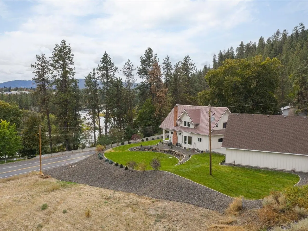 Charming Modern Farmhouse with breathtaking views of the Spokane River! Every inch of this amazing home has been renewed-every wall, every bathroom, every cabinet, every appliance, lighting, as well as all of the unseen essentials- plumbing, electrical, windows & exterior of home. It offers a rare balance of timeless character with the confidence of a fully updated home. Perched on 8.89 acres overlooking the River, Centennial Trail & near Arbor Crest, this home offers a main floor laundry room, an expansive Bonus room upstairs & beautiful finishes: a gorgeous light and bright new white kitchen w/huge island, new stainless appliances & a Primary Suite that will not disappoint w/dual vanities, a large tiled shower & walk in closet! The oversized garage/shop is 1,200 square feet & newly constructed. Yard has been newly landscaped with mature plantings, a level play area, covered front porch & privacy! Lower level is ready to finish!