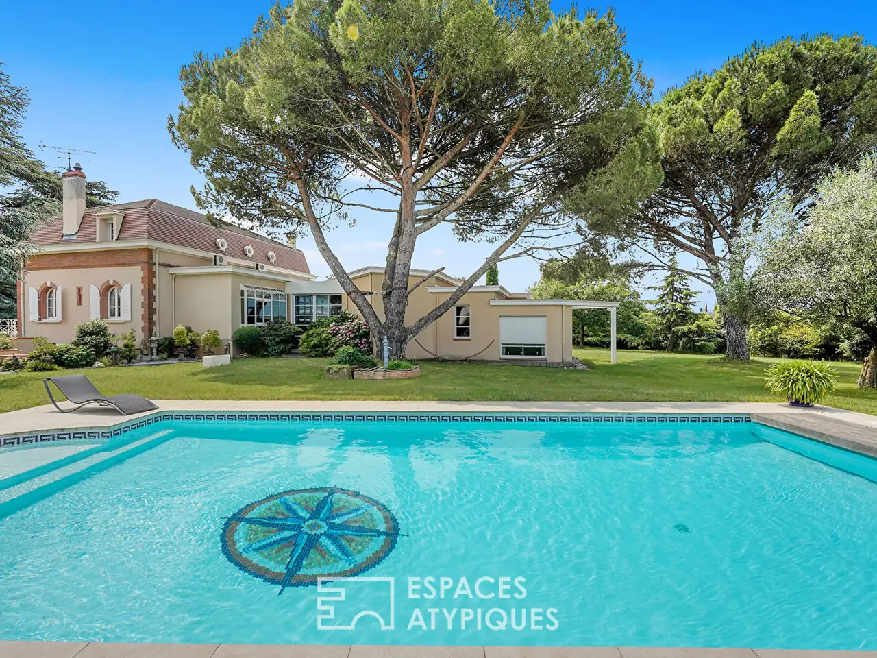 Propriete d'exception proche du centre-ville This former 330sqm hunting lodge dating from 1881 perfectly combines the charm of the old with the contemporary on a prime location in Tournefeuille. Beyond the gate, the unique architecture of this property of character and the different stages of construction are gradually revealed. As soon as you enter, the volumes are striking. On the right wing, a modern kitchen is naturally extended by a dining room. The living room is one of the centerpieces of the property. The fireplace dresses it with elegance. The numerous openings to the outside allow you to take full advantage of the 4,000sqm park. An architect intervened in the extension of the original building. A glass walkway provides access to the secondary lounge used as a projection room. A first sleeping area is offered on the ground floor with a 50sqm master suite. The original staircase, the true backbone of the hunting lodge, leads to the floor dedicated to rest. Four bedrooms including 1 suite as well as two bathrooms make up this level. A basement, accessible from the house and from outside, offers parking spaces, offices, wine cellar and laundry room. The exterior is not left out, nature spreads over more than 4,000sqm to constitute a magnificent green setting. A heated swimming pool and its pool house blend perfectly into the landscape. This splendid property steeped in history has been brought back to life in a popular area of western Toulouse. Possibility of acquiring in addition: - 1900sqm of building land, plotted and individual entrance. - Former stables with a surface area of 220sqm by 600sqm, ideal for vehicle collectors or for a second home. Well with watering. Parking for collector vehicles. Toulouse - Blagnac Airport 10 minutes ENERGY CLASS: C / CLIMATE CLASS: C. Estimated average amount of annual energy expenditure for standard use, established from energy prices for the year 2022: between EUR2,850 and EUR3,950. REF. 6855 Additional information * 9 rooms * 5 bedrooms * 4 bathrooms * 1 floor in the building * Outdoor space : 4100 SQM * Parking : 5 parking spaces * Property tax : 4 560 €