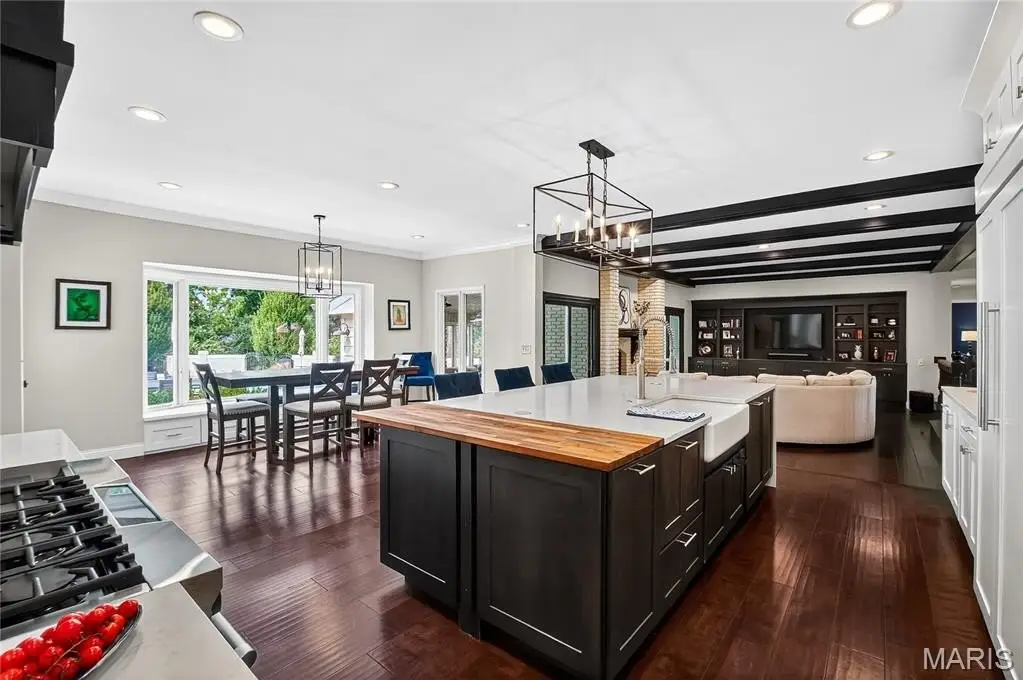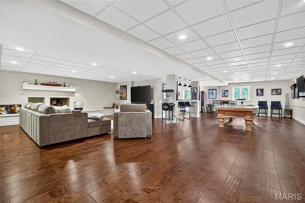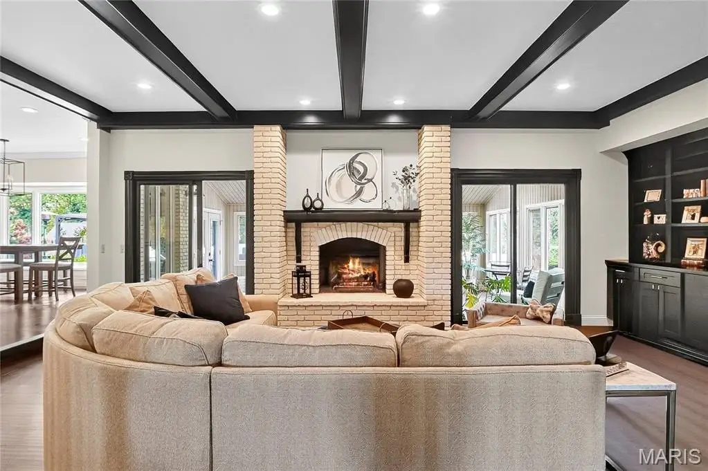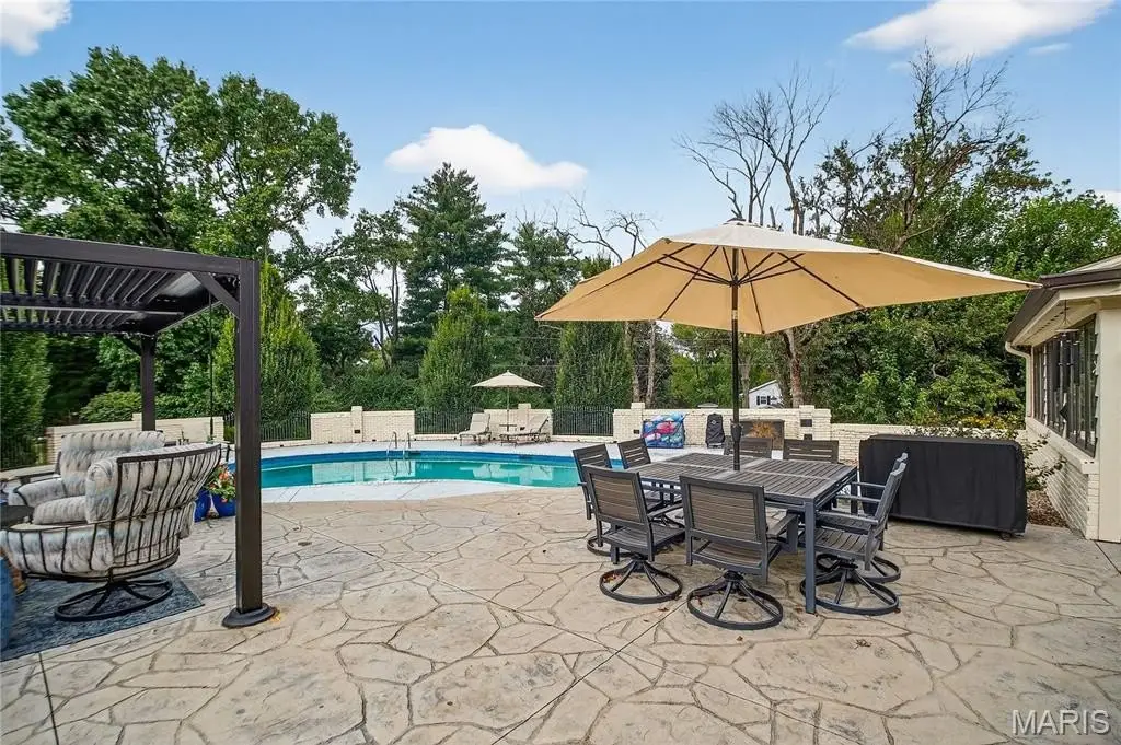 Down a picturesque meandering private road with Bellerive golf course peeking out amid large sprawling family homes, 52 Muirfield offers a gorgeous 6 plus bedrm, updated home surrounded by trees, professional landscaping, pool with hot tub and the quiet one would expect on storied Muirfield. This renovated home has been opened up and styled with the most sought after finishes throughout. The open kitchen is the center of the home with custom cabinetry, integrated appliances, large center island, walk in pantry with coffee center, wet bar and breakfast area overlooking the outdoor living space. Entertaining is made easy with the open great rm, sitting/reception area, dining rm and cozy family surrounded by 3 sides of windows. The main floor primary is appointed with a large custom closet with laundry, luxury bath with stand-alone tub and large shower. A private office, custom mudroom and guest powder rm complete the main level. The upper level does not disappoint offering an open loft area with beverage center, laundry rm, 2 large luxury baths and 5 private bedrms (one used as an office). The lower level is generous and offers a gym, another lg family rm with fireplace, rec room, full bath, and a bar area with walk out access to the pool. A 3 car oversized garage, circle drive, wood flooring on all levels, some newer windows, and more.