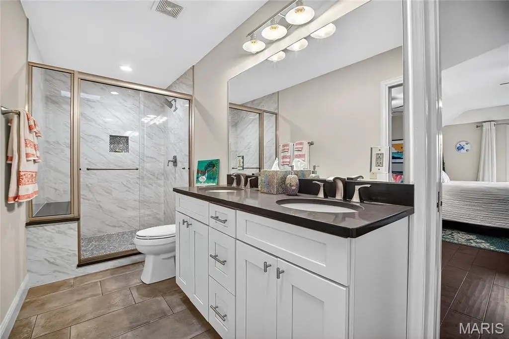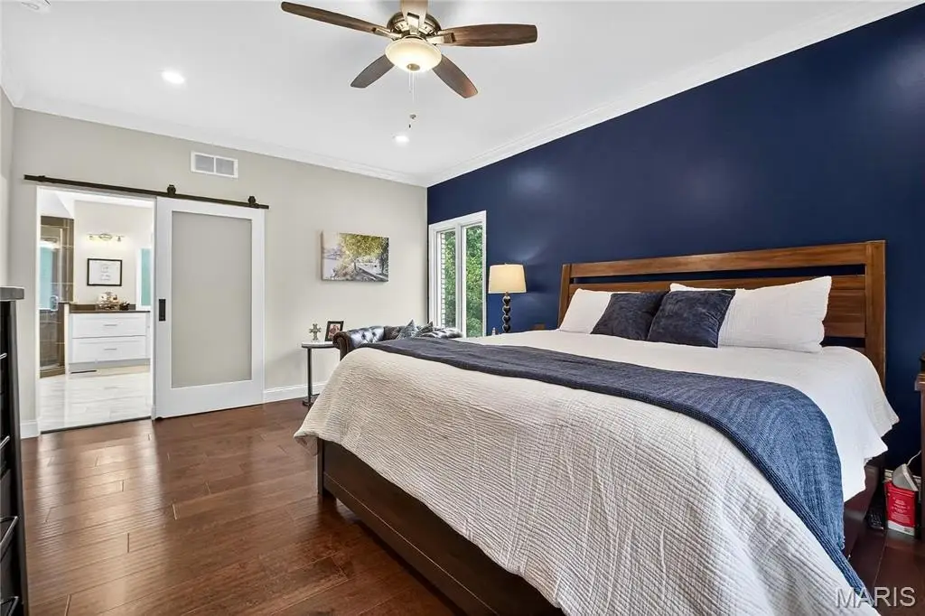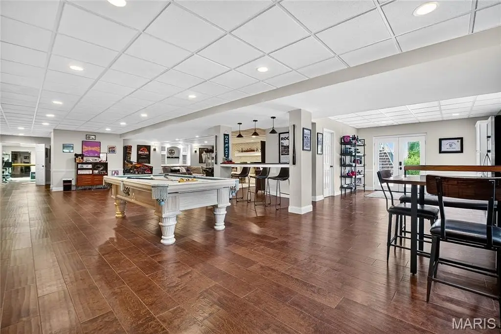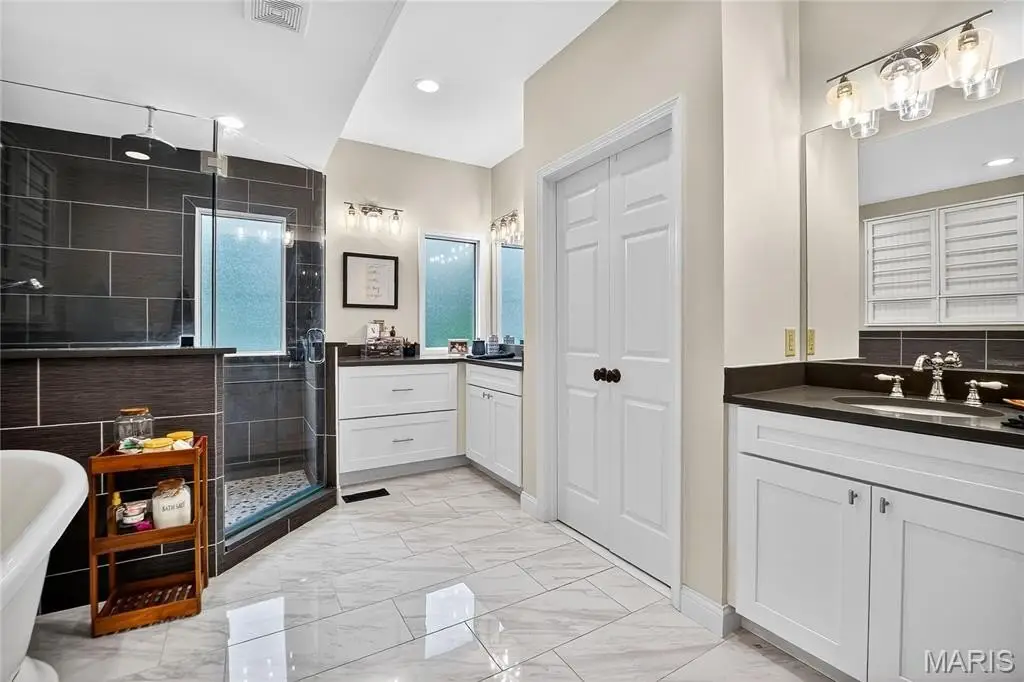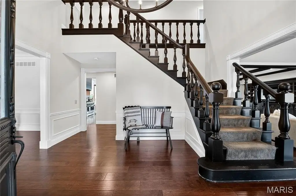 Down a picturesque meandering private road with Bellerive golf course peeking out amid large sprawling family homes, 52 Muirfield offers a gorgeous 6 plus bedrm, updated home surrounded by trees, professional landscaping, pool with hot tub and the quiet one would expect on storied Muirfield. This renovated home has been opened up and styled with the most sought after finishes throughout. The open kitchen is the center of the home with custom cabinetry, integrated appliances, large center island, walk in pantry with coffee center, wet bar and breakfast area overlooking the outdoor living space. Entertaining is made easy with the open great rm, sitting/reception area, dining rm and cozy family surrounded by 3 sides of windows. The main floor primary is appointed with a large custom closet with laundry, luxury bath with stand-alone tub and large shower. A private office, custom mudroom and guest powder rm complete the main level. The upper level does not disappoint offering an open loft area with beverage center, laundry rm, 2 large luxury baths and 5 private bedrms (one used as an office). The lower level is generous and offers a gym, another lg family rm with fireplace, rec room, full bath, and a bar area with walk out access to the pool. A 3 car oversized garage, circle drive, wood flooring on all levels, some newer windows, and more.