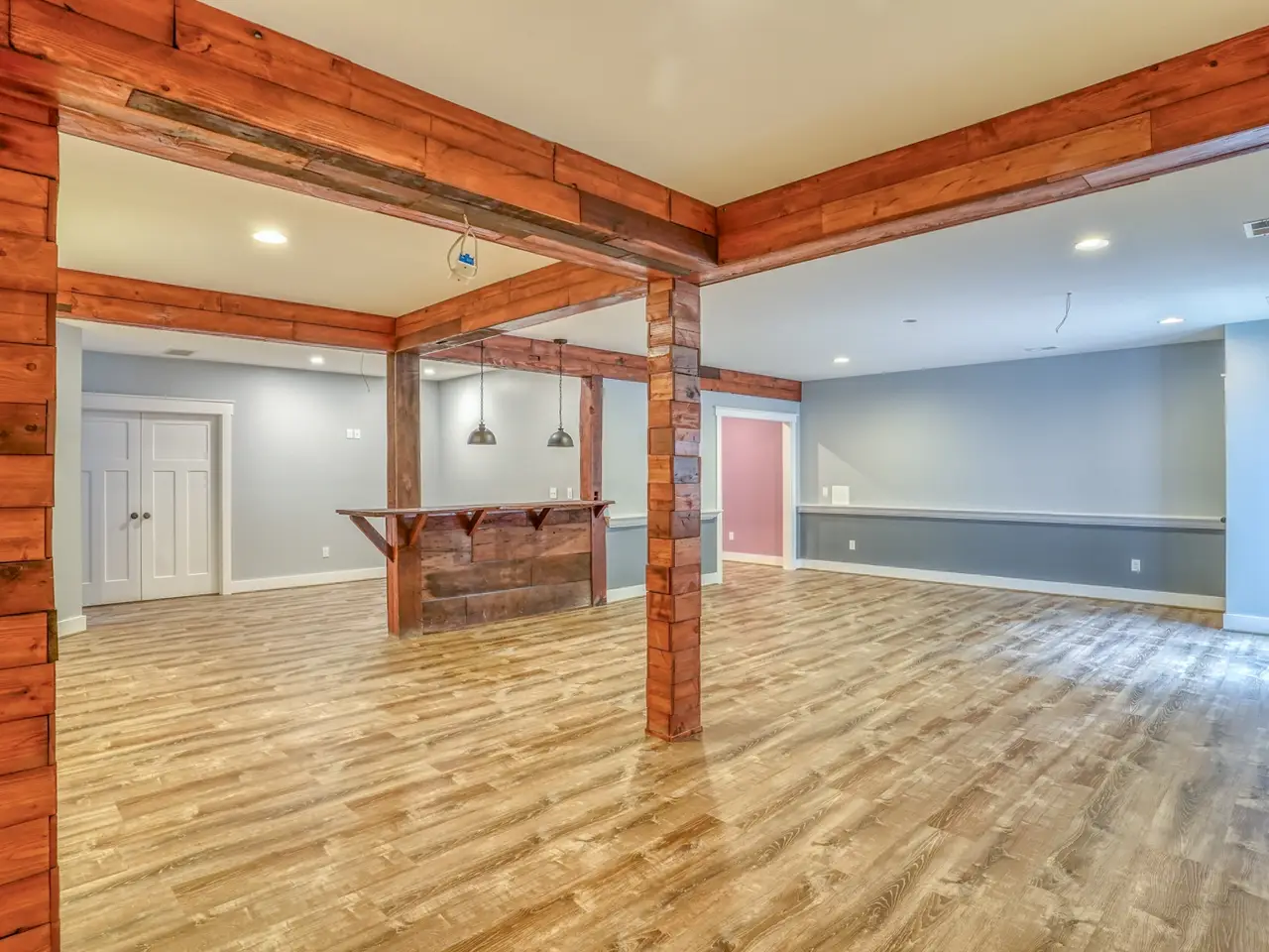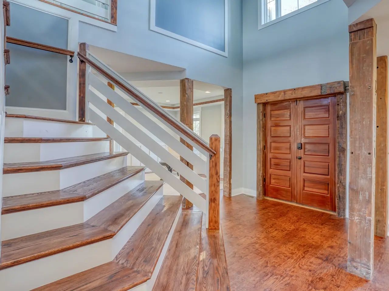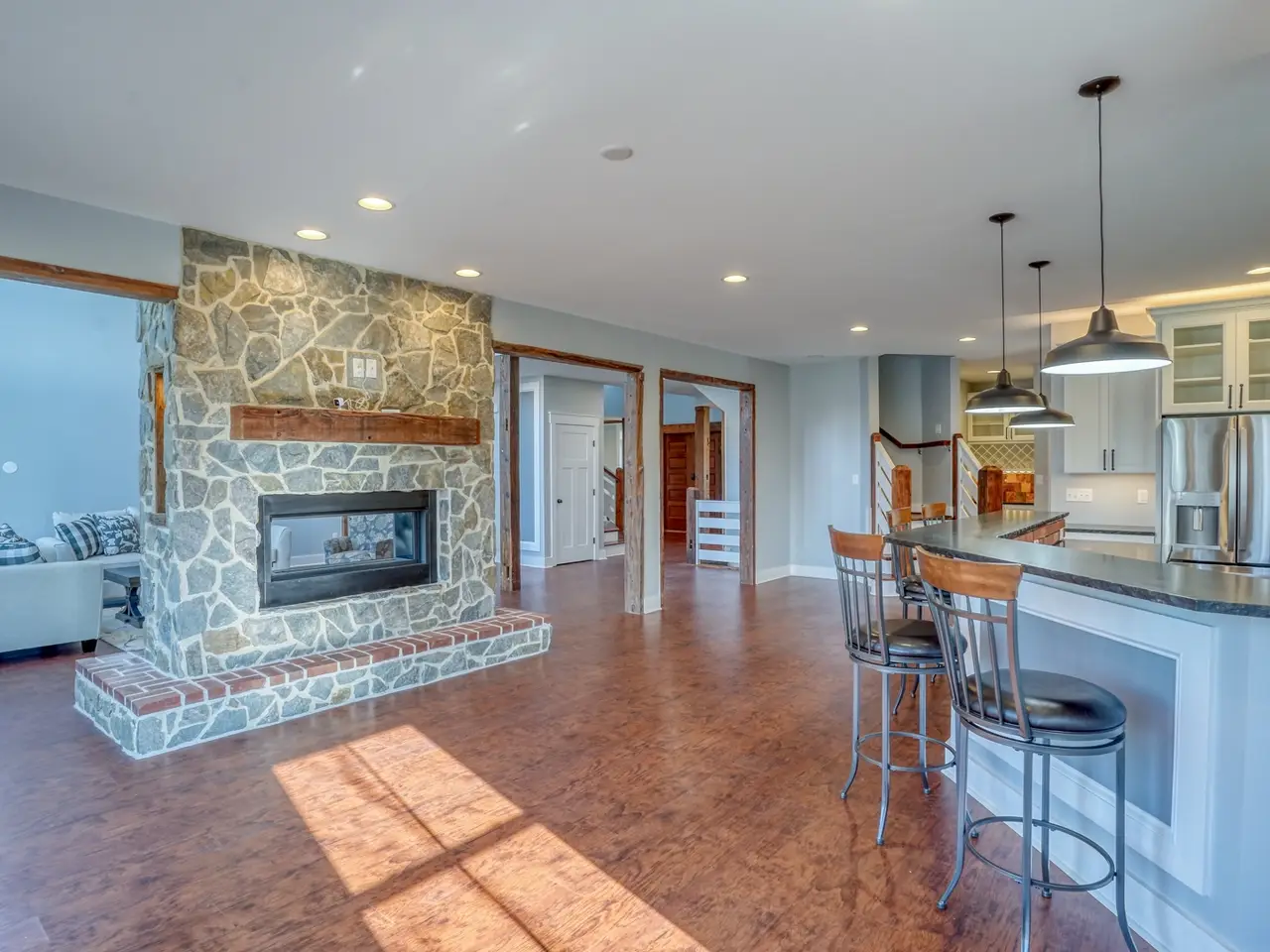 Welcome to Blackston Cove! This exquisite home offers a sprawling 5,314 sq ft on the first and second floors, along with an additional 1,400+ sq ft in the finished basement and 1,300+ sq ft unfinished basement. From the moment you pull into the driveway of this 1-acre parcel, you'll be captivated by the beautiful front porch and the convenience of an oversized 3-car garage. Step inside, and you'll be greeted by a grand 2-story foyer with a custom staircase, setting the tone for the elegance that lies ahead. To the right, a large living room leads to a versatile sunroom, offering endless possibilities for use. On the left, a spacious dining room with custom trim and a butler's pantry featuring a wet bar await your gatherings. As you venture further, an enormous 2-story family room with a stunning 2-sided fireplace invites you to relax and unwind. The back east wing of the home presents an in-law suite with a full private bath, while the opposite side showcases an amazing kitchen, hearth/breakfast area, mudroom, laundry, and a hidden wine closet—truly a dream come true. The second floor is equally impressive, featuring 4 large bedrooms, including a princess suite and a Jack and Jill bath. The owner's suite, a vast 25 x 19 space, comes with a gracious sitting area and a luxurious owner's bath with a walk-in closet that's sure to impress. This home is a masterpiece of modern farmhouse design, meticulously planned and crafted. From the handcrafted doors to the custom-burned wooden staircases and columns, every detail speaks of superior craftsmanship. The decor is simply stunning, leaving you in awe at every turn. Words can only do so much justice to this remarkable home; you must experience it for yourself. Come and see this beauty with your own eyes, and you'll understand why it's a must-see. Don't just take my word for it—schedule a tour and witness the magnificence of this custom home at Blackston Cove!