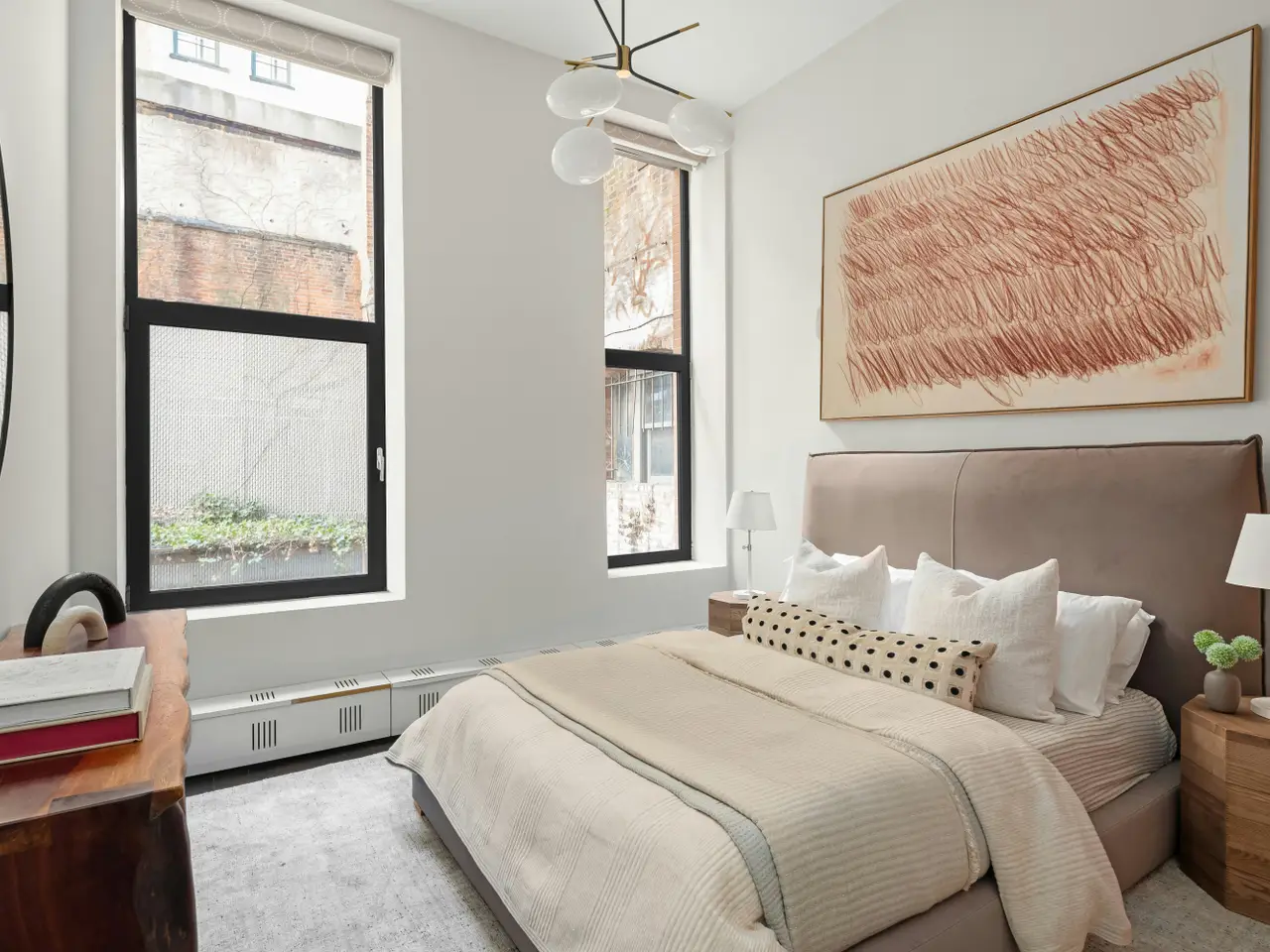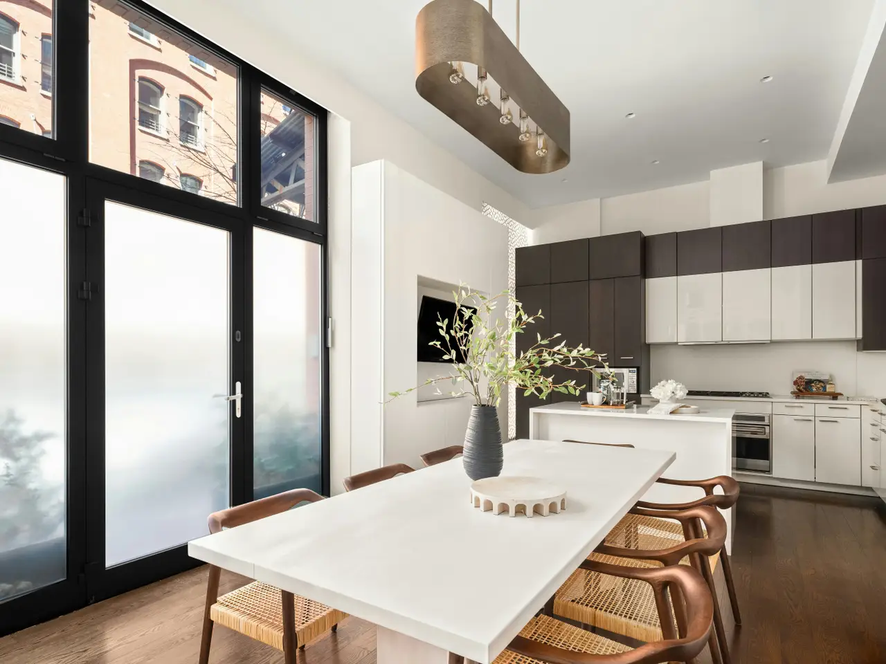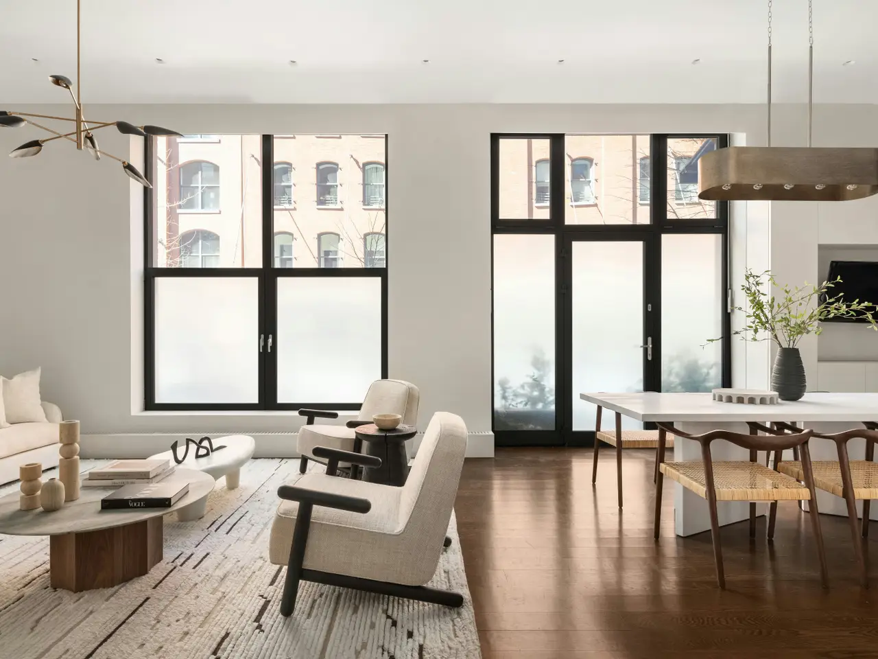 This expansive 3,300 SF townhouse offers a rare blend of privacy, space, and modern luxury in the heart of North Tribeca. With five bedrooms, five bathrooms, and a private 630 SF patio, the home is thoughtfully designed across three levels. Enter through a private Washington Street entrance or the 24-hour attended condo lobby. The main level features a dramatic 41-foot-long great room with soaring ceilings, ideal for entertaining and displaying art. The open-concept kitchen is equipped with premium appliances and generous storage. Two well-proportioned bedrooms overlooking the private garden, and two full baths complete this floor. Upstairs, the secluded primary suite offers a peaceful retreat with a spa-like en-suite bath and a windowed walk-in closet. The lower level serves as a versatile media room or guest suite, featuring a Murphy bed, full bath, built-in wine storage, and direct access to the landscaped two-level terrace. Designed for seamless indoor-outdoor living, the terrace includes a gazebo, lush plantings, and outdoor furnishings, including a built-in banquet and a dining table for ten. Set on a quiet cobblestone street, The Fairchild is a boutique condominium with a full-time doorman, private storage, and bike storage. Just one block from Hudson River Park and moments from top restaurants and the Fouquet Hotel, this home offers the best of townhouse-style living with the convenience of a full-service building.