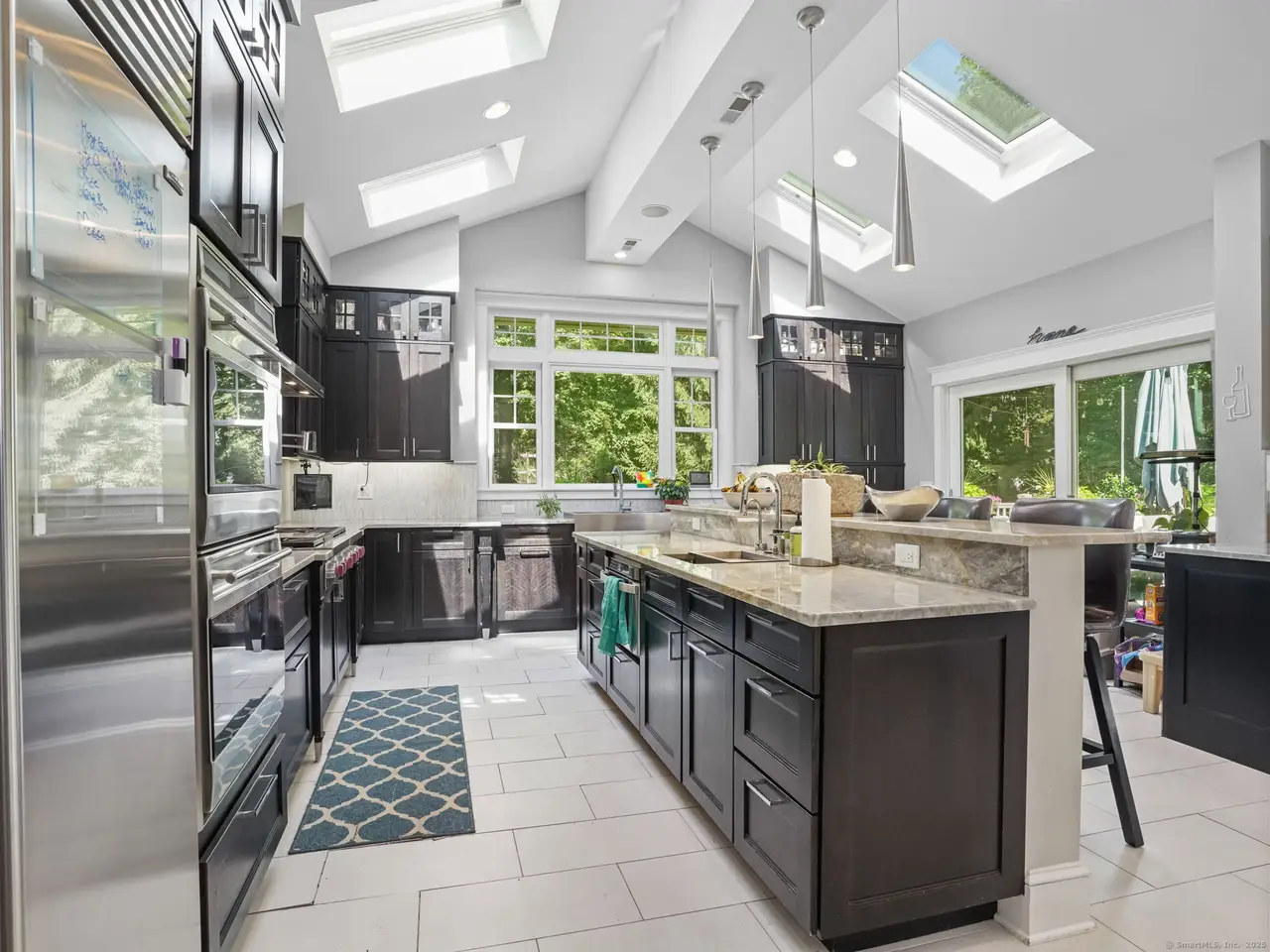 A stunning architecturally designed custom home located in the desirable Porter's Hill section of Trumbull & within the Daniels Farm Elementary School District. Conveniently close to schools, parks, shopping, restaurants, & highways, this commuter's dream offers 7 to 8 bedrooms & 6 full bathrooms, each finished with high-end tile, fixtures, and amenities.Professional audio system throughout. The impressive 2-story foyer with open staircase sets the tone for a sun-filled interior highlighted by skylights, unique lighting, and custom pendant lighting. The gourmet kitchen is equipped with Wolf appliances including a gas cooktop, double ovens, warming drawers, Sub-Zero refrigerator, wine chillers, and three sinks, high end Brazilian Quartzite countertops all complemented by custom cabinetry. The home features a cedar sunroom with a full-size Thermo-spa hot tub, a spacious mudroom with built-ins and shelving, and an expansive 25x25 foot walk-out office with a full bath that can also serve as an au pair, or in-law. The primary suite offers cathedral ceilings, built-in bookcases, a fireplace, surround sound, and a luxurious bathroom with a steam shower, whirlpool tub, double vanities, and decorative tile. Outside, the property has been professionally landscaped by a landscape architect with specimen trees, lavender walkway, and an oversized Trex deck, creating a private, tranquil, and breathtaking outdoor oasis that perfectly complements this extraordinary home.