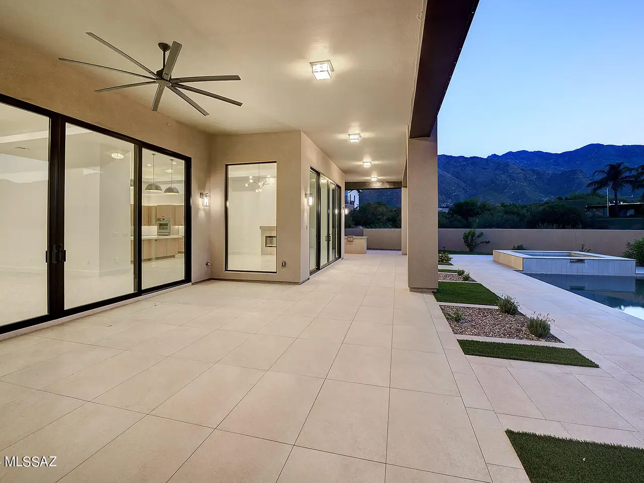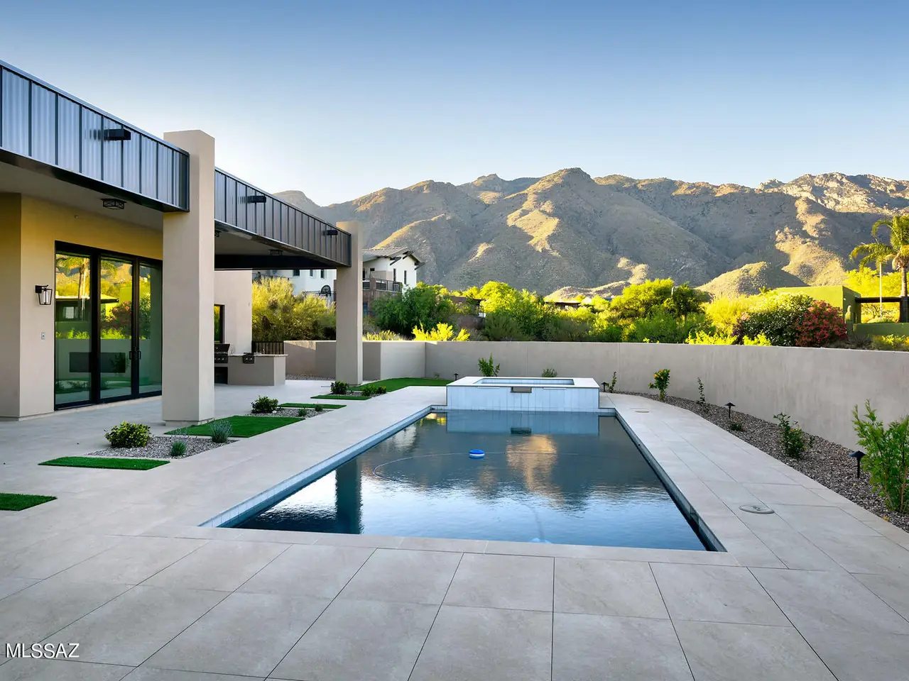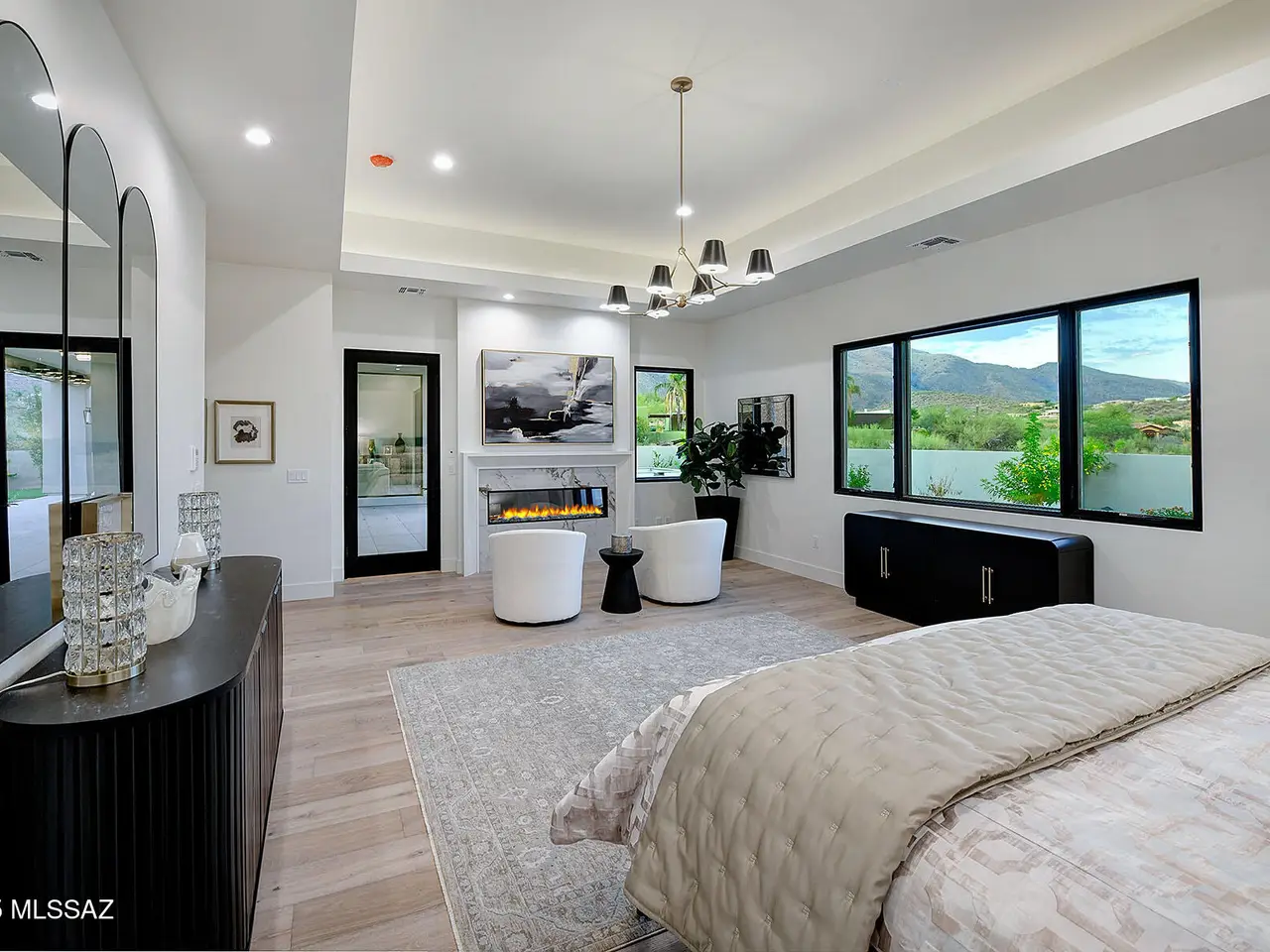 Seller will consider offers between $3,000,000-3,250,000. This stunning, brand new 2024 luxury contemporary is nestled on a 1.19-acre view lot in Alta Vista Sonrisa in the Catalina Foothills and offers sweeping mountain views. The 5,377 sq. ft. home features 6 bedrooms, 5 1/2 baths, and a 4-car garage with a storage room. Highlights include concrete paver driveway, a covered entry with custom wrought iron entry door, a grand foyer entry, and a spacious great room with a soaring ceiling, porcelain & wood flooring, 2 fireplaces and a wall of sliding glass doors leading to an expansive covered back patio. The fabulous chef's kitchen, open to the dining room, provides an oversized center island with prep sink, custom cabinetry,
