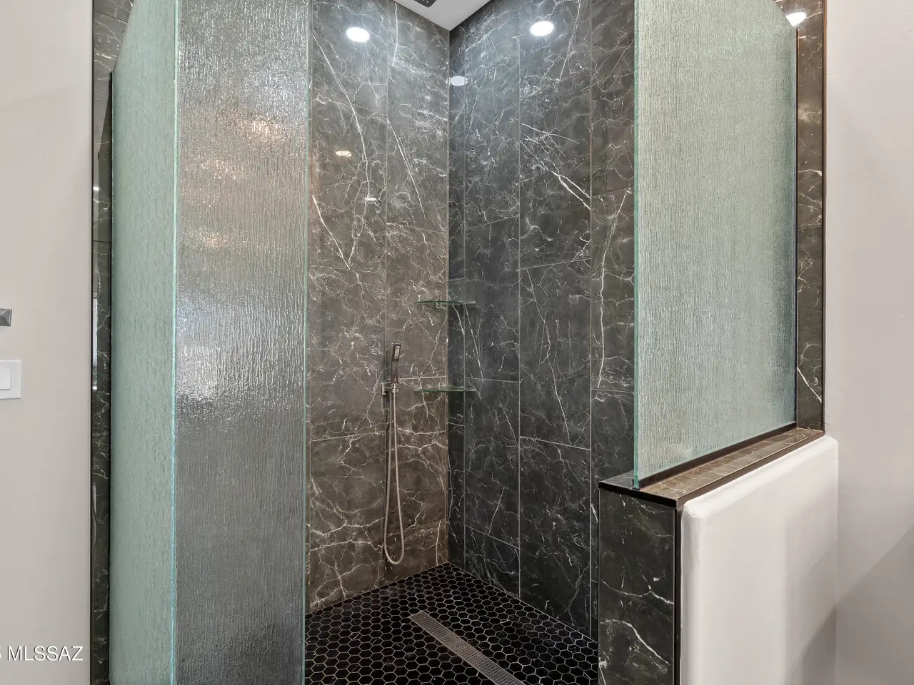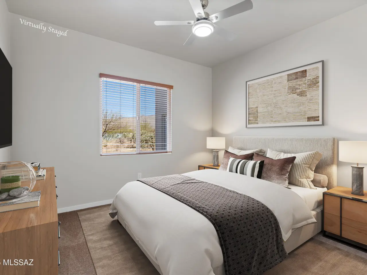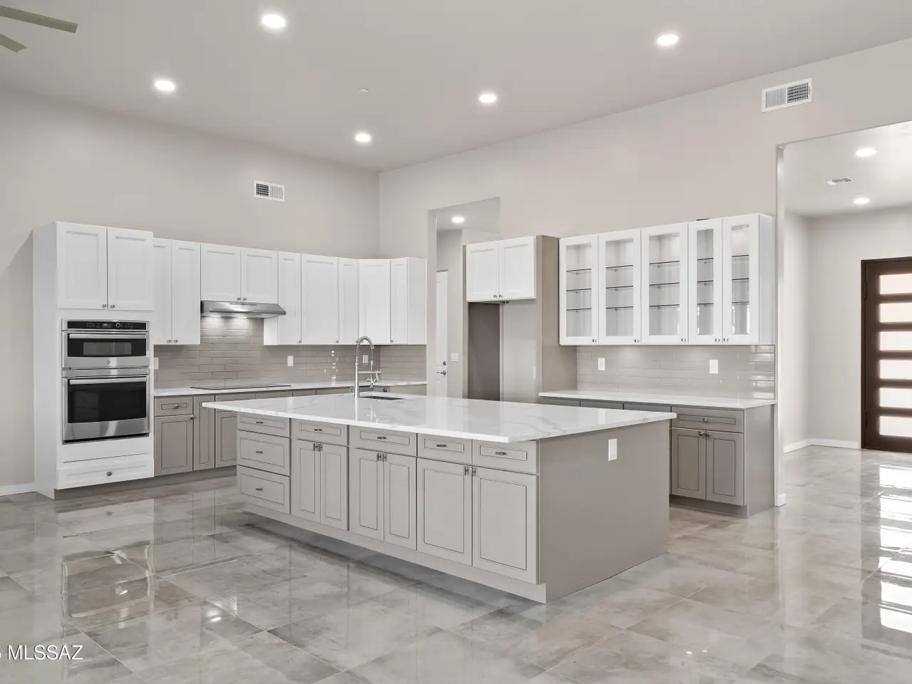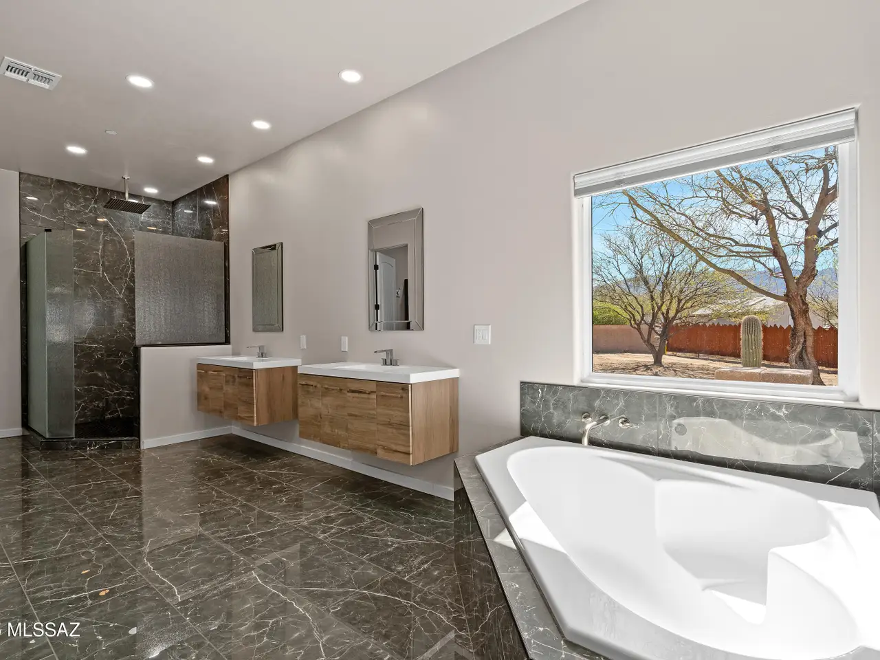 **End of the Road in Magical Tanque Verde!** Breathtaking Contemporary Oasis Crafted in 2025. Embrace clean lines & a thoughtful floorplan. Mountain views from nearly every window! Minutes away, ntl. forest awaits exploration, along w/ shopping, golf & fine dining. Enjoy the FREEDOM of life without an HOA! Shaded by deep, full-length covered patio. Oversized windows bathe the great room in natural light with views of the waterfall pool. Backlit, remote ignition fireplace allows you to set the perfect mood. White quartz w/gray veining provides an elegant complement to the gourmet kitchen's seating island. With a Split BR plan, the primary bath stands out as a work of art! The finished yard boasts BBQ, fireplace, shade trees in divided spaces w/over 600ft of walls & fencing on an ACRE LOT.