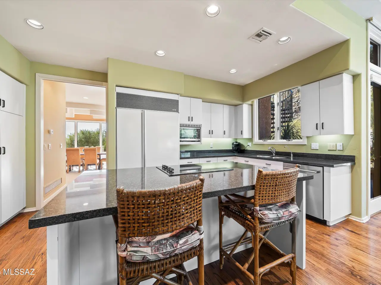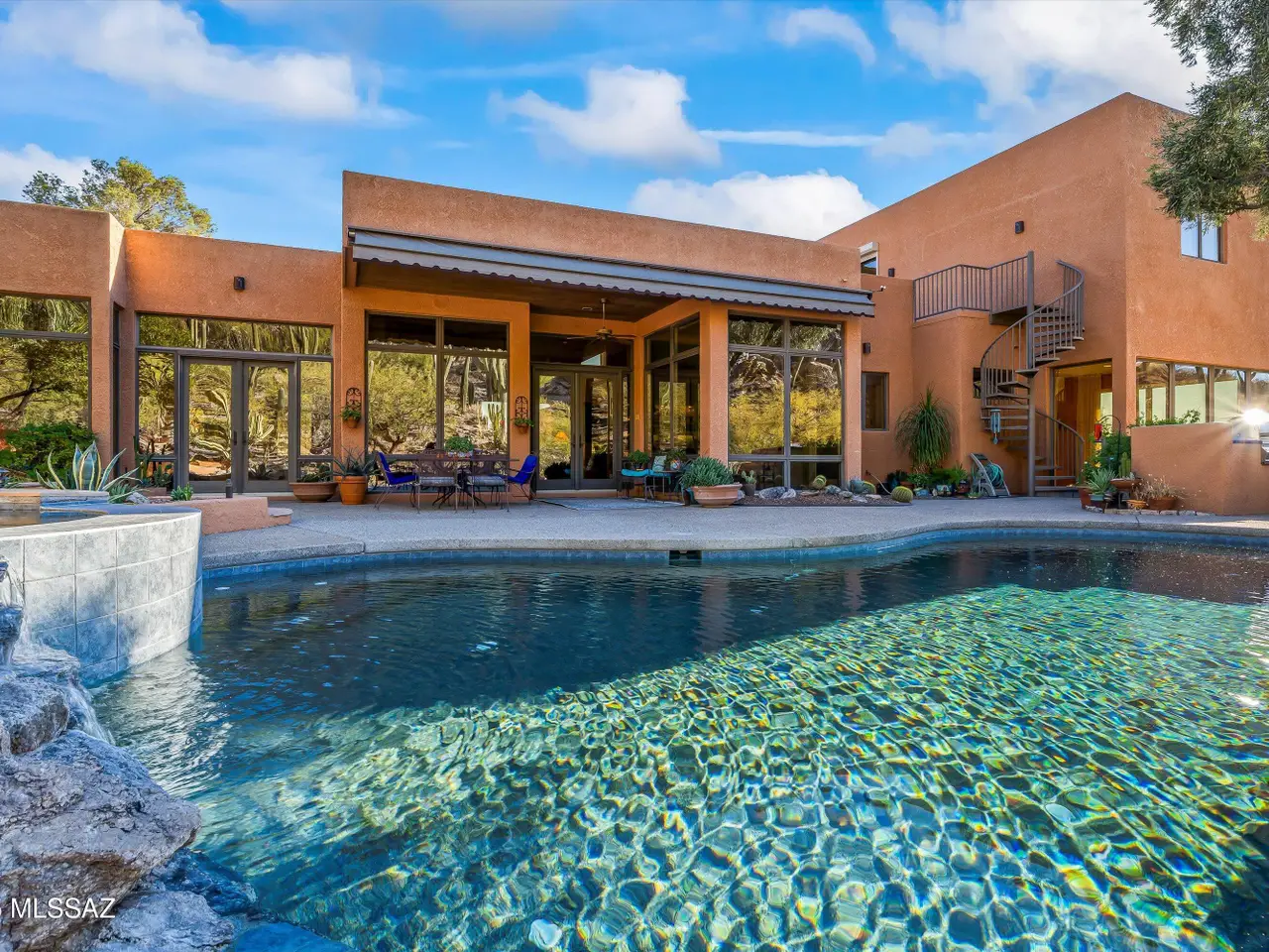 Ventana Canyon Desert Oasis in Esperero Canyon Estates! One of only 19 homes in this exclusive section of Ventana. Nestled within the gated Ventana Canyon community, this contemporary masterpiece designed and built by John Campisano offers a serene retreat. The property boasts saguaro-studded hillsides, lush natural desert and city lights providing a private mountain backdrop. Situated on a large lot in a quiet cul-de-sac, the home features a private pool and spa in a natural open backyard, complete with a built-in BBQ. The master bedroom is conveniently located on the main level, and the home includes an open kitchen and soaring ceilings. Upstairs has a large walkout View deck with a spiral staircase to the pool area. Enjoy the perfect blend of luxury and nature in this exquisite home.