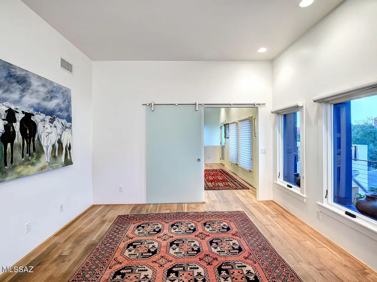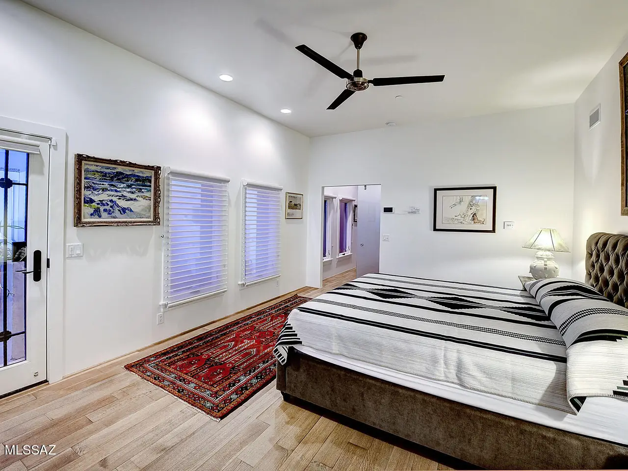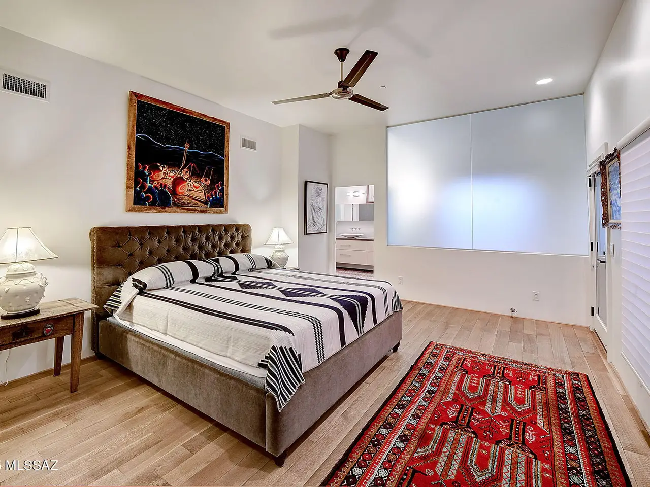 Discover a rare gem: an iconic home nestled in the heart of Mercado San Agustin. This elegant, custom-designed residence radiates European charm and features a versatile floor plan perfect for modern living. The spacious, light-filled great room on the ground floor boasts luxurious Chamonix porcelain tile, while the upstairs invites you in with bright, airy spaces covered in warm plank-wood flooring. Downstairs the beautifully appointed kitchen offers ample storage, a dining area, walk-in pantry, and stainless-steel appliances. A cozy den and guest bedroom with an upgraded bathroom complete with Villa Deco Graphite tile are conveniently located downstairs. Ascend to the second level, where you'll find another guest bedroom with an en-suite bath, adjoining the primary bedroom a private