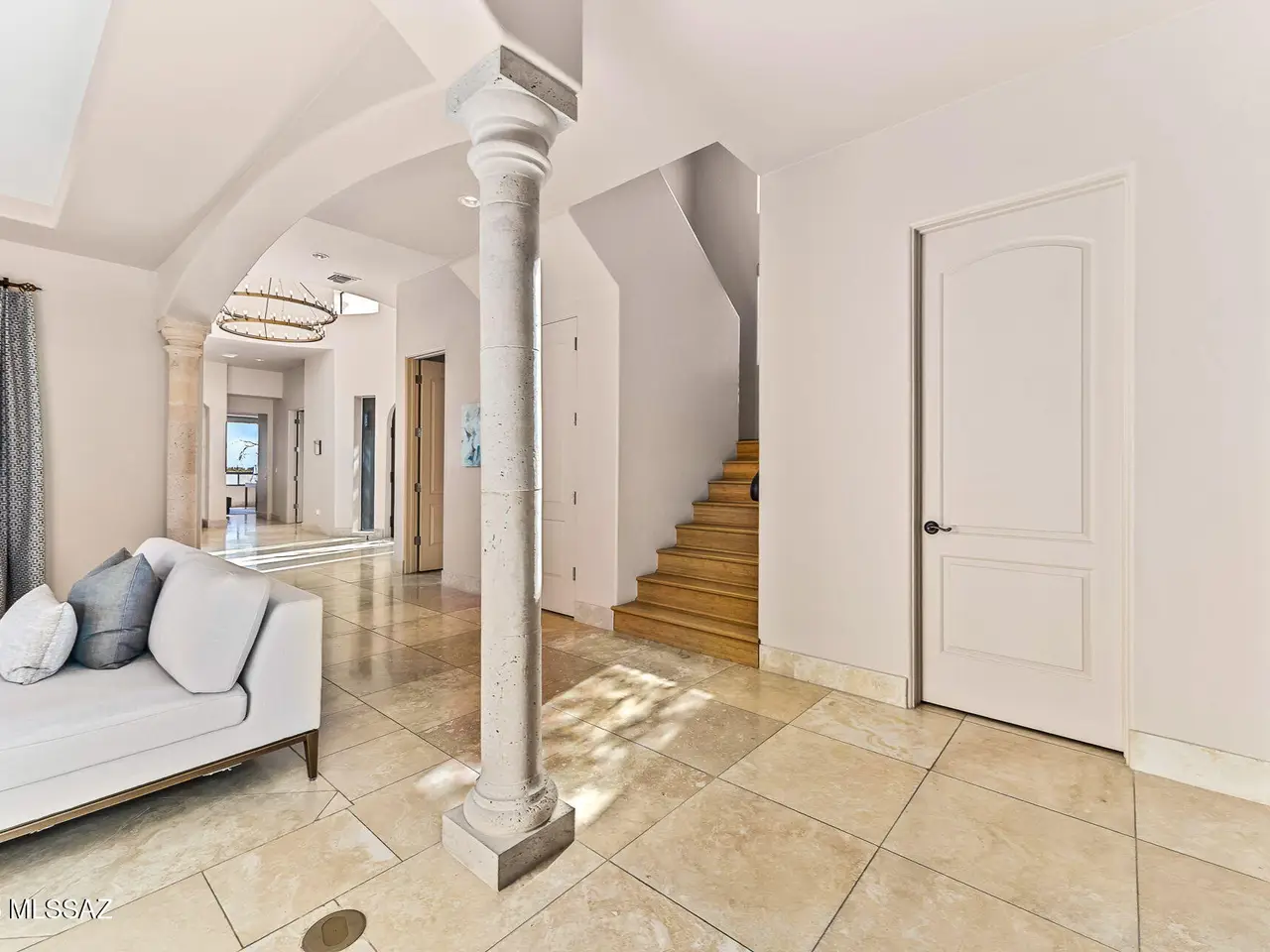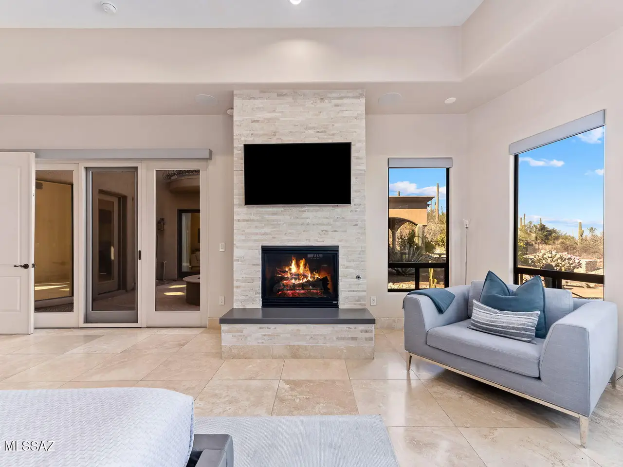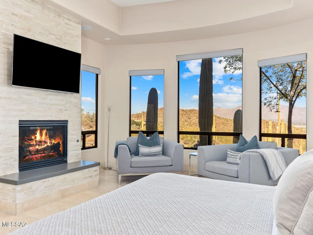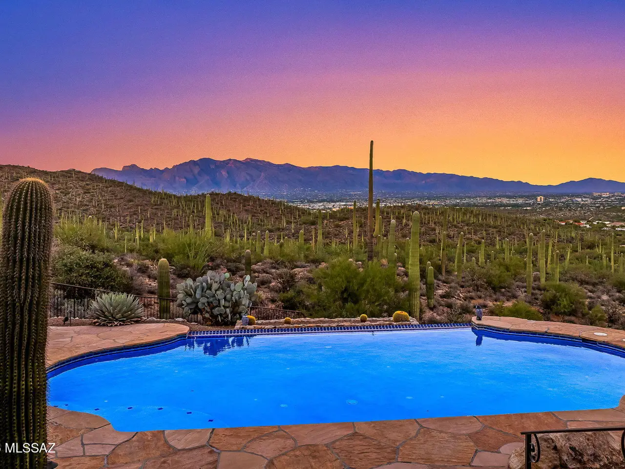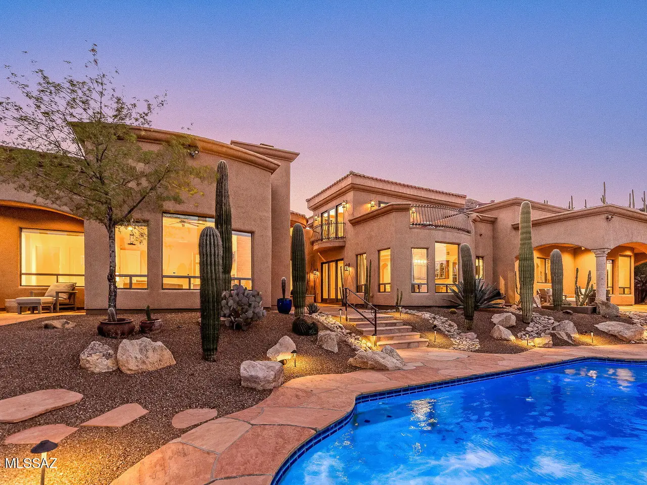 Unmatched Tucson elegance in a prestigious, gated community -- The Estates at Starr Pass -- high above the city in the Tucson Mountains. Set at the base of Saguaro National Park, this exceptional 4,995 sq. ft. luxury residence sits on 3.3 acres of pristine, saguaro-studded desert, offering unparalleled privacy and sweeping views of Tucson's skyline and mountain ranges. Blending modern Southwest design with elegant contemporary functionality, this home exudes warmth, sophistication, and comfort. Step inside to discover soaring ceilings, expansive living spaces, walls of glass, and an open floor plan ideal for entertaining. The dramatic foyer is the center of the home. Just off the foyer, the spacious living room features a formal dining area, and a coffee bar/wet bar combo, providing