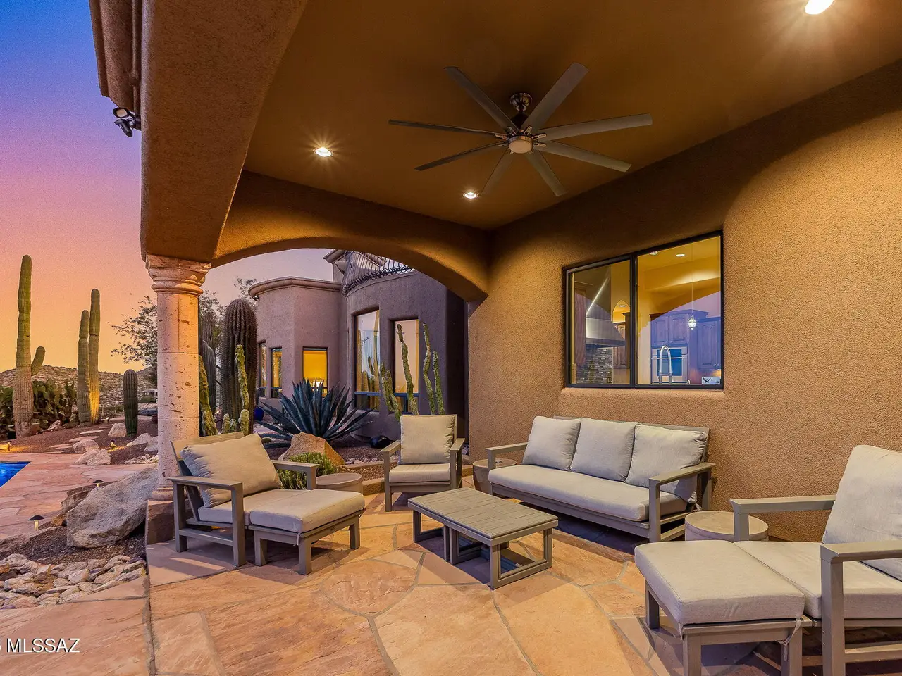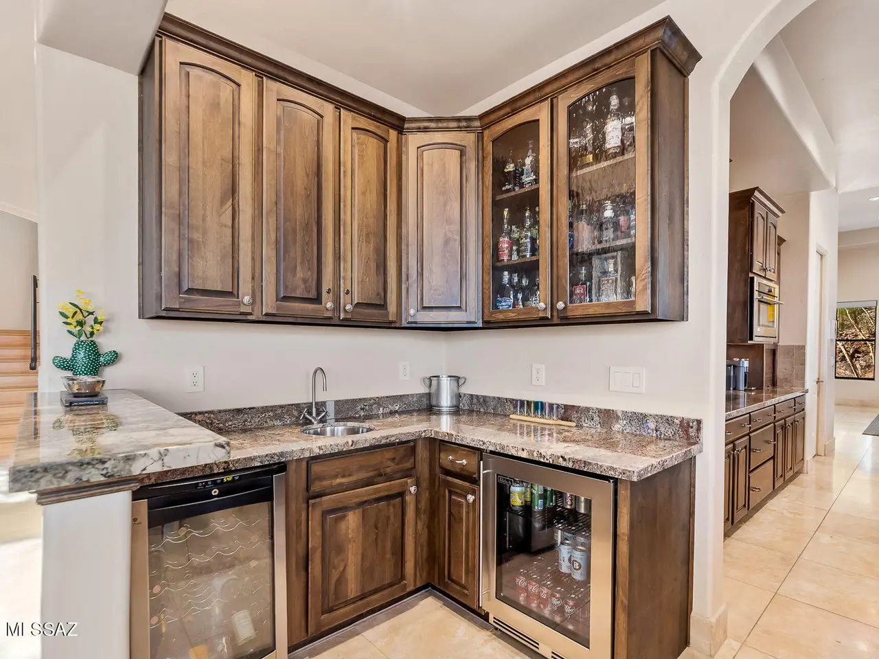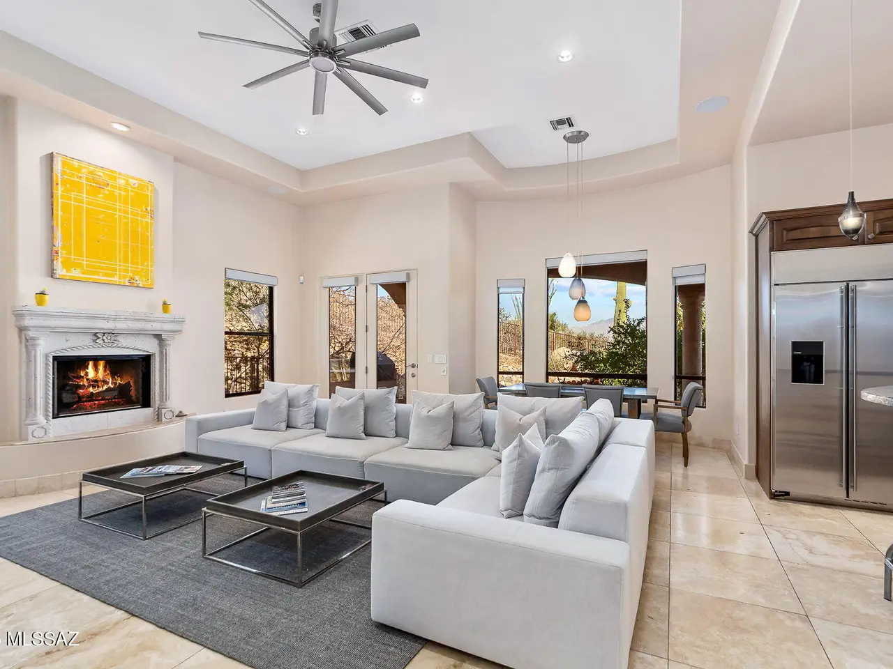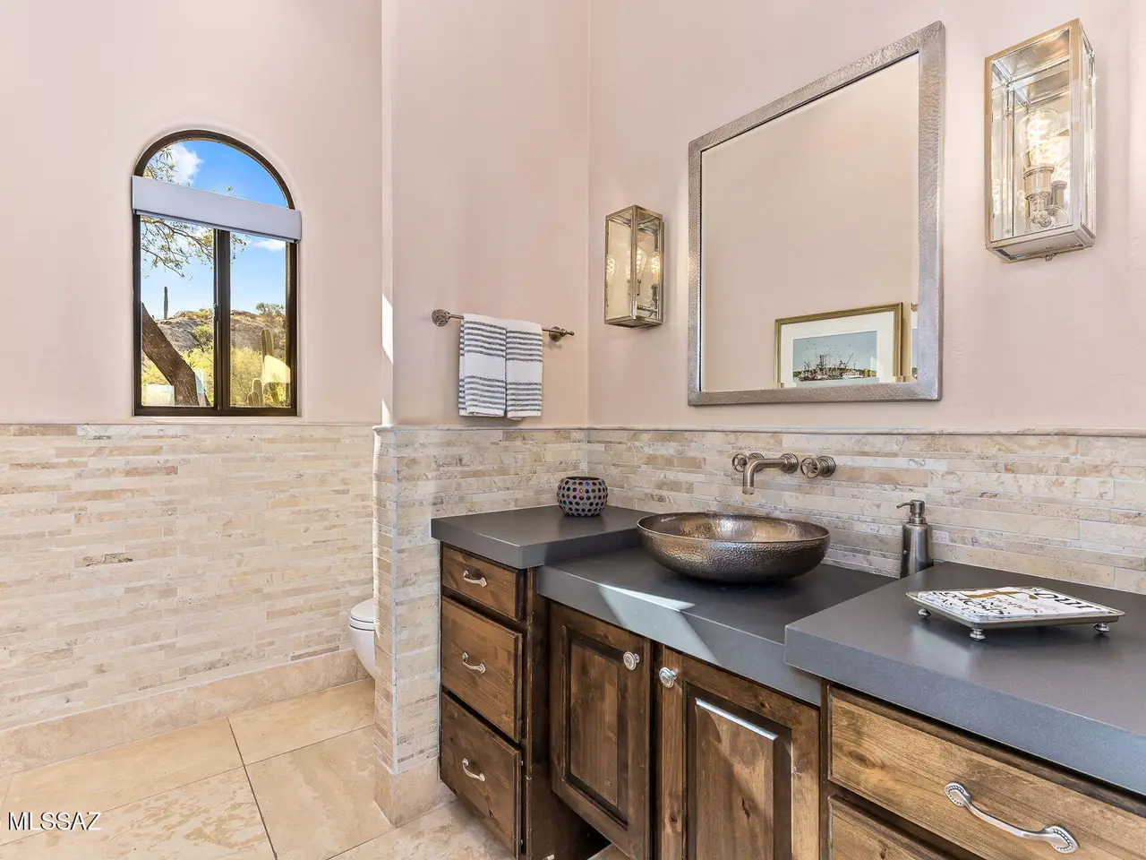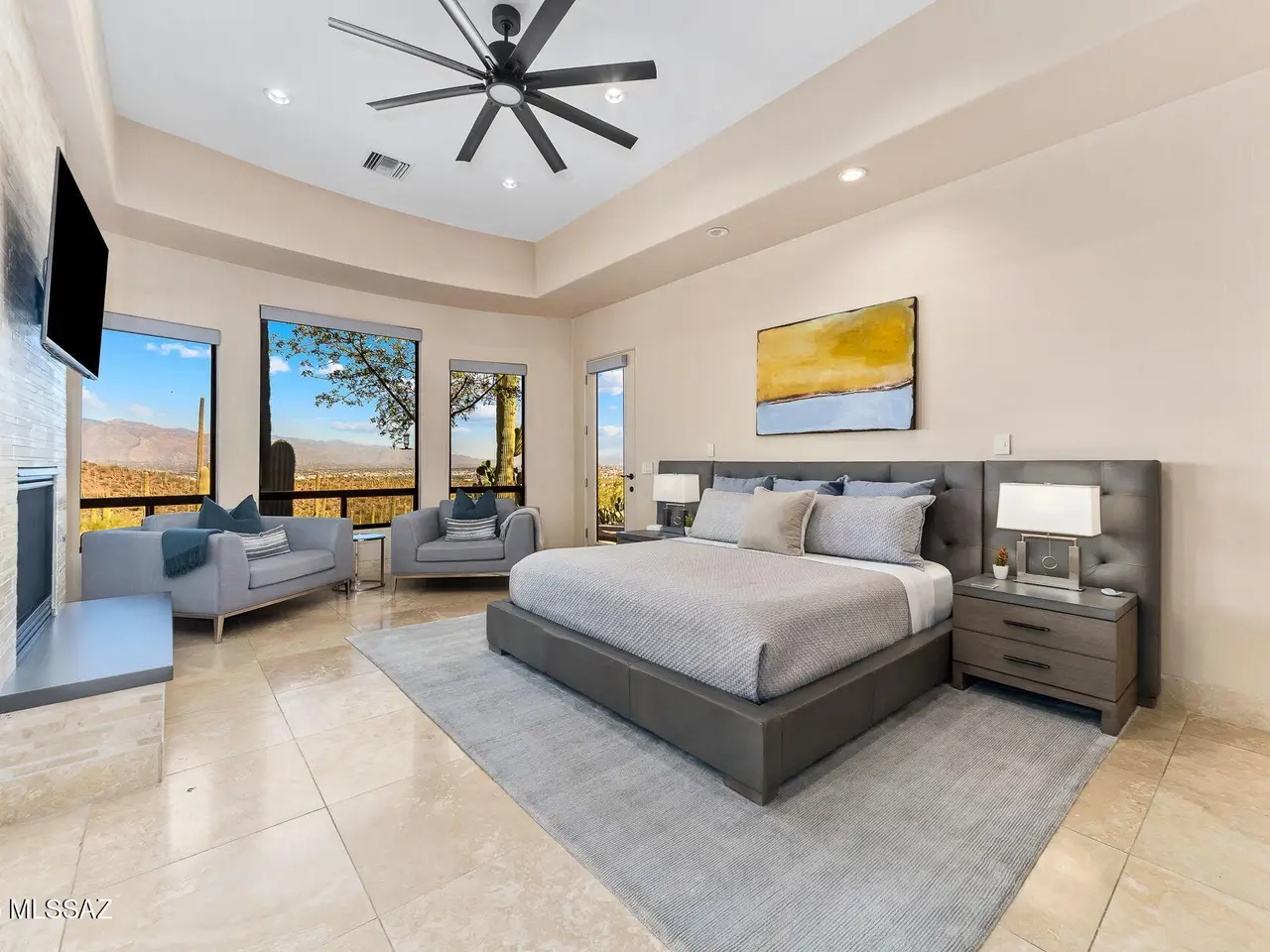 Unmatched Tucson elegance in a prestigious, gated community -- The Estates at Starr Pass -- high above the city in the Tucson Mountains. Set at the base of Saguaro National Park, this exceptional 4,995 sq. ft. luxury residence sits on 3.3 acres of pristine, saguaro-studded desert, offering unparalleled privacy and sweeping views of Tucson's skyline and mountain ranges. Blending modern Southwest design with elegant contemporary functionality, this home exudes warmth, sophistication, and comfort. Step inside to discover soaring ceilings, expansive living spaces, walls of glass, and an open floor plan ideal for entertaining. The dramatic foyer is the center of the home. Just off the foyer, the spacious living room features a formal dining area, and a coffee bar/wet bar combo, providing