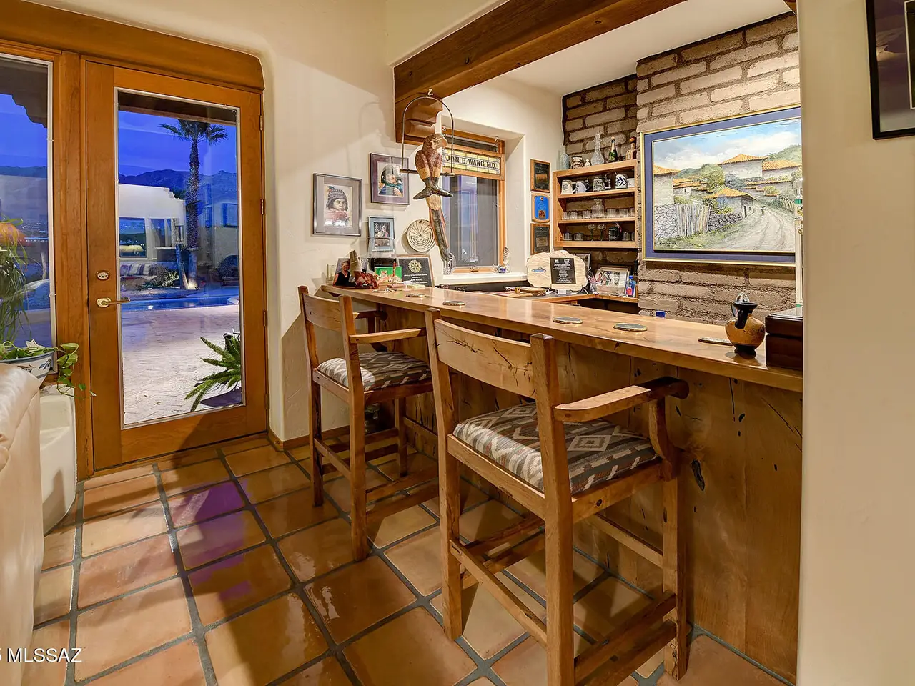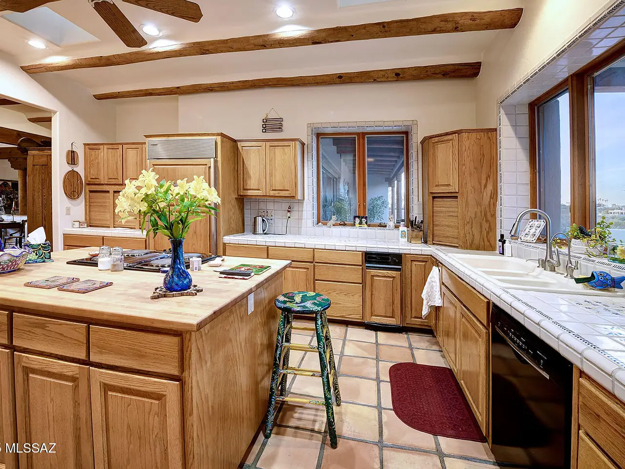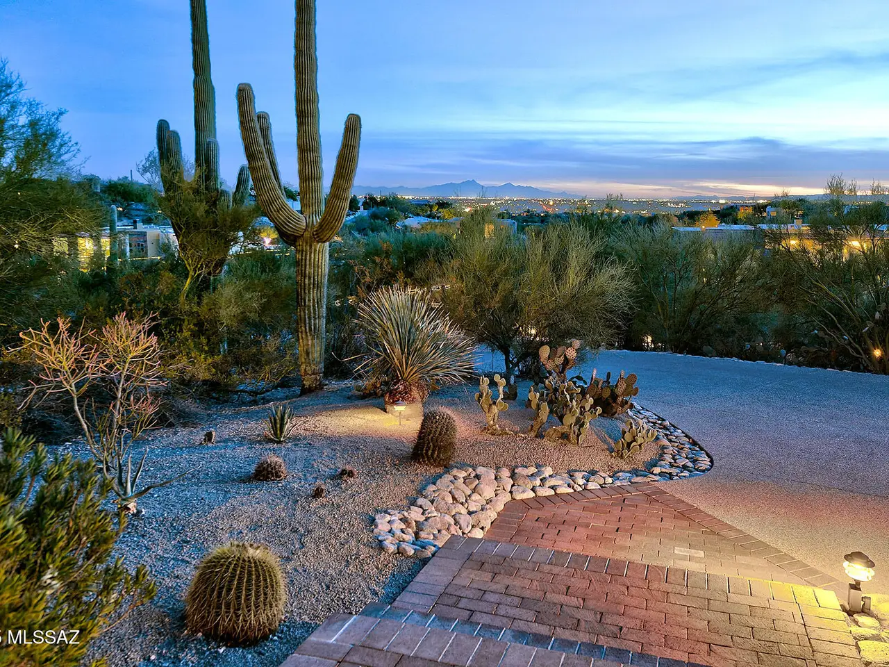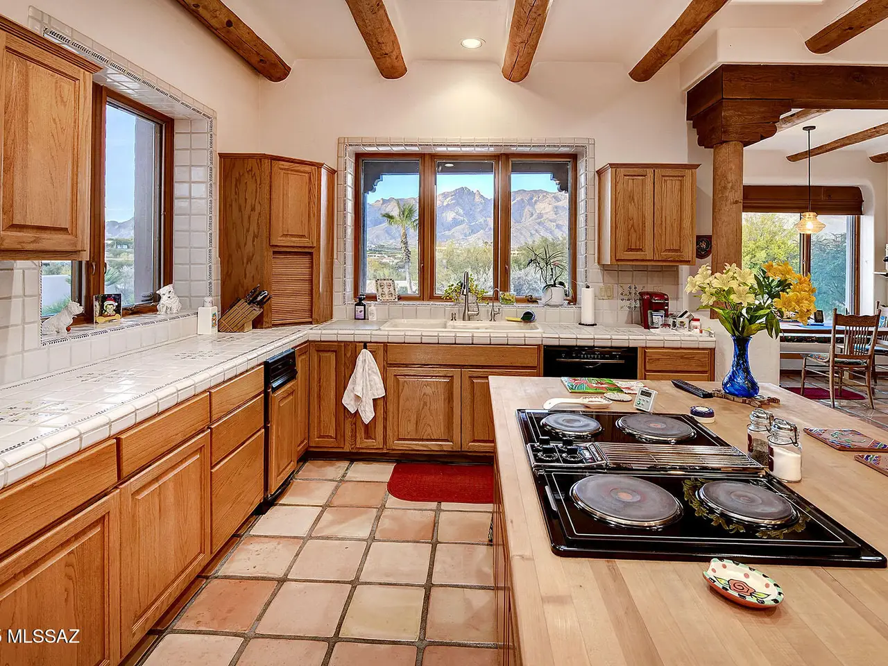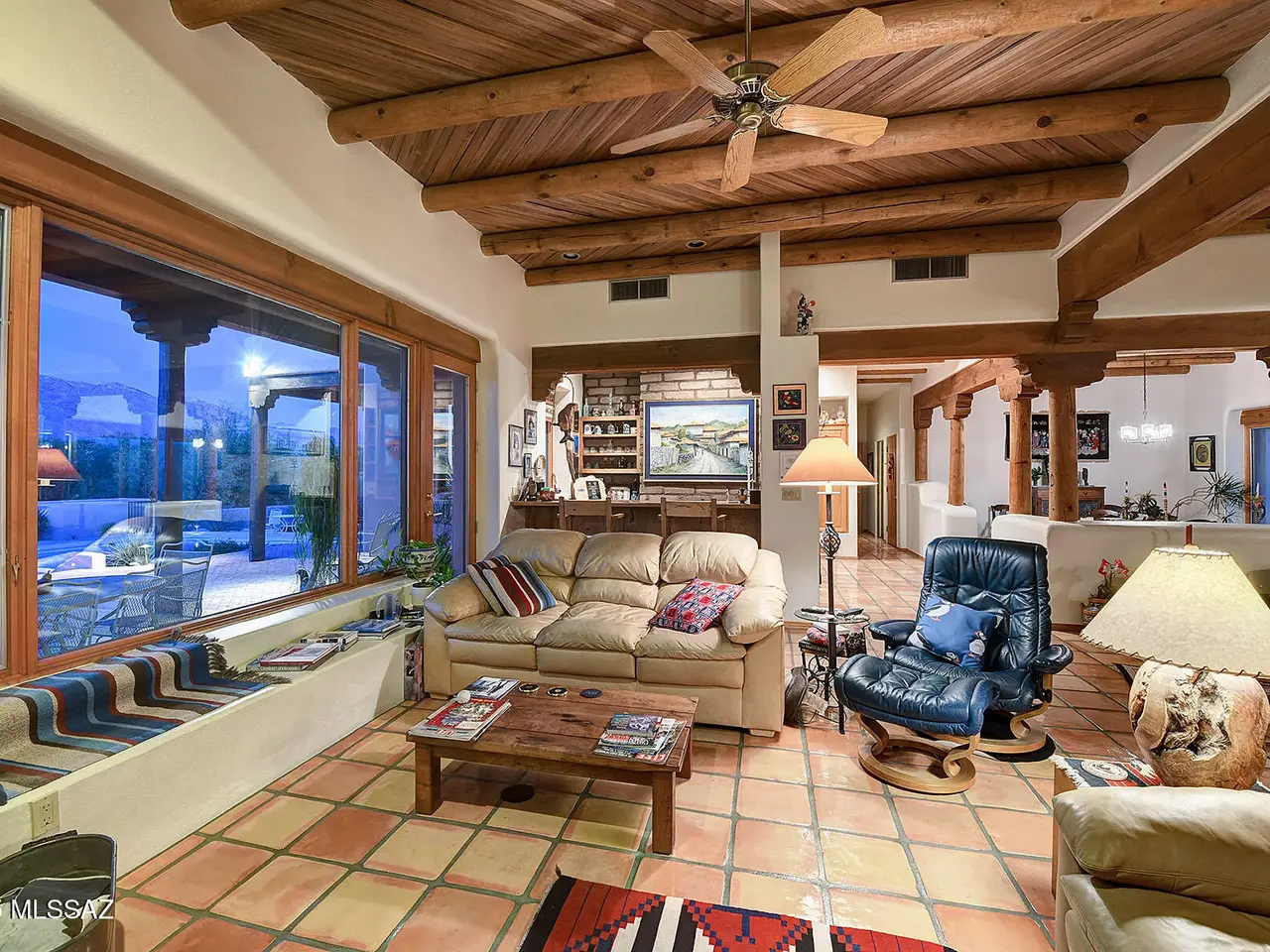 Exceptional Mike Wachs Southwestern-Style Home in Prestigious Catalina Foothills Estates #10. Nestled within the sought-after, guard-gated Catalina Foothills Estates #10, this stunning 4, 948 sq. ft. all-masonry stucco home sits on a rare double lot spanning 2.89 acres. Designed to embrace breathtaking, unobstructed views of the Catalina Mountain and iconic Finger Rock, this five-bedroom plus den retreat offers the perfect blend of luxury, character, and timeless Southwestern charm. Perched high on a hill, a circular driveway leads to an inviting courtyard entry, complete with a covered patio and captivating city views. A grand 4-inch-thick oak front door welcomes you into the spectacular great room, featuring Saltillo tile floors, viga-beamed and cedar strip ceilings with corbels, an expansive display bookshelf, charming beehive fireplace, walls of windows, and a mud adobe bar area, all thoughtfully designed to maximize the striking mountain backdrop. An adjacent formal dining room provides a charming space for entertaining. The warm and inviting Southwestern-style kitchen boasts a spacious center island, ample cabinetry, Talavera countertops, and a bright breakfast area. The gracious primary suite includes a cozy seating area, a beehive fireplace with a niche, a walk-in closet, dual vanities, and direct access to the backyard. A generous 1, 491 sq. ft. three-car garage with an RV bay provides abundant walk-in storage rooms. Outside, the park-like backyard is a true oasis, featuring an expansive rear porch, a lap pool with a waterfall, an artificial turf area, and stunning panoramic mountain views. This quality-built home is a masterpiece of craftsmanship, brimming with charm and character at every turn. A must-see to fully appreciate!