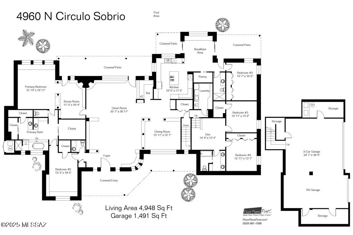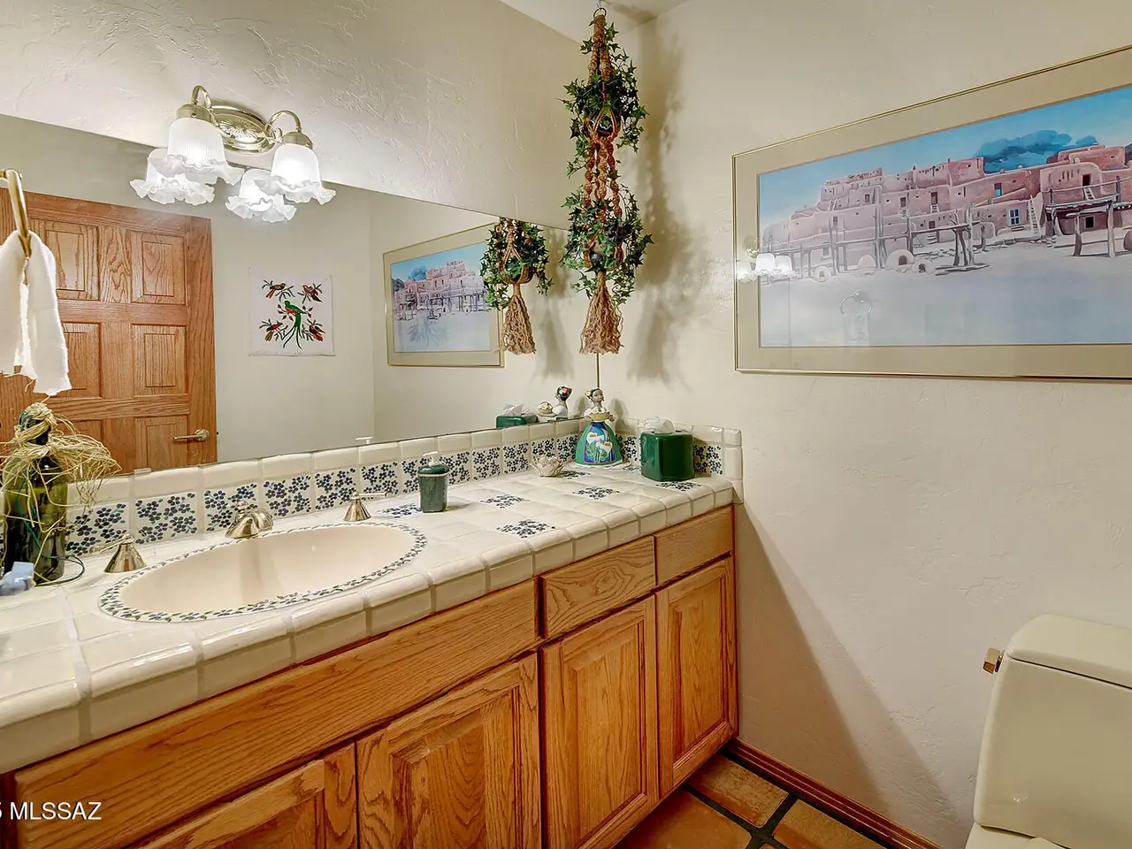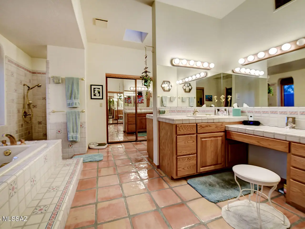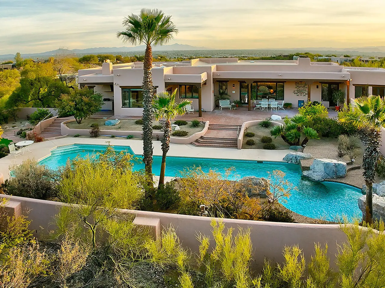 Exceptional Mike Wachs Southwestern-Style Home in Prestigious Catalina Foothills Estates #10. Nestled within the sought-after, guard-gated Catalina Foothills Estates #10, this stunning 4, 948 sq. ft. all-masonry stucco home sits on a rare double lot spanning 2.89 acres. Designed to embrace breathtaking, unobstructed views of the Catalina Mountain and iconic Finger Rock, this five-bedroom plus den retreat offers the perfect blend of luxury, character, and timeless Southwestern charm. Perched high on a hill, a circular driveway leads to an inviting courtyard entry, complete with a covered patio and captivating city views. A grand 4-inch-thick oak front door welcomes you into the spectacular great room, featuring Saltillo tile floors, viga-beamed and cedar strip ceilings with corbels, an expansive display bookshelf, charming beehive fireplace, walls of windows, and a mud adobe bar area, all thoughtfully designed to maximize the striking mountain backdrop. An adjacent formal dining room provides a charming space for entertaining. The warm and inviting Southwestern-style kitchen boasts a spacious center island, ample cabinetry, Talavera countertops, and a bright breakfast area. The gracious primary suite includes a cozy seating area, a beehive fireplace with a niche, a walk-in closet, dual vanities, and direct access to the backyard. A generous 1, 491 sq. ft. three-car garage with an RV bay provides abundant walk-in storage rooms. Outside, the park-like backyard is a true oasis, featuring an expansive rear porch, a lap pool with a waterfall, an artificial turf area, and stunning panoramic mountain views. This quality-built home is a masterpiece of craftsmanship, brimming with charm and character at every turn. A must-see to fully appreciate!