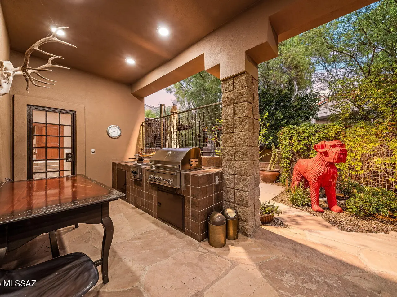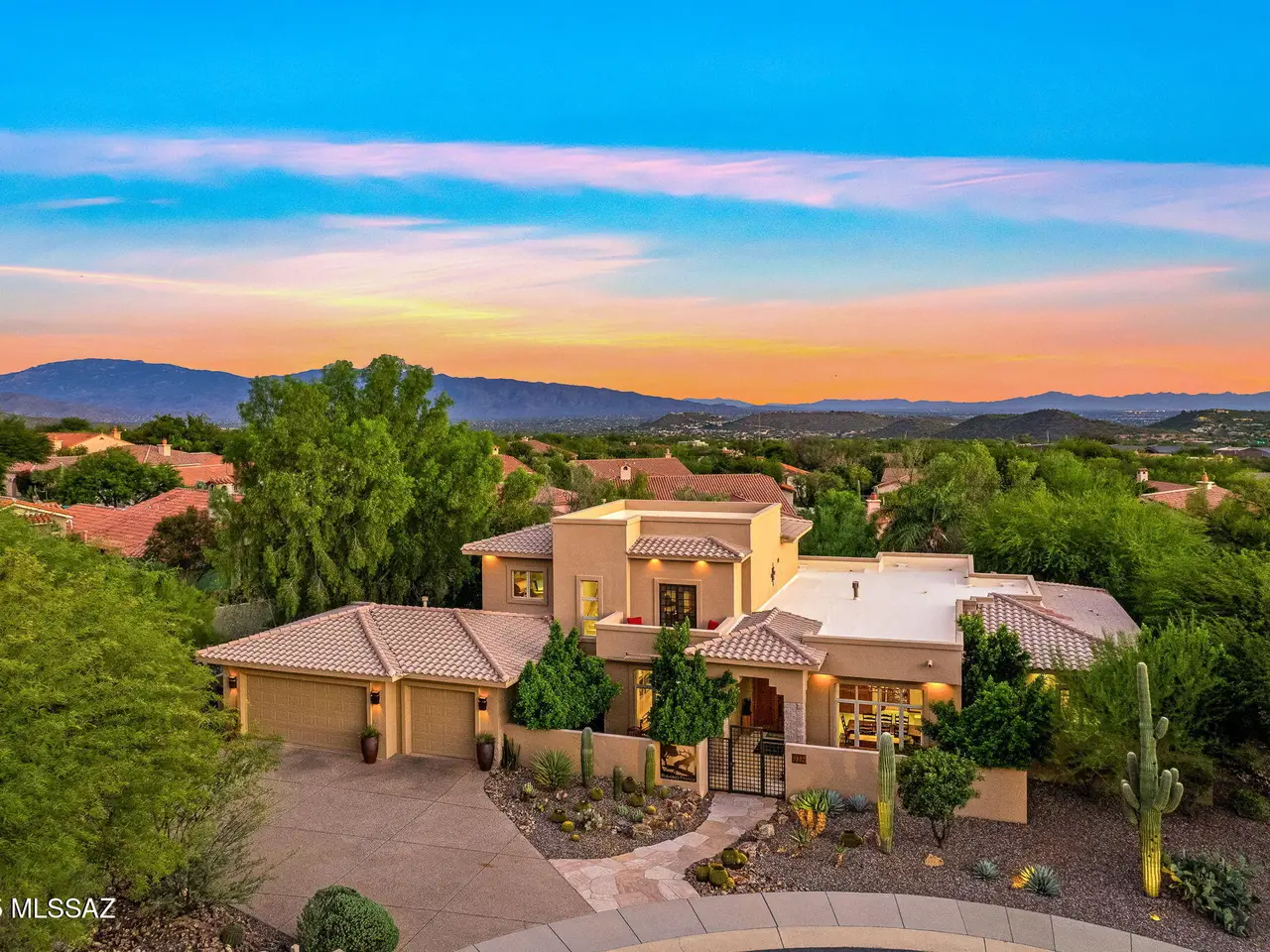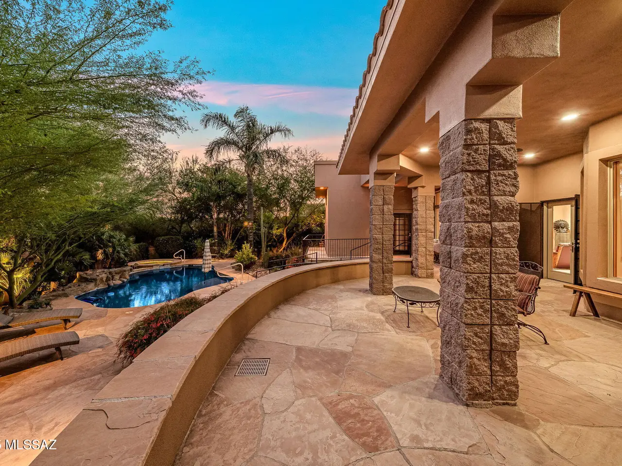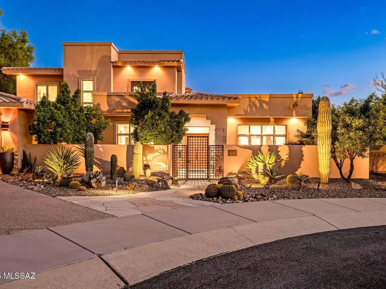 Spectacular remodeled Ventana Country Club Estates home boasts 5 bed, 4 bath + office/den with highest quality upgrades & incredible grounds designed by renowned landscape architect John Stropko (New Desert Gallery). Luxurious 4,947 sq.ft. home is a masterpiece of design & craftsmanship. Enter through the custom flagstone courtyard you'll be greeted by lush vegetation & exquisite custom metal fencing, creating a serene ambiance with multiple seating areas & bespoke stonework. Step through oversized entry into foyer that introduces soaring ceilings, a spacious living room & an elegant dining room all adorned with custom lighting. Chef's kitchen is perfection, featuring expansive granite counter space, rich wood cabinetry, double ovens, gas range, & sleek stainless steel appliances.See MORE