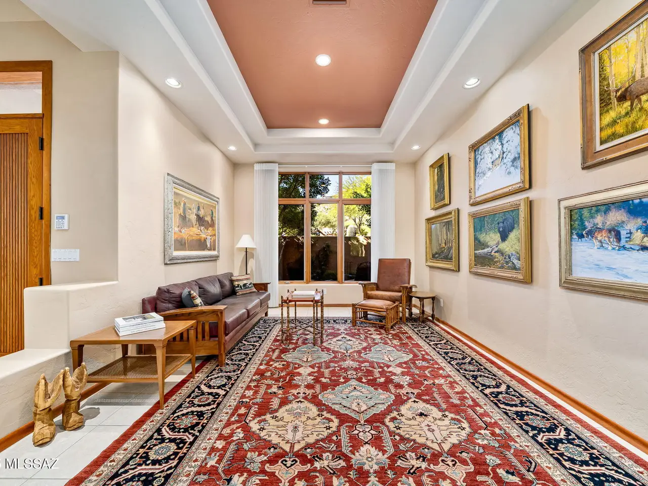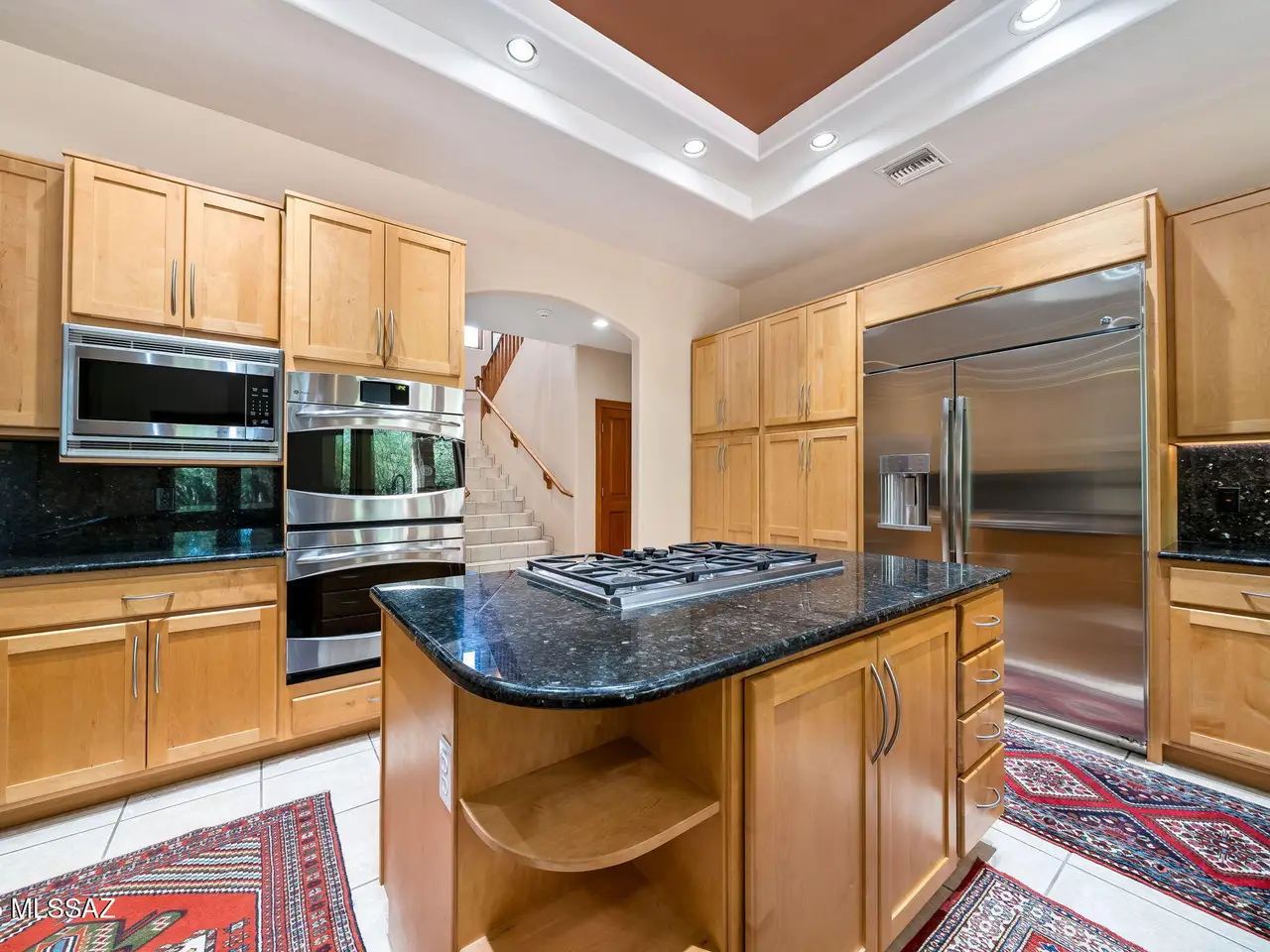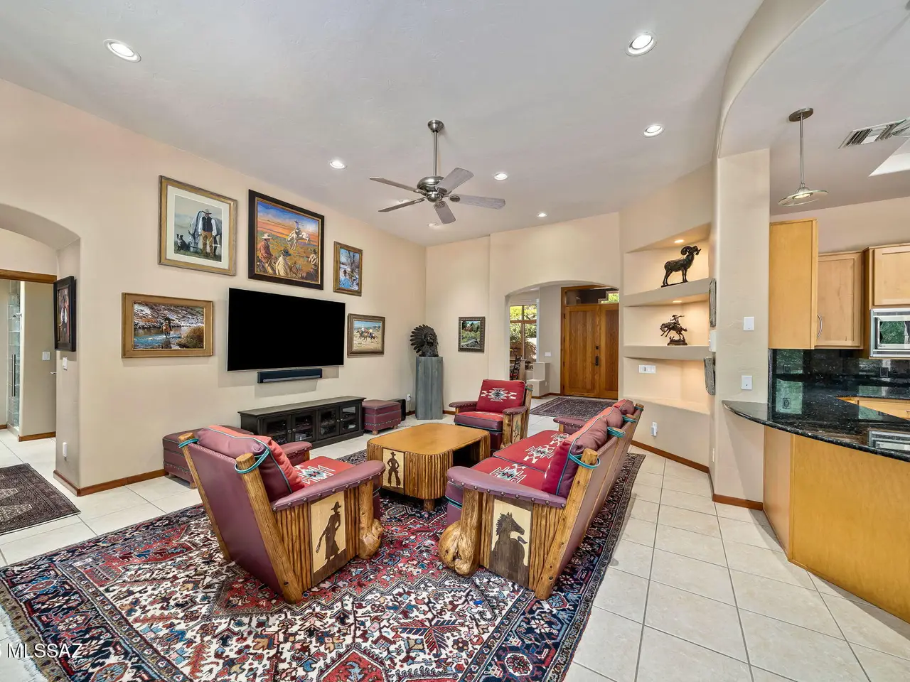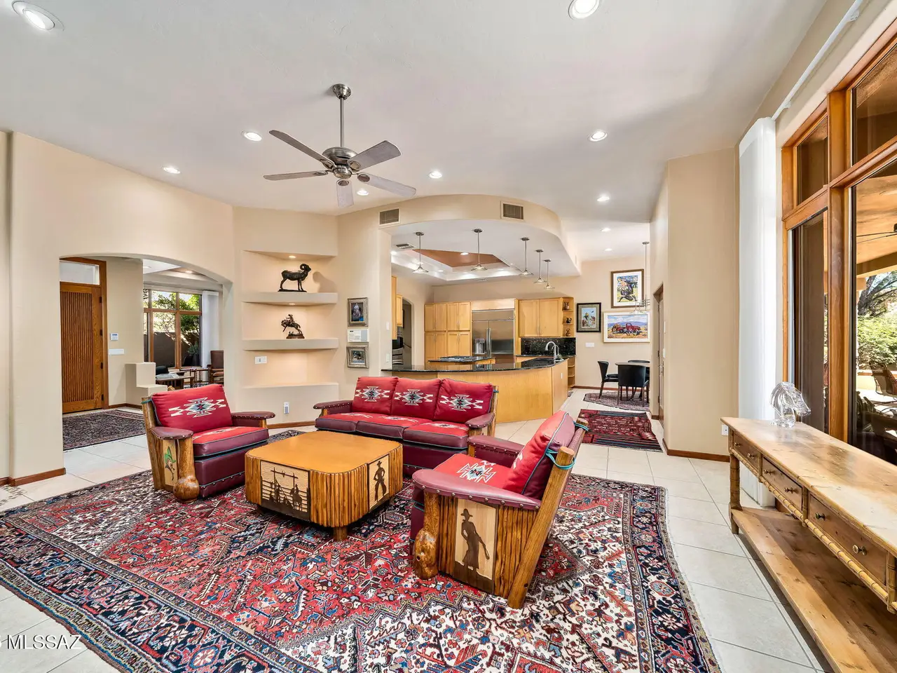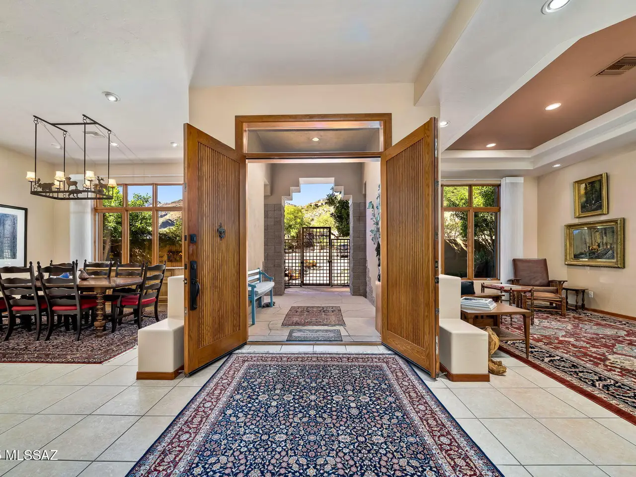 Spectacular remodeled Ventana Country Club Estates home boasts 5 bed, 4 bath + office/den with highest quality upgrades & incredible grounds designed by renowned landscape architect John Stropko (New Desert Gallery). Luxurious 4,947 sq.ft. home is a masterpiece of design & craftsmanship. Enter through the custom flagstone courtyard you'll be greeted by lush vegetation & exquisite custom metal fencing, creating a serene ambiance with multiple seating areas & bespoke stonework. Step through oversized entry into foyer that introduces soaring ceilings, a spacious living room & an elegant dining room all adorned with custom lighting. Chef's kitchen is perfection, featuring expansive granite counter space, rich wood cabinetry, double ovens, gas range, & sleek stainless steel appliances.See MORE