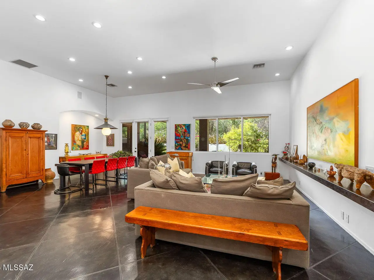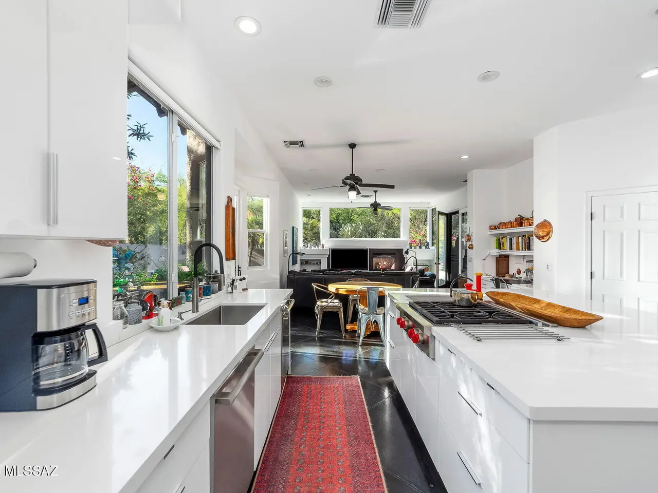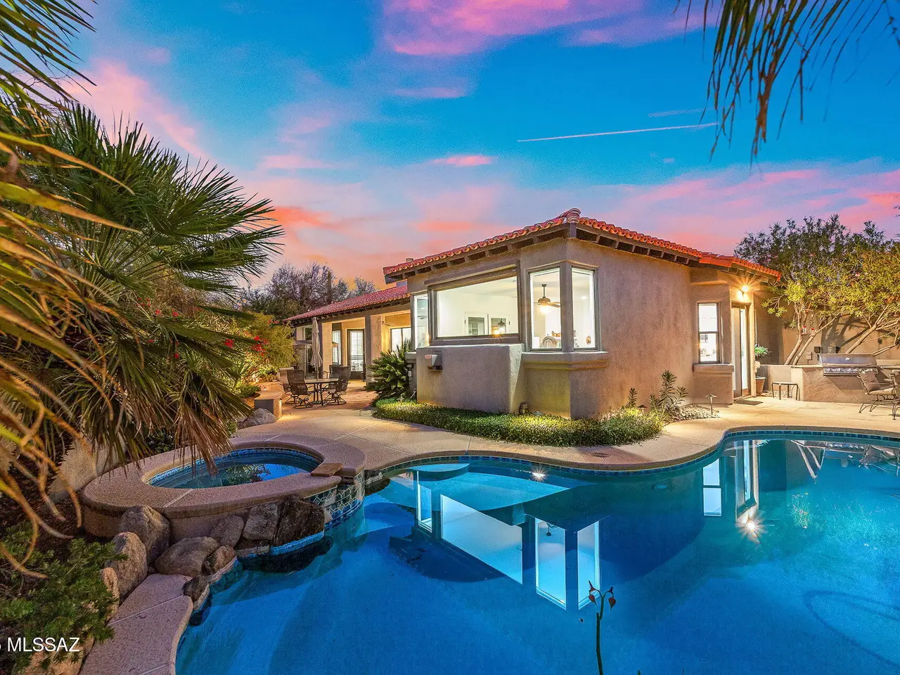 Located in desirable gated Ventana CC Est, this 4BR/3BA remodeled home with timeless designer touches, blends modern elegance with the beauty of the desert on a lush .83-acre lot. The north facing private backyard offers an outdoor living area with an expansive covered flagstone patio, sparkling pool/spa & built- in BBQ. The eat-in kitchen has an extra-large island, Silestone countertops & custom cabinets with an abundance of storage. The stainless steel appliances include a Wolf range, two Thermidor dishwashers, double built-in Electrolux ovens & a Viking microwave. The family room is adjacent to the kitchen & includes a wall of built-ins, a gas fireplace & expansive windows capturing desert & mountain views. The gracious living room & dining room have French doors ...see more tab