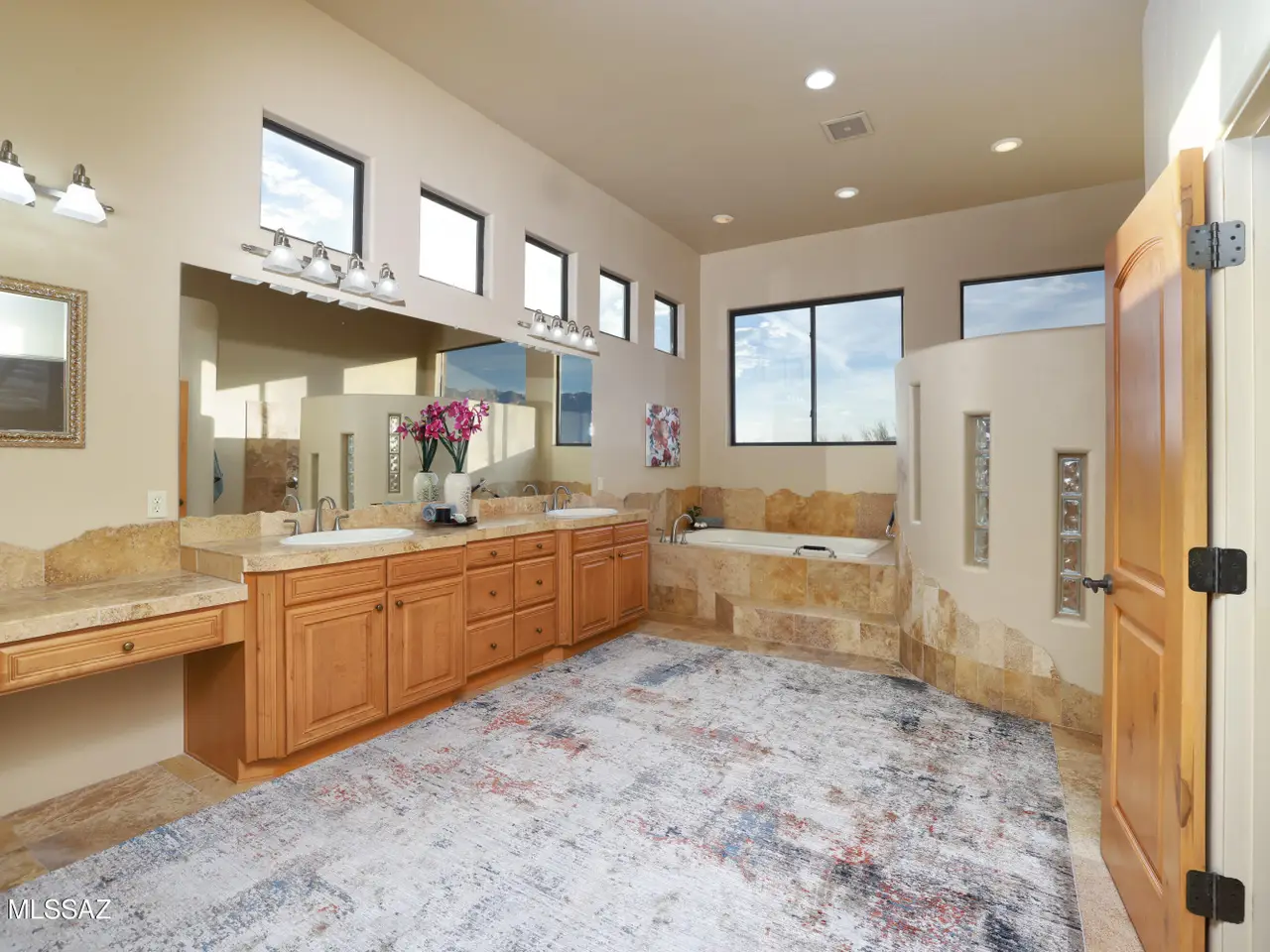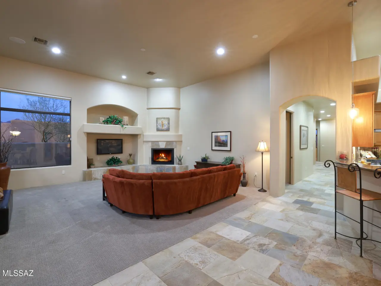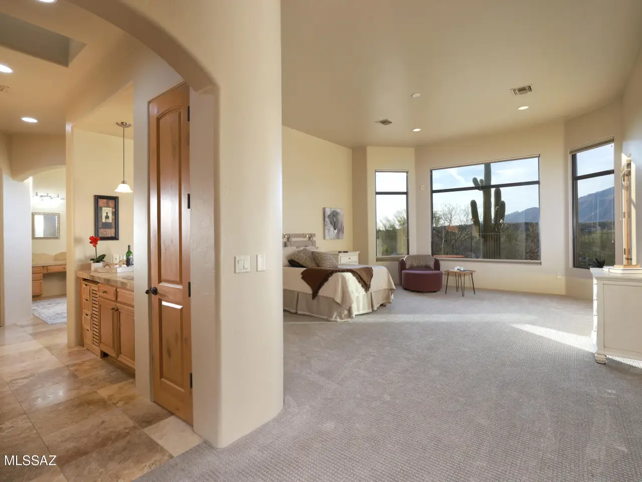 Perched atop the exclusive double-gated Sabino Mountain Community, this 4,641 sqft luxury estate offers an unparalleled desert living experience with breathtaking, unobstructed mountain views. Designed for both comfort and sophistication, this 4-bedroom, 4.5-bathroom masterpiece features oversized windows, a bright, open-concept layout, and soaring ceilings, filling the home with natural light. The expansive chef's kitchen is a culinary dream, boasting granite countertops, high-end appliances, and an oversized island--ideal for entertaining. The huge primary suite is a serene retreat, complete with a spa-like bathroom featuring a jet tub, double shower, and elegant finishes. Architectural details such as graceful arches, curves, and custom niches add to the home's modern elegance.