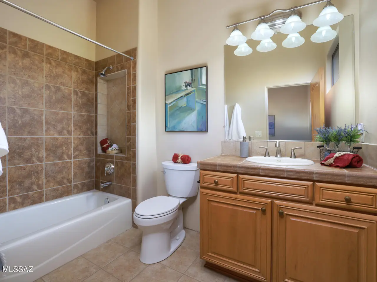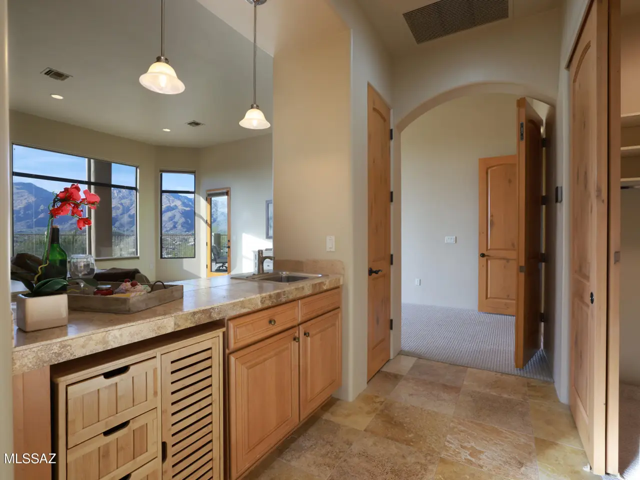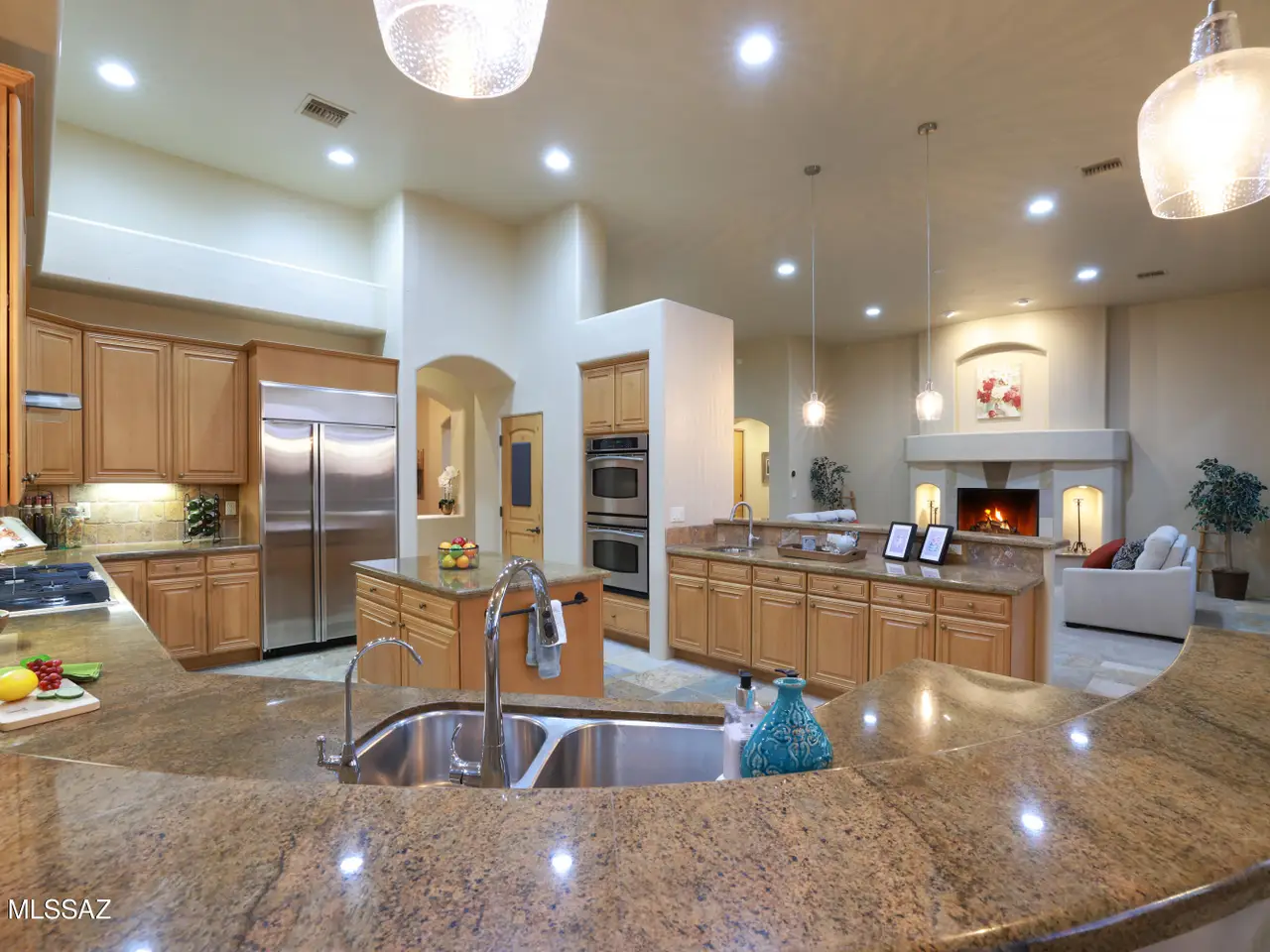 Perched atop the exclusive double-gated Sabino Mountain Community, this 4,641 sqft luxury estate offers an unparalleled desert living experience with breathtaking, unobstructed mountain views. Designed for both comfort and sophistication, this 4-bedroom, 4.5-bathroom masterpiece features oversized windows, a bright, open-concept layout, and soaring ceilings, filling the home with natural light. The expansive chef's kitchen is a culinary dream, boasting granite countertops, high-end appliances, and an oversized island--ideal for entertaining. The huge primary suite is a serene retreat, complete with a spa-like bathroom featuring a jet tub, double shower, and elegant finishes. Architectural details such as graceful arches, curves, and custom niches add to the home's modern elegance.