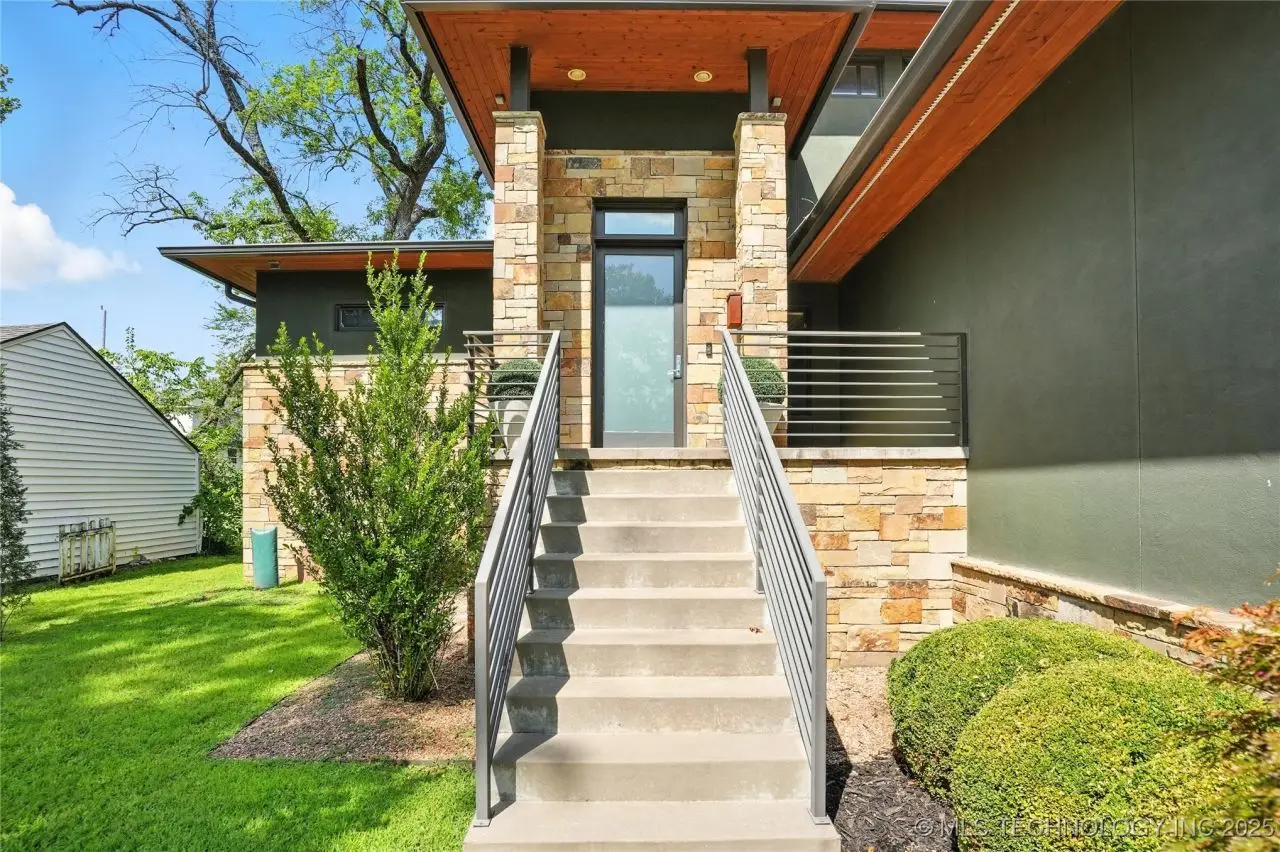 Nestled in historic Maple Ridge, this stunning Midtown home offers the perfect blend of modern chic design and elegance. Beautifully updated throughout by Upside Interiors, this home boasts 4 bedrooms, 3.5 baths & a 2-car garage. The cozy family room opens into the dining area & chefs kitchen designed for both functionality and style featuring a mosaic tile full-height backsplash, designer pendant lighting, large granite island with bar seating, prep sink, stainless steel appliances & coffee bar. The luxurious, moody Primary Suite features pattern tile flooring, custom drapes, and rich green walls. Ensuite Bath with freestanding soaking tub, oversized tiled rain shower, double vanities & designer light fixtures. Large walk-in closet with built-ins and seasonal pull downs. The laundry room features a dog wash station, walk-in closet for storage and side access to backyard. Upstairs includes 3 spacious bedrooms, two share a Jack & Jill Bath, the third has a private Ensuite Bath. Relax on the covered outdoor patio overlooking the private backyard. One block to The Gathering Place & Riverside and just minutes away from dining and shopping on Brookside and Utica Square. Unbeatable location with elegant designs - don't miss out on this amazing Midtown gem!