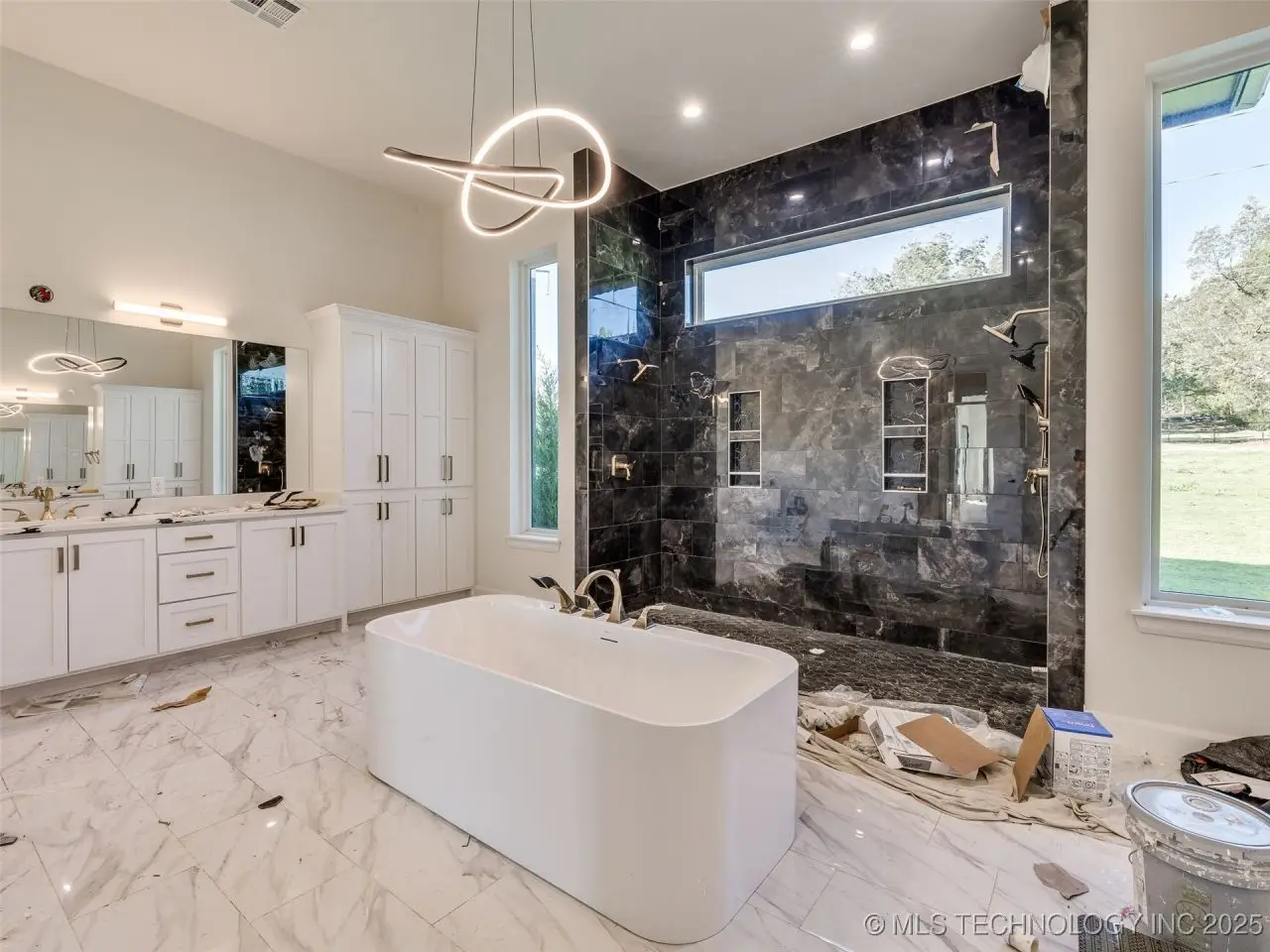 True one of a kind custom on large one acre lot in West Tulsa. This home has five bedrooms, (two down, three up)five full & one half baths, flex room and four car garage. No expenses were spared; 25 foot ceilings, oversized pantry, and designer front door that is a showstopper. Custom countertops and professional grade appliances in kitchen, extensive wood floors, spray foam insulation, LED lights, Low-E windows, and more. Oversized master with large walk-in closet & spa like bath. Additional features include second level true In-law suite with private bathroom, kitchenette, and room for a private staircase or elevator to/from the garage. Enjoy a quiet evening in your beautiful backyard. Additional 10 acres in back available for purchase. Located just west of Tulsa Hills, quick access to Hwy 75, in desired Jenks schools. Home to be completed within 90 days.