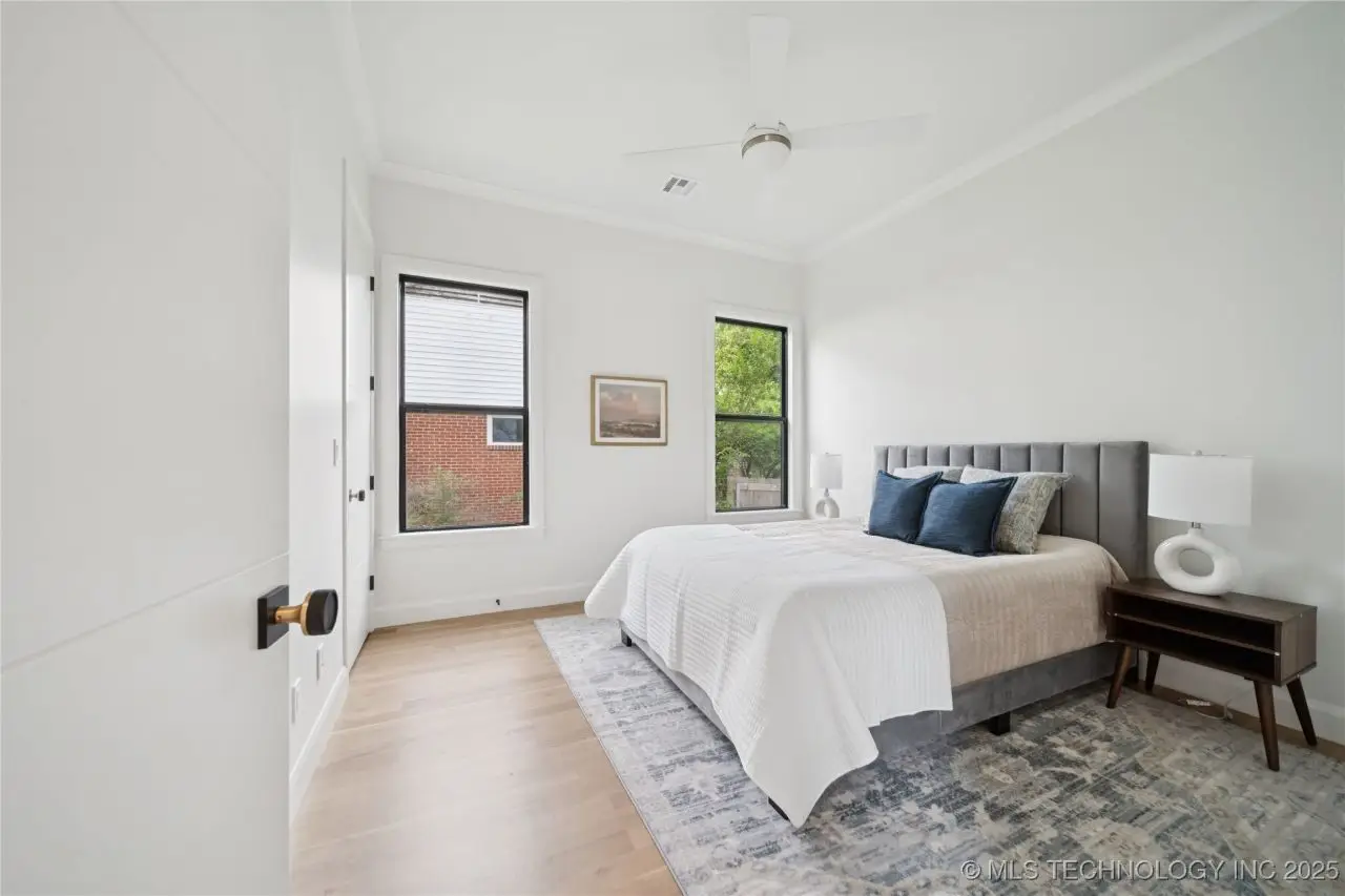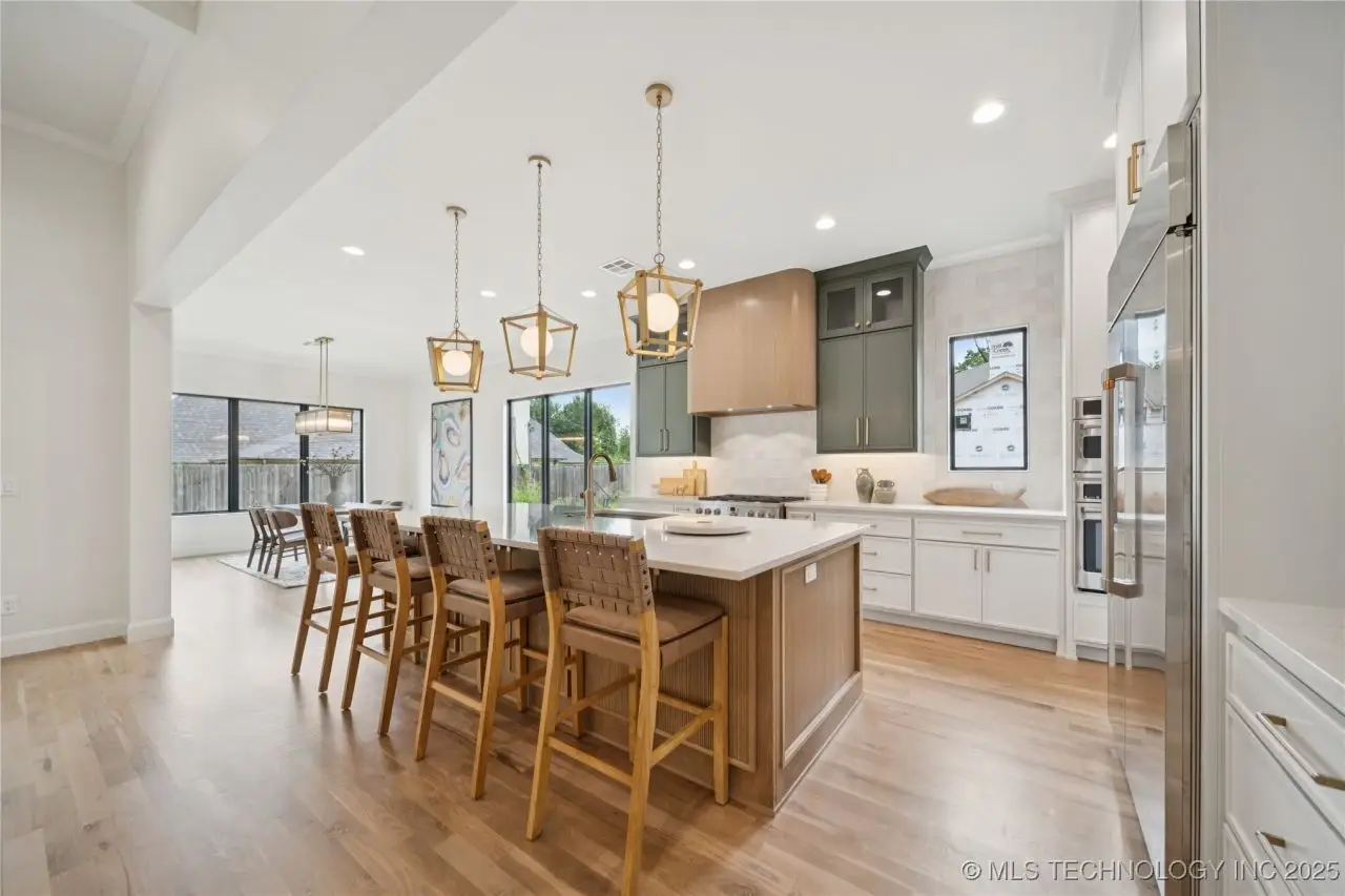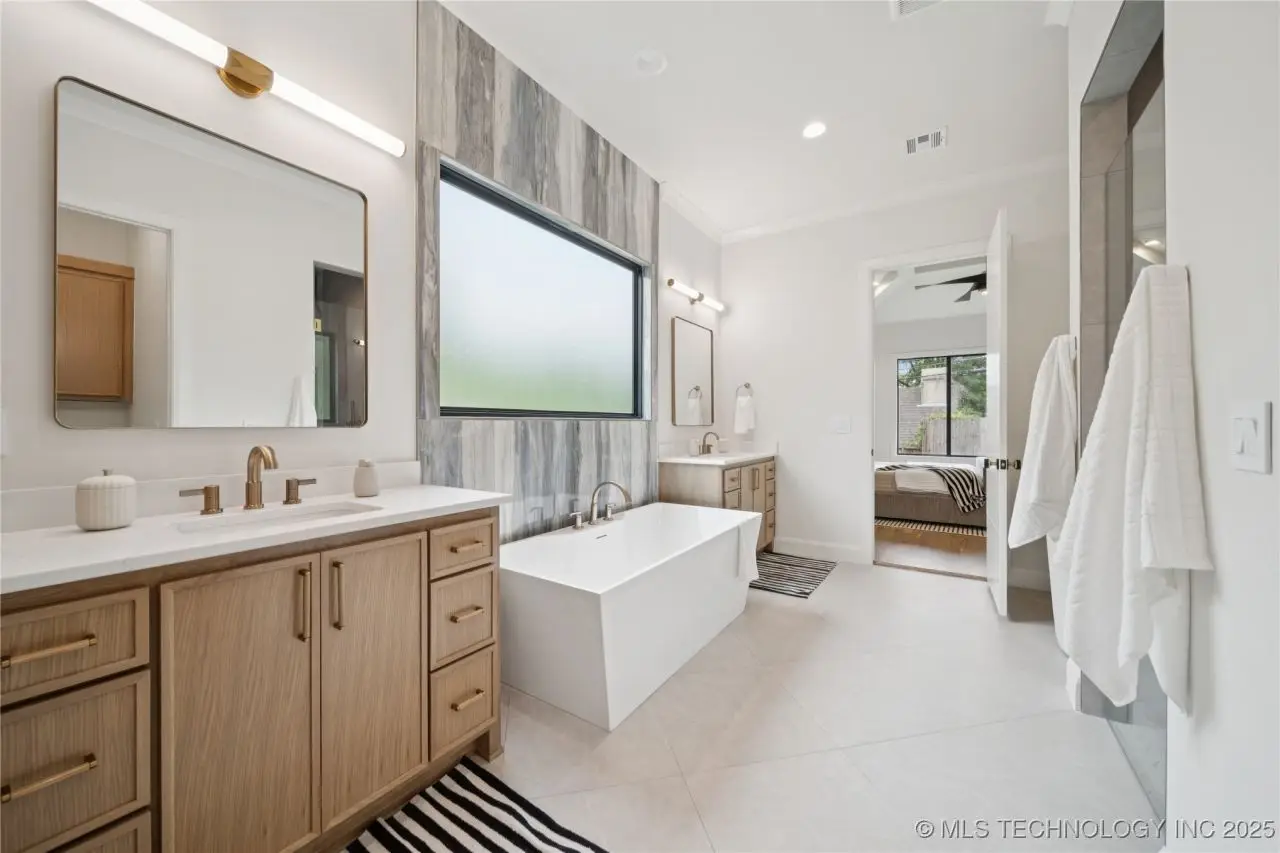 Welcome to this stunning new construction home nestled in the heart of Midtown Tulsa. Thoughtfully designed to maximize both style and functionality, this custom-built residence offers a seamless blend of modern elegance and timeless craftsmanship. Step inside to be greeted by a floating staircase in the entry, a striking architectural feature that sets the tone for the home's contemporary design. Throughout the home, you'll find real hardwood floors, adding warmth and sophistication to every space. The main floor boasts a luxurious primary suite with a spa-like bath, along with a private guest suite, providing convenience and privacy for visitors. Upstairs, three additional bedrooms and two full bathrooms accompany a flex space, ready to be tailored to your needs - whether it's a home office, a playroom, or a media lounge. The gourmet kitchen is a chef's dream, featuring custom cabinetry with soft-close drawers, high-end appliances, and designer finishes that elevate the space. Built with energy efficiency in mind, the home includes spray foam insulation and a tankless hot water system for optimal comfort and sustainability. Agent related to Seller.