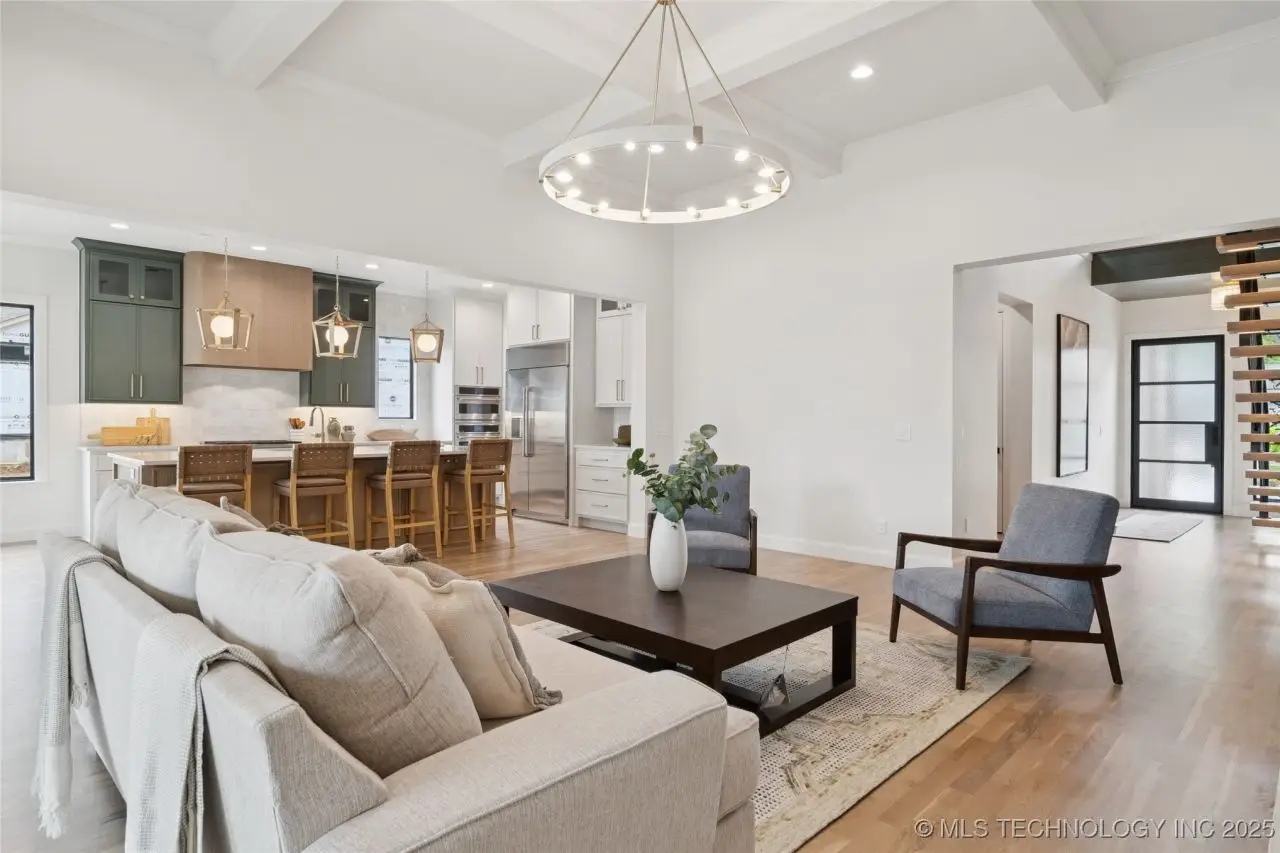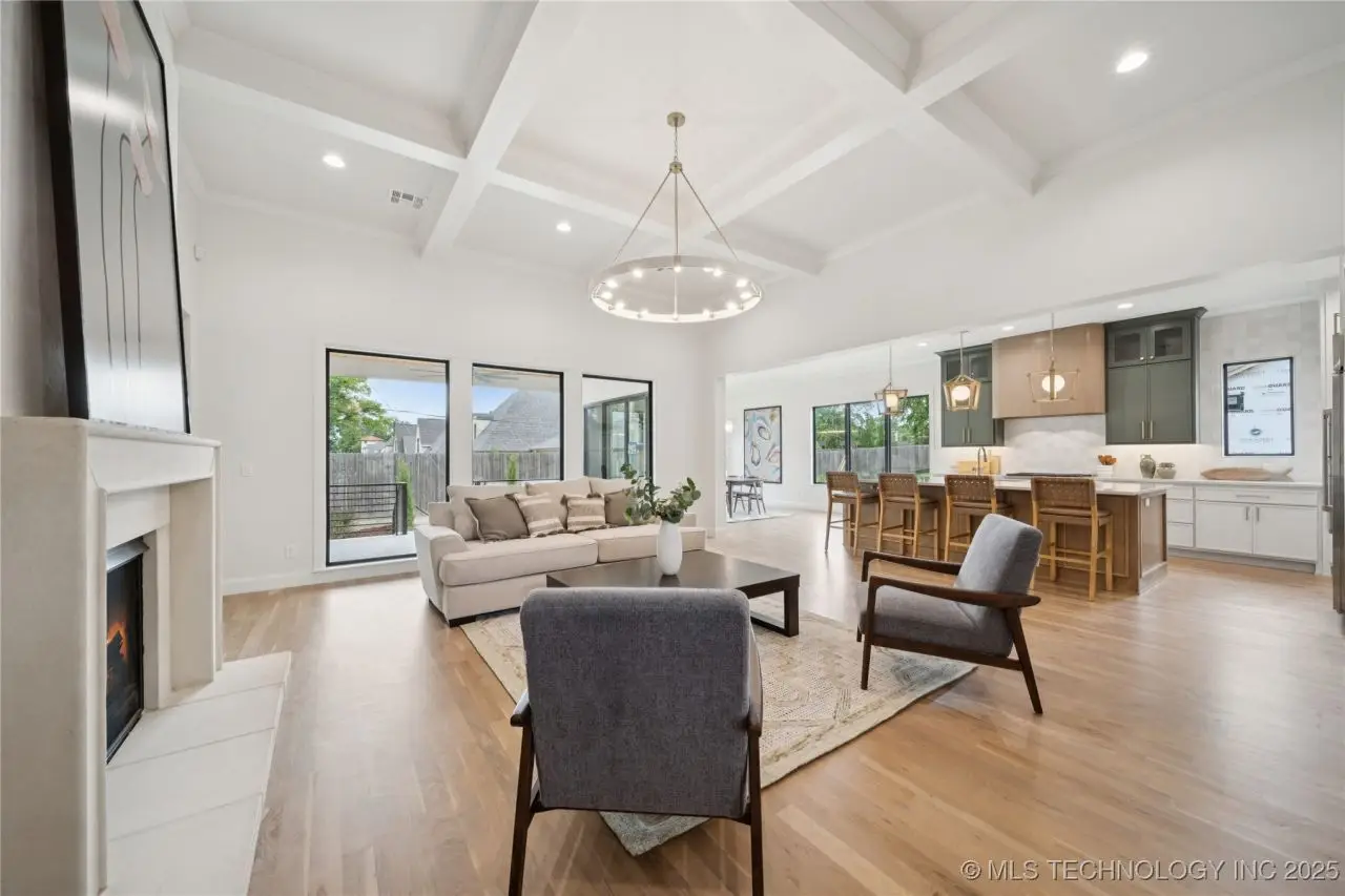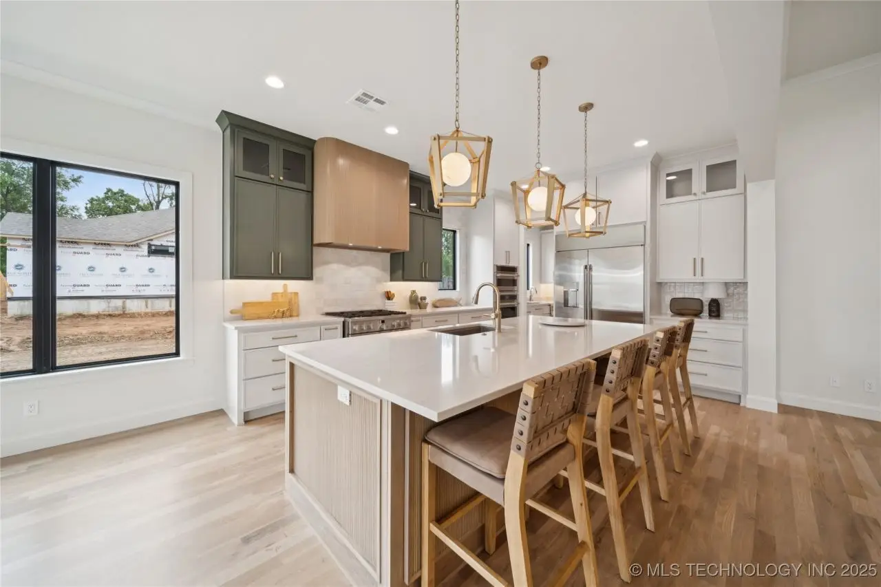 Welcome to this stunning new construction home nestled in the heart of Midtown Tulsa. Thoughtfully designed to maximize both style and functionality, this custom-built residence offers a seamless blend of modern elegance and timeless craftsmanship. Step inside to be greeted by a floating staircase in the entry, a striking architectural feature that sets the tone for the home's contemporary design. Throughout the home, you'll find real hardwood floors, adding warmth and sophistication to every space. The main floor boasts a luxurious primary suite with a spa-like bath, along with a private guest suite, providing convenience and privacy for visitors. Upstairs, three additional bedrooms and two full bathrooms accompany a flex space, ready to be tailored to your needs - whether it's a home office, a playroom, or a media lounge. The gourmet kitchen is a chef's dream, featuring custom cabinetry with soft-close drawers, high-end appliances, and designer finishes that elevate the space. Built with energy efficiency in mind, the home includes spray foam insulation and a tankless hot water system for optimal comfort and sustainability. Agent related to Seller.