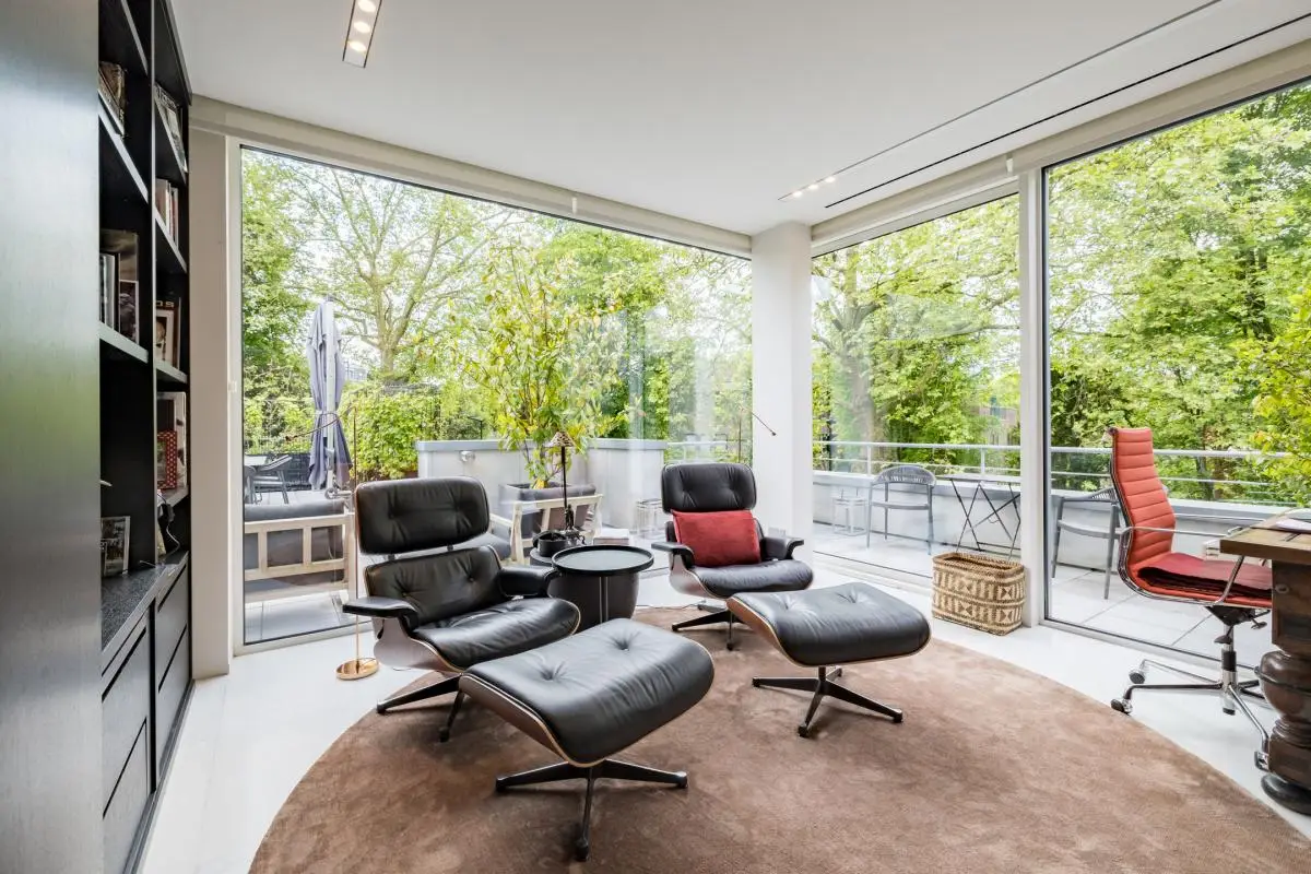 In the sought-after Observatoire district, this 234 m² penthouse, located on the top floor of a residence designed by Marc Corbiau (1999), is exceptionally bright and in perfect harmony with nature. Its light-filled reception rooms open onto vast 150 m² terraces, offering uninterrupted views over the lush surroundings. The fully-equipped kitchen fits perfectly into this elegant, uncluttered space. The Apartment includes a bedroom with en suite bathroom, a study and the possibility of creating a second bedroom with an additional shower room. This unique property also benefits from three private garages and individual heating. EPC D