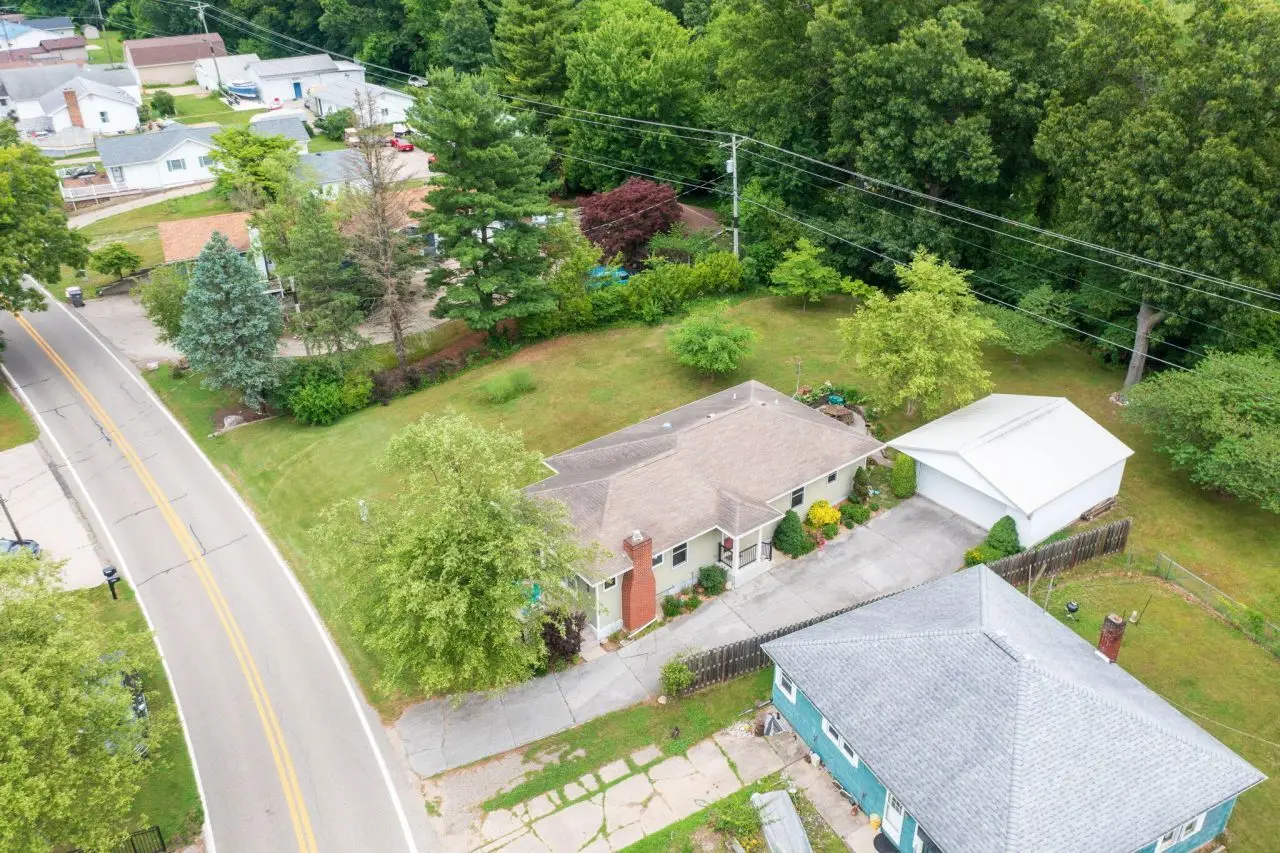 THIS TIDY AND WELL-MAINTAINED LAKE PROPERTY IS COMPRISED OF 4 TOTAL LOTS ON HIGHLY SOUGHT AFTER BALDWIN LAKE. THE HOME SITS ON ONE LOT WITH AN OPEN LAKEFRONT LOT ACROSS THE ROAD WITH UNOBSTRUCTED LAKE VIEWS AND 2 LARGE ADJACENT LOTS ON THE SIDE AND BACK. The home features an elevated kitchen with Brazilian Walnut floors and overlooks the dining and living area with a gas fireplace insert. In addition, there is a second living area on the upper level. The PRIMARY BEDROOM has a full bath and walk-in closet plus there is a second bedroom, laundry room and second bathroom. The house also has a clean, dry basement and 200 amp service. Enjoy sitting on the outside composite deck with a rollout awning or grilling on the backyard patio. Baldwin Lake is all sports, 45 minutes to Notre Dame and 2 and a half hours from Chicago.