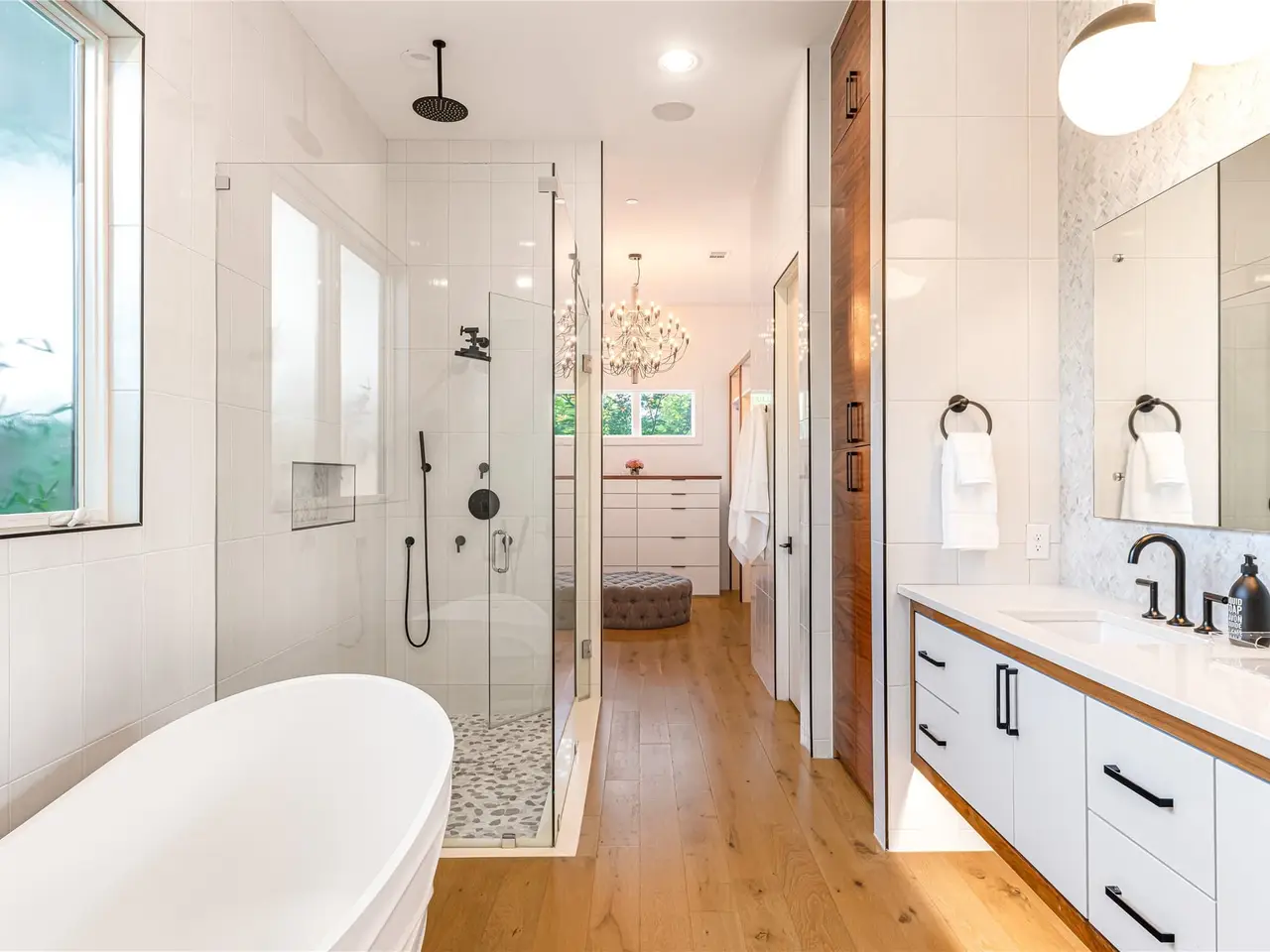 - 11' ceilings, 6-in white oak hardwoods & Jeld-Wen wood-clad windows