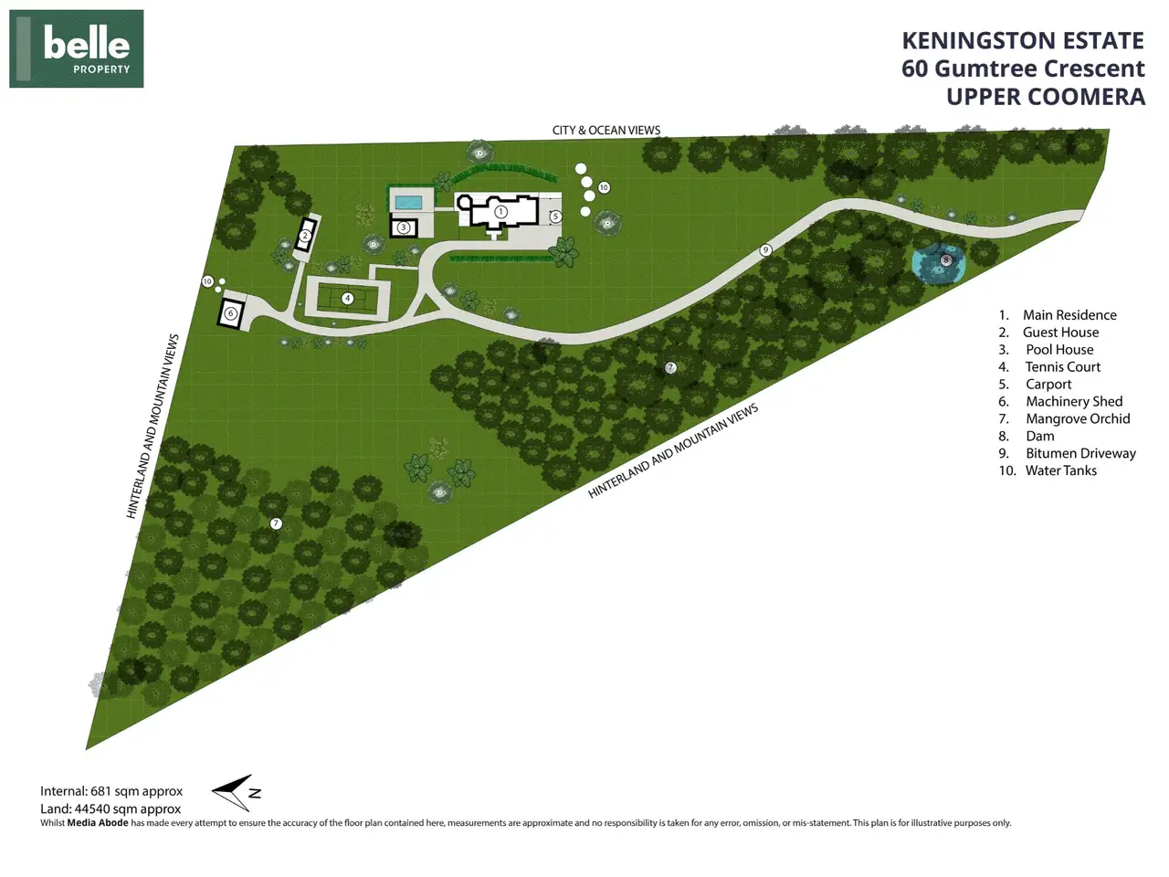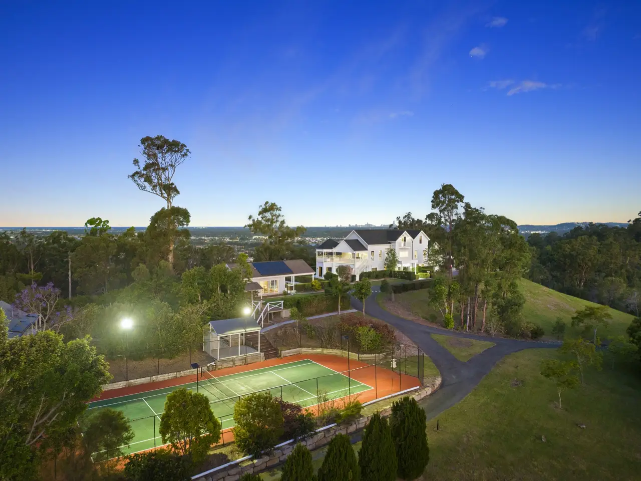 This magnificent and unparalleled residence really defies description. It's idyllic country setting , atop a hill with views over the Gold Coast and to the mountains, the enormous main residence, self-contained granny-flat, flood-lit tennis court and swimming pool with it's own pool house on 11 acres of beautiful land with DA approval for 4 more homes, 300 mango tree orchard, a separate granny flat and storage sheds, needs to viewed to fully appreciate what a gem Kensington Estate is and what marvelous investment opportunities it presents. Situated in The Gold Coast hinterland, this incredible country estate is conveniently located close to the M1 motorway, 55 minutes to Brisbane and both major international airports, Westfield shopping centers, local private and public schools, the famous theme parks, 3 championship golf courses and several local marinas. Drive through the majestic estate gates up to the impressive main residence and be prepared to be amazed! The 3 level, 6-bedroom mansion with a lift to every level, features a grand entrance with beautiful timber flooring, bifurcated stairway with storage cupboards beneath, a 450 bottle wine cellar and raked ceilings. Also on the ground floor is a home office with wooden floors, integrated bookshelves and sliding doors out to the lovely patio. The open plan lounge room, dining area and chef's kitchen overlook the wonderful views of the Gold Coast skyline and the rear garden. The kitchen is cook's delight. With wooden floors, a 2.8m island bench top and top-end European Smeg appliances this would be a dream kitchen for meal preparation and casual gatherings of family and friends in the heart of the home. On this level are 2 spacious family bedrooms, which open out onto the lovely back garden, a generously sized luxurious bathroom with open shower, cast-iron feature bathtub with claw feet, tiled flooring and views towards the hinterland. The sizeable laundry has internal and external access to the 4-car carport with bench space and storage cupboards. The spacious double lock up garage is fitted with storage cupboards. Level 1 of the main residence features a full-sized billiard room with timber flooring, a built-in bar and bar fridges, spirit dispensers, wine glass holders and bi-fold doors open out on to the wrap-around balcony which overlooks the swimming pool, rear garden and the Gold Coast skyline. A family lounge room with timber flooring and a fireplace and 3 beautiful family bedrooms with BIR, carpeted and air-conditioned plus 2 luxury bathrooms with hinterland views complete this level. The top level is the outstanding executive Master Suite. This magnificent room, with its panoramic hinterland and mountain views, its pitched ceilings, fireplace, carpeted retreat, in-roof storage and 2 Juliette balconies is quite breathtaking. An oversized walk-in wardrobe, luxury ensuite, with his and hers vanities and free-standing bathtub make this a very special Master suite and luxurious retreat. The beautifully equipped pool house has an undercover, outdoor paved terrace and an indoor full kitchenette, powder room, pitched ceiling and a split-system A.C. There is also an outdoor shower and storage room. The self-contained granny flat features a fully equipped kitchen, a bedroom and bathroom and a living area. This separate dwelling has an electric car charging station and its own driveway. The gorgeous outdoor amenities include a sparkling in -ground swimming pool with well-equipped pool room and a full sized, floodlit tennis court and a fire-pit. Kensington Estate represents all that is desirable in a country residence – seclusion, privacy, tranquility, space, exclusivity and stunning vistas yet within easy access to urban amenities, schools and medical facilities. This could be your chance to escape to the country! Don't miss out on this rare opportunity to own land and property in this beautiful part of the Gold Coast. Features of this magnificent Kensington Estate: • Hilltop acreage with panoramic views of the mountains, hinterland and Gold Coast skyline. • Country manor style residence with 6 bedrooms, multiple living rooms and an internal lift accessing the 3 levels of this huge residence. The lift can hold 5 people and a weight of 400kgs. • Separate granny flat with kitchen, bathroom and living area. Own driveway access and electric car charger. • Well appointed pool room with outdoor covered patio and fully equipped kitchenette, powder room, pitched ceiling, split-system AC and tiled floors. Outdoor shower and storage room. • Sparkling inground pool • Full-sized floodlit tennis court with seating area and fire pit • 11 acres with 350 Kensington pride mango orchard which yields approximately 2000 mangoes per season. The land also has DA approval for a further 4 dwellings which could be used to accommodate wedding guests if the property is hired for weddings or for holiday letting. • Horse paddock • 2 full storage sheds – could be used for additional garaging or storage of machinery. • 6.6 k solar panel on Pool room • Electric hot water system • 5 rainwater tanks holding approximately 184,000 l • Brand new shingle roof (costing over $300,000) • Hicvision security system