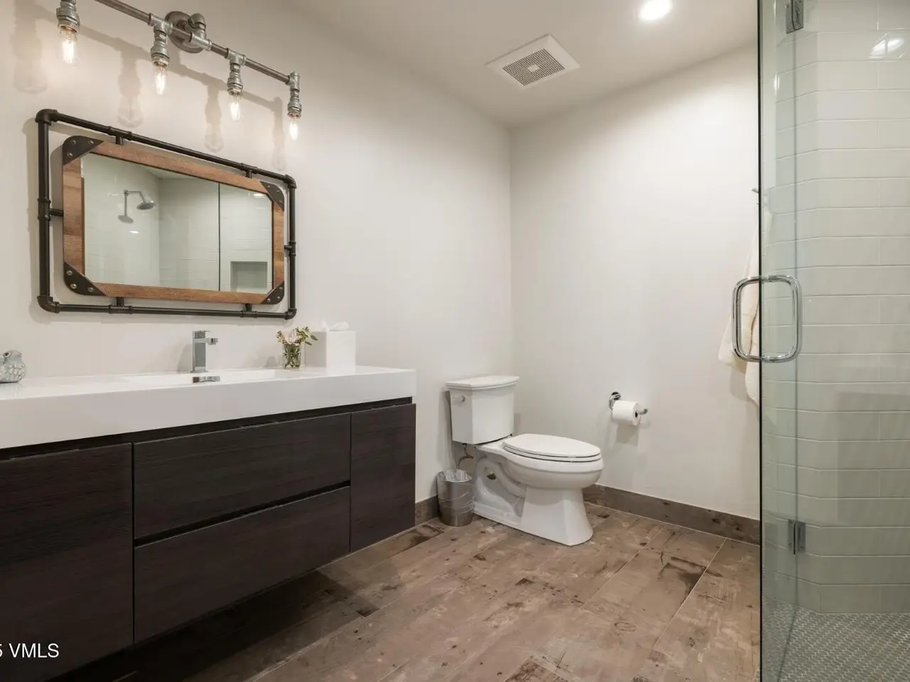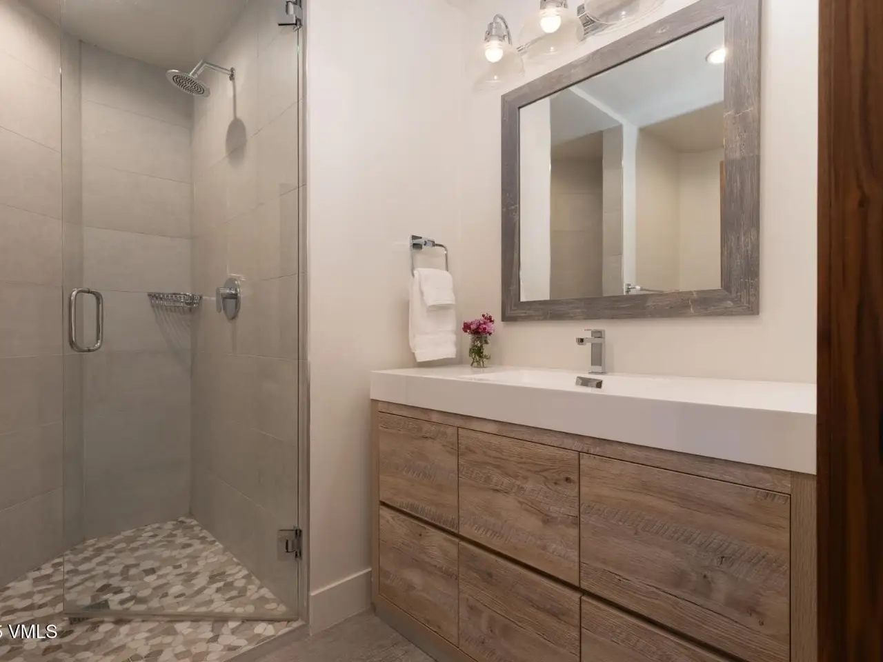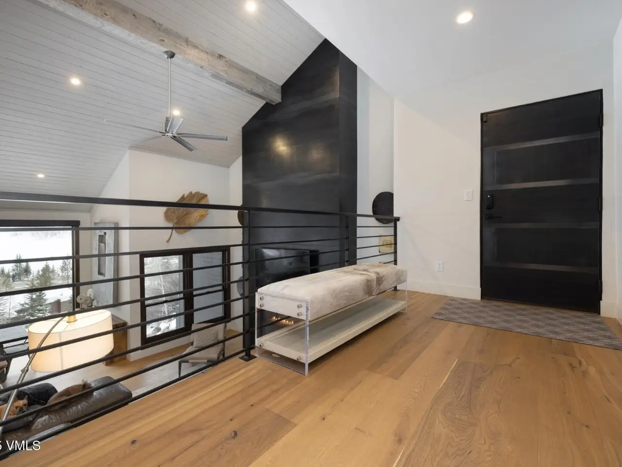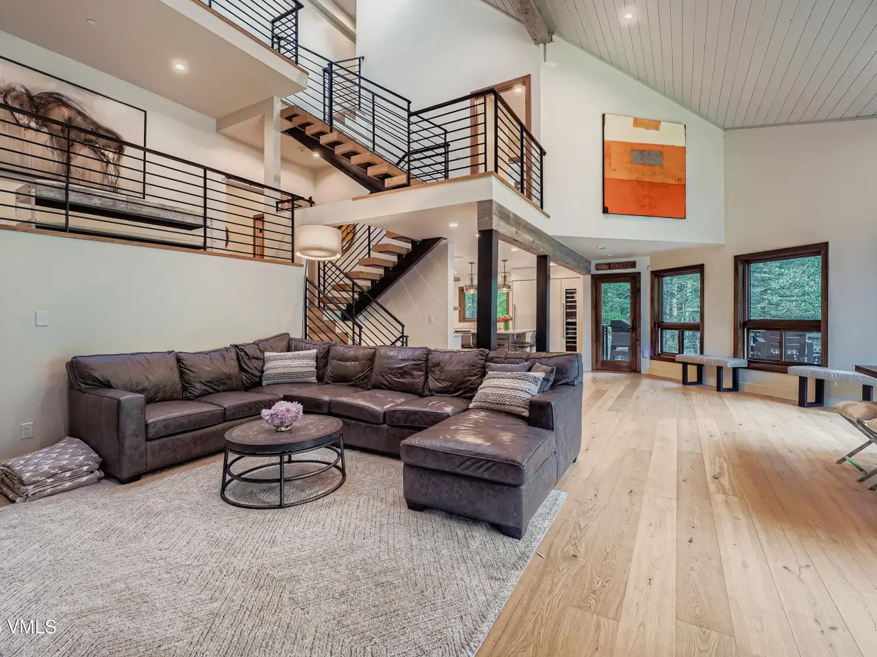 Step into this beautifully remodeled home that offers an open concept main floor, where living and dining areas seamlessly blend under soaring vaulted ceilings with the kitchen. Expansive windows flood the home with natural light, creating a cozy and inviting atmosphere. The living room is perfect for entertaining or relaxing, complete with white oak wide-plank floors and a floor-to-ceiling fireplace. From here, take in the breathtaking views of the waterfall and ice climbing area - the perfect backdrop for your elevated mountain lifestyle. The kitchen is a chef's dream with its functional layout, high-end appliances and large island. Wood beams and iron railings add character and coziness to its design. The voluminous family room was designed where family and friends can gather to watch the big game or movies and is spacious enough for workout equipment. Upstairs, enjoy a lofted office space with skylights, offering a bright and inspiring work environment. The primary suite is a true retreat, featuring his and hers closets with custom built-ins for storage and organization. The primary bath has abundant natural light and features a water closet, two separate vanities, luxurious soaker tub, and over-sized shower with dual rain heads. Three spacious bedrooms are located downstairs, each with its own en suite bath, offering ultimate comfort and privacy for family members or guests. For added convenience, the home also features two separate laundry areas, and mudroom with abundant storage, ideal for all of your gear. The two-car attached garage with epoxy flooring provides space for vehicles and additional storage. The home's unique design ensures fabulous privacy- the garage is the only common area between the duplex.