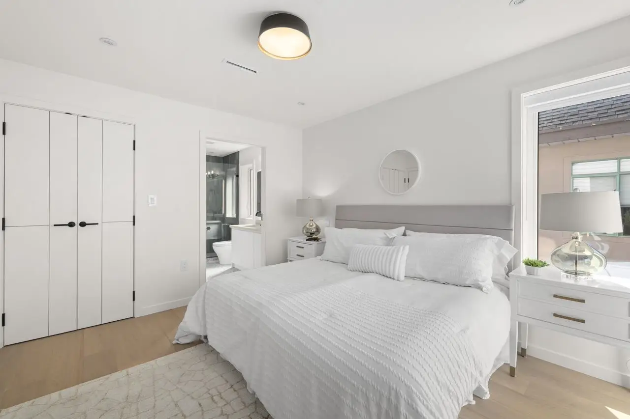 Discover refined living in this stunning 1/2 duplex by Mahnger Homes in the heart of Douglas Park! Elegant design meets luxury with warm tones, oversized windows, and brushed White Oak floors throughout. The large gourmet kitchen boasts sleek flat-panel cabinetry, quartz counters/backsplash, and premium matte white appliances. Upstairs, find the spacious primary bedroom with walk-in closet and balcony. The versatile third level offers a bedroom, guest room, or expansive family room opening to a covered deck—perfect for entertaining. Stay comfortable year-round with a heat pump for heating and cooling. Covered parking and 3 storage lockers add convenience. Steps from parks, cafes, top schools, and transit—this is urban living at its finest! Open House Nov 1st/2nd Sat/Sun 2-4pm